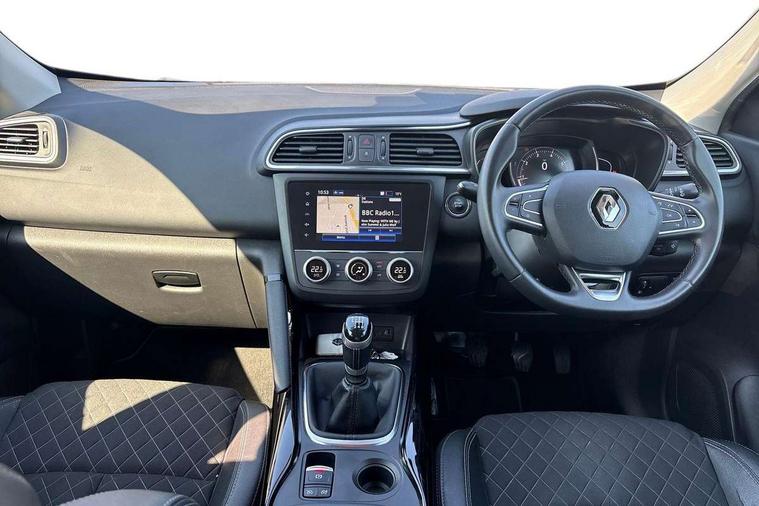 Cruise control + speed limiter, Digital speedometer with 7 TFT screen, Door/boot open warning light, Eco mode, Exterior temperature indicator, Front and rear parking sensors with rear parking camera, Gear change indicator, Lane departure warning system, Low fuel level warning light, Multi function trip computer, Oil level gauge, PAS, R-Link 2 Multimedia system + 7" touchscreen, TomTom + West European Map, DAB/FM/AM radio, bluetooth + hands free, USB/AUX, voice control, Rev counter, Smartphone integration, Gasoline particulate filter, 4x35W speakers with 3D sound, Fingertip controls for audio system, Two rear USB sockets, Automatic headlights, Automatic high/low beam, Automatic windscreen wipers with variable speed adjustment, Body colour door handles, Body coloured bumpers, Body coloured door mirrors, Bodyside mouldings with chrome inserts, Chrome roof rails, Chrome window surround, Day/night rear view mirror, Electric adjustable/heated/folding door mirrors, Extra tinted glass in rear windows and tailgate, Front and rear electric windows, Front and rear towing rings, Front fog lamps with cornering function, Halogen headlights, Heated rear windscreen, Integrated C shape indicators with side repeaters, Integrated fuel filler cap, LED daytime running lights, LED rear fog light, Rear wiper, Shark fin antenna, 12V socket in front, 3 height adjustable rear headrests, 3 seat rear bench, 60/40 split folding rear seat, Accessory power point, Adjustable dashboard illumination, Air recirculation system, Centre rear armrest with cup holder, Driver sunblind with illuminated mirror and ticket holder, Driver's seat with lumbar adjustment, Driver/passenger reading lights, Dual zone automatic climate control, Easy life quick folding rear seat, Faux leather wrapped steering wheel, Front courtesy lights, Front footwell illumination, Front/rear floor mats, Height adjustable driver's seat, Height adjustable front headrests, Height adjustable passenger seat, Height/reach adjust steering wheel, Illuminated boot, Illuminated centre console, ISOFIX child seat anchorage points attached on outer rear seats, Multi positional boot floor, Pollen filter, Rear courtesy lights, Rear passenger air vents, Sliding front centre armrest, Storage glovebox, Synthetic leather/cloth upholstery, ABS/EBD, Driver/passenger 2 stage auto adaptive airbags, Electronic parking brake, Emergency brake assist, ESP with ASR and UCL (understeer control logical), Front and rear curtain airbags, Front lateral airbags, Front seat belts warning, Height adjustable front seatbelts with double pretensioners, Hill start assist, Manual passenger airbag deactivation function, Rear seatbelt warning indicator, Side impact protection, Three point rear center seatbelt, Traction control, Tyre pressure monitor, Anti-drill door locks/ignition barrel, Deadlocks, Insurance approved Cat 1 alarm system, Insurance Approved Immobiliser, Key card hands free with walk away lock function, RAID (Renault Anti-Intruder Device) with automatic door locking, Remote central locking, 19'' Zeus diamond cut alloy wheels,