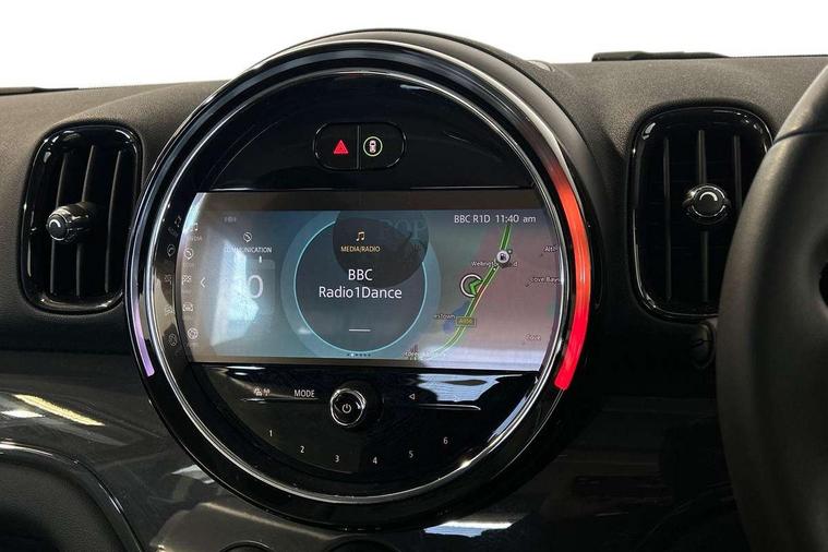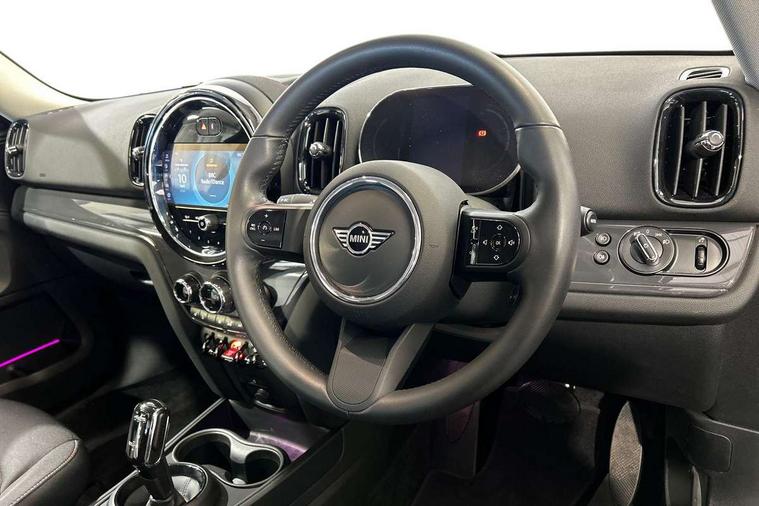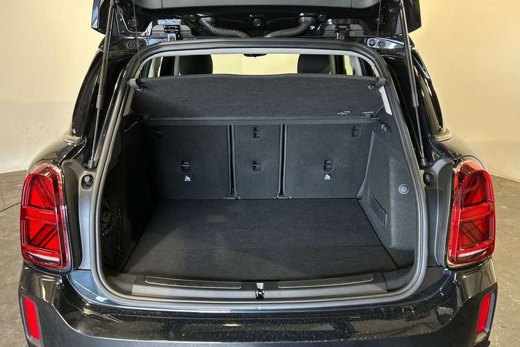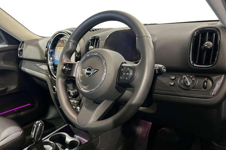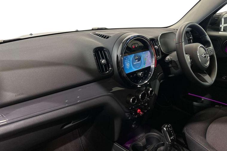 Active Guard incl speed limiting and lane departure functions with auto steering, and front collision warning with brake intervention, Automatic start/stop function with brake energy recuperation, Compatible mobile phone bluetooth with audio streaming, Cruise control with brake assist, Electro-mechanical speed dependant steering assistance, Instrument cluster, Mini E-call, On board computer, Rear parking distance control, 51 Litre fuel tank, Double Vanos system, Fully variable valve control, High precision injection, Performance Control, Steptronic transmission with double clutch, FM tuner and DAB digital radio, 3rd brake light, Body colour fuel filler cap, Day time driving lights, Door sill strips, Dynamic brake lights, Electric windows, Heated rear window, Heated windscreen washer jets, LED fog lights, LED Headlights, Left exhaust tailpipe with chrome finisher, Model logo, Model logo on Tailgate, Radiator grille, Rain sensor with auto headlights, Rear fog lights, Rear side wing doors, Rear window wiper, Side scuttle panel with integrated indicator, Split rear doors, Sun/heat protection glass, White indicator lenses, 12V socket in centre console, 3 seat bench in 2nd row, 3 spoke sport leather steering wheel + limiter function and audio controls, 360L luggage compartment capacity, 4 lashing eyes in luggage compartment, 40:20:40 split folding rear seats, Chrome interior highlights, Colour line - Carbon black, Cupholders, English handbook, Floor mats, Front headrests, Glove compartment, Headliner with grab handles and clothes hooks, Height and length steering column adjustment, Interior lighting with 12 basic colours selectable via toggle switch in roof, Isofix rear child seat preparation, Leather gearshift lever and handbrake gaiters, LED reading lights, vanity mirror lights, front foot well light and spotlight on front seats, Manual air conditioning, Mechanical seat adjustment, driver seat height adjust, forward/back and front seats backrest, Multifunction steering wheel, Passenger seat height adjuster, Rear headrests, Single front passenger seat, Storage compartments in doors, Sunvisors with vanity mirrors, Excitement pack - Countryman, Navigation pack - Countryman, 2 tone horn, 3 point seatbelts on all seats, 6 Airbags - front, side, head and seat belt tensioners, Anti-lock braking system (ABS), DSC - Dynamic Stability Control, Electronic handbrake, Front and rear disc brakes, Hill start assist, Manual rear child locks, Tyre pressure monitoring system, Alarm system with tilt sensor, monitoring doors, bonnet interior and tailgate, Auto drive away locking, Deadlocking function, Electronic vehicle immobiliser, Locking wheel bolts, Start/stop toggle with keyless go, Tool kit,