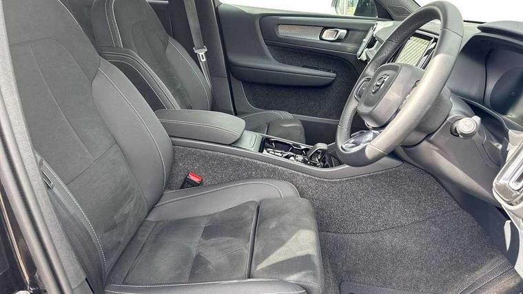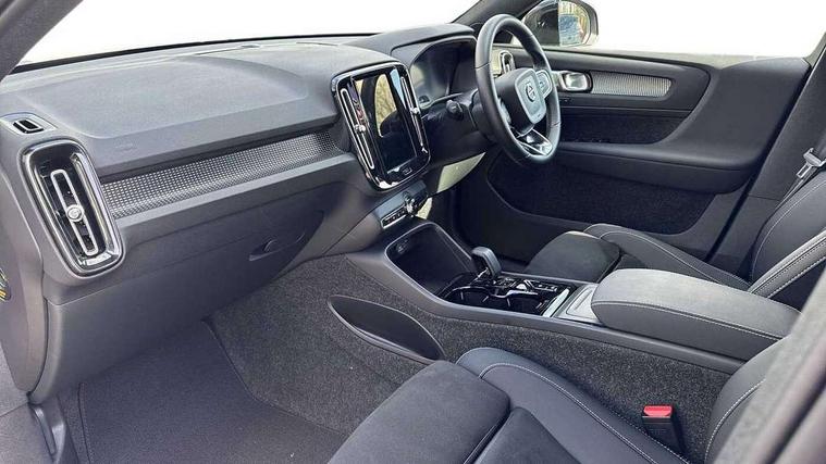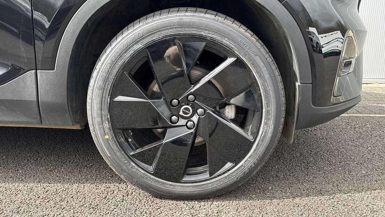 12.3" Progressive Driver Display, 9" centre console portrait touch screen, Adjustable steering wheel force, Android auto (Wired), Apple carplay (wired), Bluetooth handsfree system, Driver alert control, Driver assistance (pilot assist and adaptive cruise control), Driver awareness - Blind spot information system with steer assist, cross traffic alert with autobrake and rear collision warning and mitigation, E-call, Front park assist, Google automotive services - Enabled entertainment apps, navigation with google maps, voice recognition with google assistant, Hands free power tailgate, Intelligent speed assistance, Lane keeping aid, Oncoming Lane Mitigation, Rear park assist, Speed sensitive steering, Volvo cars services with app - Driving journal, emergency and breakdown call, engine remote start, remote door locking/unlocking and vehicle dashboard, Wireless/Inductive Mobile Phone Charging, Automatic transmission with start/stop and manual change functions, Dynamic chassis, DAB Digital radio, Steering wheel mounted remote controls, Adaptive brake lights with high level LED brake lights, Auto dimming feature for exterior door mirrors, Auto dimming interior mirror, Automatic headlamp levelling, Automatic LED Headlights + Active high beam incorporating daytime running lights, Colour coordinated auto folding and heated power door mirrors, Dark tinted windows - rear side windows and rear screen, Front aluminium tread plates, Front and rear electric windows, High gloss black front and rear skid plate, High gloss black front bumper deco, High gloss black front grille strikethrough and ironmark, High gloss black rear model, engine and volvo logo badges, High gloss black window trim, Home safe and approach lighting, Integrated roof rails in high gloss black, LED front fog lights, Puddle lights, Rain sensor with automatic windscreen wiper activation, Rear side wing doors, Rear wiper, Roof antenna, Roof spoiler, Visible VIN plate, 12V socket in front tunnel console and luggage compartment, 2-Zone electronic climate control with CleanZone air quality system and pollen filter, 3 seat bench in 2nd row, 3 Spoke tailored steering wheel with chrome trim, 60/40 versatile split folding rear seat, Centre console cupholders and storage, Charcoal headlining, Connect textile/microtech upholstery, Flexible load floor and grocery bag holder, Floor mats, Front cabin courtesy lights, Front door pocket, front cupholder, ambient front door, rear reading, rear courtesy, instrument panel and tailgate lighting, Front footwell illumination, Front headrests, Front reading lights, Front seat cushion extensions, Front side step illumination (under door), Glovebox bag hook, Heated front seats, Height adjustable passenger seat, Height/reach adjustable steering column, High gloss centre tunnel deco, Illuminated glovebox, Illuminated luggage compartment, Illuminated vanity mirrors + ticket holder, Integrated waste bin, Isofix attachments on outer rear seats, Load cover, Load protection net, Multi directional lumbar support for driver and passenger seat, Power driver seat with memory + exterior mirrors memory, Rear armrest with cupholders, Rear headrests, Single front passenger seat, Underfloor cargo storage, Climate pack without heated front seats - XC40, 3x3 point rear seatbelts, City safety with steering support with Pedestrian + cyclist + front collision warning with full auto brake and rear auto brake, Driver and passenger airbags, Drivers knee airbag, Electronic parking brake with auto hold, First aid kit, Front and outer rear seatbelt reminder and pretensioners, Front seats SIPS airbags, Hill descent control, Hill start assist, Inflatable curtain, Passenger airbag cut-off device, Power child locks on rear doors, Road sign information display, Run off Road Protection, SIPS (Side Impact Protection System), Slippery road and hazard light alert, Stability and Traction Control with Spin control, Engine Drag Control and Corner Traction Control, Tyre pressure monitoring system, Vehicle deceleration control with Anti-lock Brake System, Electronic Brake Distribution and Emergency Brake Assist, Warning triangle, WHIPS whiplash protection system - front, 2 x Key integrated remote control central locking including with deadlocking system and auto open/close windows, Anti-theft alarm including immobiliser/volume sensor + level sensor, Keyless drive includes keyless entry and keyless start, Locking wheel nuts, 20" 5 spoke high gloss black alloy wheels,