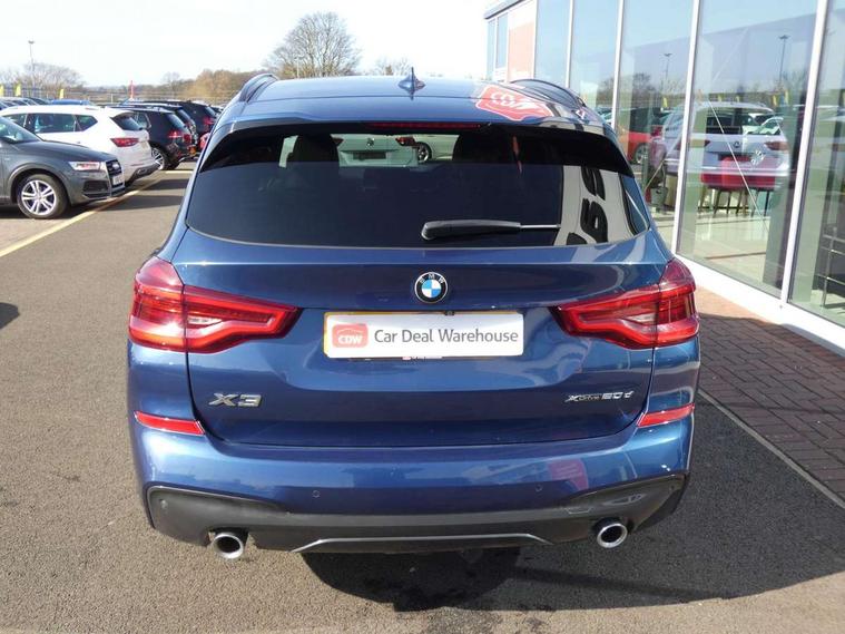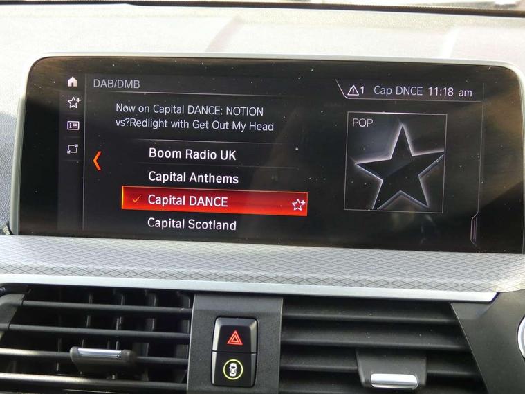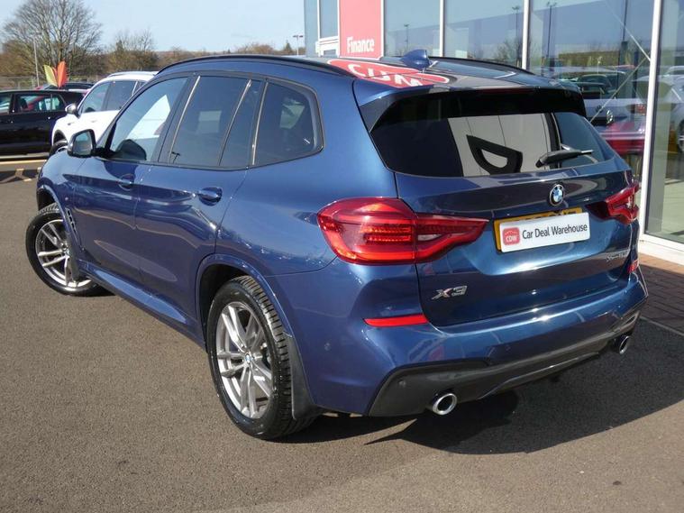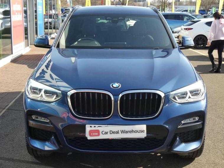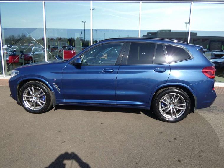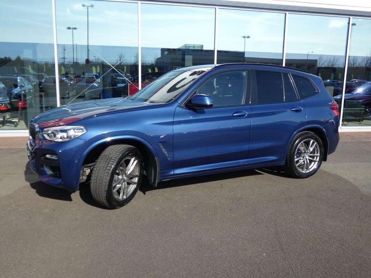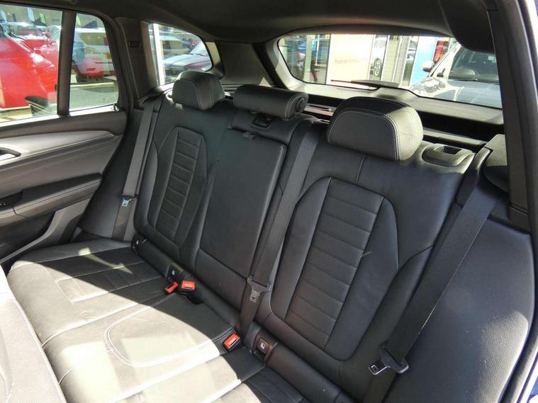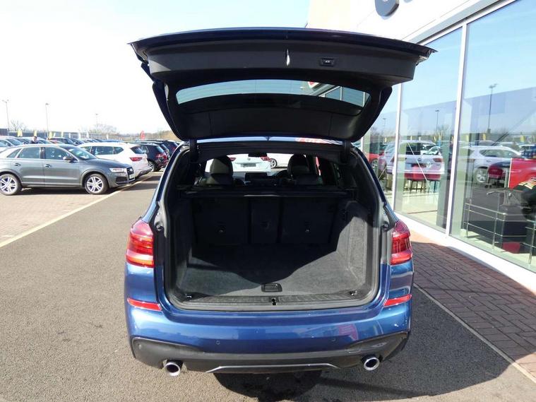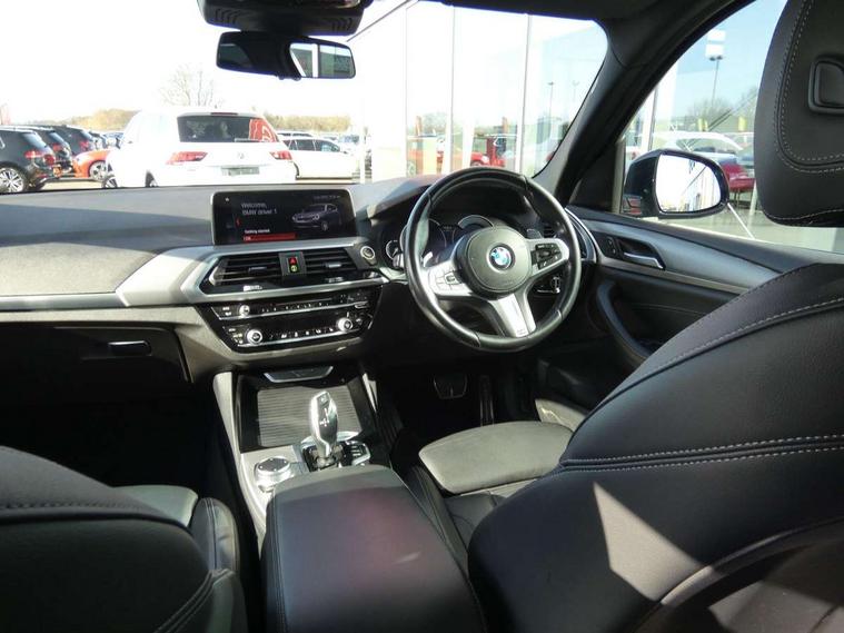 Active Guard incl speed limiting and lane departure functions with auto steering, and front collision warning with brake intervention, Attentiveness assist, Automatic tailgate operation, BMW Live Cockpit Professional sat nav system including 10.25" high resolution display and Intelligent Voice Assistant, BMW Online services, BMW Teleservices, Brake pad wear indicator in front and rear, Check Control warning system for monitoring of lights and door/luggage compartment open warning, Control display - 6.5" colour display screen, Electric Power Steering (EPS) with Servotronic, Front/rear Parking distance control, iDrive Controller with 8 favourite buttons, Lights on warning by audio warning signal when ignition is switched off, Navigation system - BMW Professional multimedia with Hard disc drive (HDD) and 10.25" touch display, Oil sensor for level and grade, warning by check control system, On board computer - average speed+fuel consumption, service interval, clock/date, odometer/trip meter, outside temperature display and ice warning, Optimum shift indicator, Personal Profile - automatic lock when driving away selectable, Real time traffic information, Semi digital instrument cluster, Stop/start system, Automatic transmission with gearshift paddles, Diesel particulate filter, Incorrect fuelling protection, Larger capacity fuel tank, Multi-link rear suspension, Performance Control, Auxiliary socket for external MP3 player, BMW professional radio/CD/MP3, DAB Digital radio, Acoustic glazing, Black finish on B pillars, Body colour door handles, Body colour electric adjust heated aspherical door mirrors, Body colour roof mouldings, Body coloured bumpers, Chrome kidney grille with high gloss black vertical slats, Direction indicator, side repeaters, integrated in exterior mirrors, Dual chrome exhaust, Dynamic brake lights, Exterior mirrors - electrically folding with anti-dazzle, Fingertip control / anti-trap function on electric window, Follow me home headlights, Front and rear bumper system with replaceable deformation elements, Front and rear electric windows, Green tinted heat insulating glass, Heated windscreen washer jets, Height adjustable headlamps, High gloss black door sill finishers, High gloss black shadow line roof rails, High gloss shadowline exterior trim in decorative moulding side frame/recess cover/guide rail/B, C pillars/mirror frame and triangle with mirror base, High level 3rd brake light incorporating LED Technology, Interior rear view electrochromatic mirror with automatic anti dazzle function, LED front fog lights, LED tail lights, Lightweight engineering, M aerodynamic bodystyling, Model designation, Rain sensor including auto headlights activation, Rear wiper, Shark fin antenna, Visible VIN plate, Welcome lighting, Windscreen wipers with adjustable interval, 12V socket in centre console and luggage area, 3 rear headrests, 3 zone automatic air conditioning, 4 lashing points to secure luggage, Ambient lighting, Anthracite headlining, Anthracite Velour floor mats, Driver/passenger sunvisors with ticket holders + illuminated vanity mirrors, Foldable boot floor with storage compartment, Four grab handles integrated in roof lining, Front and rear bottle holders integrated into door trim storage compartments, Front and rear side armrests integrated into door trim, Front centre armrest with storage compartment, Front footwell lights, Front sports seats, Front/rear courtesy lights with soft on/off dimming, Front/rear reading lights, Height adjustable front/rear head restraints, Isofix rear child seat preparation, Leather gear knob, Luggage area underfloor compartment, Luggage compartment lighting, M Sport multifunction leather steering wheel, Parcel shelf removeable and storable under boot floor, Reach and rake adjustable steering column, Rear centre armrest with 2 cupholders, Rear seat centre armrest with two cupholders, Removable / retractable luggage cover, Slope adjustable rear seats, Storage compartment in rear centre console and front/rear door trims, Through loading system with 40/20/40 split folding rear seat, Toolkit located in luggage compartment, Two front cupholders with removable oddments tray/lid, Vernasca leather upholstery, Connected pack professional - X3, ABS/EBD, ADB - Automatic Differential Brake, Automatic Stability Control (ASC), Battery safety cut-off, BMW emergency call, Brake assist, Brake assist function, Brake drying, Brake energy regeneration, Braking pre-tensioning, Child locks on rear doors, Cornering brake control (CBC), Crash Sensor - activation of central locking release, hazard warning light and interior lighting, Deactivation of fuel pump in the event of a crash, Driver and front passenger front and side airbags with passenger deactivation and ITS front and rear head airbags, DSC+, Dynamic brake control, Dynamic Traction Control - DTC, Electromechanical parking brake, Front seat belts warning, Hill descent control, Hill start assist, Seatbelt security check for front seats, Side impact protection, Three point seatbelts to all seats with front and outer rear pyrotechnic belt tensioners and seat belt force limiters, Two tone horn, Tyre pressure monitoring system, Ventilated front and rear disc brakes, Warning triangle and first aid kit, Central locking switch for all doors, fuel filler cap and luggage compartment, Electronic engine immobiliser, Locking wheel nuts, Remote control including two integrated key - one button for open/close all lockable content, windows and separate button for open luggage compartment, Remote control Thatcham category 1 alarm, Start/stop button with Comfort Go keyless engine start and auto Start/stop deactivation button, Low rolling resistance tyres,