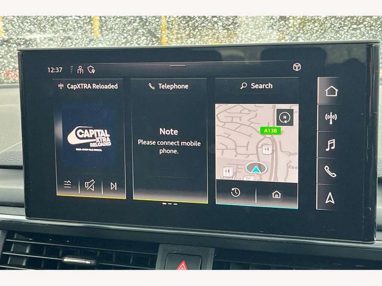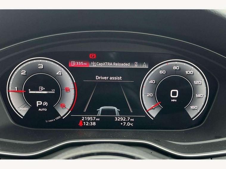 Audi connect safety and service (e-call), Audi connect with Amazon Alexa Integration, Audi drive select, Audi parking system plus with front and rear sensors, Audi smartphone interface, Audi virtual cockpit, Automatic start-stop system with coasting functionality and efficiency programme, Bluetooth interface, Cruise control system with speed limiter, Electromechanical power steering, Email, calendar and text messages displayed via MMI, MMI Navigation plus with MMI touch includes 10.1" high resolution colour MMI display, 3D map, Power operated tailgate, Rear view camera, Voice control system, Comfort dynamic suspension, 2 USB charging ports, 8 passive loudspeakers, DAB digital radio reception, Aluminium roof rails, Auto dimming rear view mirror, Body coloured door mirrors, Electrically folding auto dimming/adjustable/heated door mirrors with LED side indicators and kerb view function for passenger side, LED headlights and rear lights with LED daytime running lights, LED third brake light, New design rear diffuser, Rain and light sensors, Rear side wing doors, Rear wiper, Variable intermittent front wash/wipe, Windscreen with acoustic glazing, 3 spoke high multi-function leather sport steering wheel with paddle shift and height and reach adjustable, 4 way electric lumbar support for driver and front passenger, 40/20/40 split folding 3 rear seat bench in 3 parts with rear centre armrest, Deluxe 3 zone electronic climate control, Door sill trims with aluminium inlay, Electric load area cover, Front and rear head restraints, Front centre armrest, Heated front seats, Interior lighting, ISOFIX child seat mounting and top tether, Manual seat adjustment, Single front passenger seat, High gloss package - A4, 3 rear seatbelts, 6 airbags - Driver, front passenger, curtain and side windows, Electronic Stabilisation Control (ESC) including ABS, ASR and EDL, Hill hold assist, Multi collision brake assist, Pop-up bonnet for pedestrian protection, Pre sense city, Rear door child safety locks, Seatbelt monitoring, Warning triangle and first aid kit, Anti theft alarm, Anti theft wheel bolts, Central locking, Keyless Go, Tool kit, Tyre repair kit,