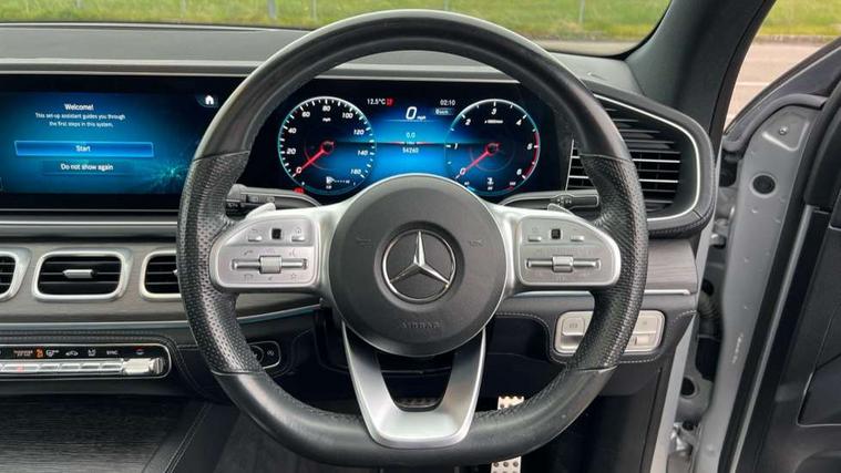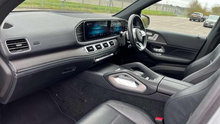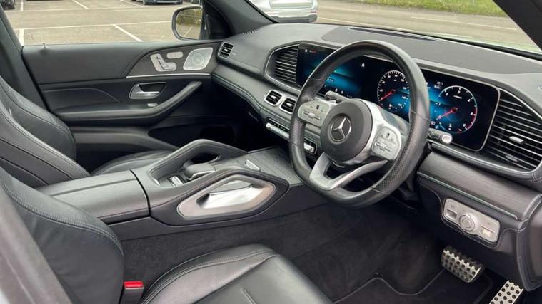 Dashboard and door, anthracite open pore oak wood trim, Trim - Centre console, anthracite open pore oak wood trim, Air balance package - GLE, Airmatic package - GLE, Anti theft Protection package - GLE, Energizing comfort package - GLE, Keyless go comfort package - GLE, Memory package - GLE, Mirror package - GLE, Parking package with 360 camera - GLE, Summer tyres with noise reducing absorber, TIREFIT with tyre inflation compressor, Alarm system/interior protection/immobiliser, Central locking with interior switch, automatic locking and crash sensor with emergency opening function, Keyless entry go starting function, Additional USB connection, Burmester surround sound system, DAB Digital radio, Dual bluetooth interface, 2 USB ports (type C), Active bonnet, Adaptive brake system with HOLD function and brake drying in the wet, Airbags - driver and front passenger, with extended adaptivity for front passenger airbag, Airbags - sidebag for driver and front passenger with combined thorax/pelvis bag, Airbags - windowbags, Anti-lock braking system (ABS), Childproof locks manually operated for rear doors and electrically operated for rear power windows, Drivers knee airbag, Electronic parking brake, Electronic Stability Programme (ESP), Matt surround electronic key, Perforated front brake discs and brake calipers with Mercedes-Benz lettering, Pre-Safe anticipatory safety system, Three point rear seat belts, Tyre pressure monitoring system, Warning triangle and first aid kit, Adaptive brake lights, Adaptive high beam assist, Aerial for GPS, Aluminium look, illuminated running boards with rubber studs, AMG bodystyling front and rear aprons and side skirts in polished aluminium, Body colour door mirrors, Body coloured bumpers, Electric windows with one touch opening/closing and obstruction sensors, Exterior mirrors heated and electronically adjustable, Front green tinted glass, LED high performance headlamps, LED rear lights, Multi beam LED headlights, Panoramic sunroof, Privacy glass - heat insulating dark tinted glass, Radiator grille with integrated star and single louvre in matt iridium silver with chrome trim, Radio aerial integrated into rear window, Rain sensing windscreen wipers, Rear wiper, Roof rail system, Top surround of side windows in polished aluminium, Visible twin pipe exhaust system integrated into bumper, Waistline in polished aluminium, 3 spoke AMG multifunction steering wheel with touch control buttons, trimmed in black nappa leather with flattened bottom section, 3rd row of seats for 2 people, 4 way lumbar support, 40:20:40 split folding rear seats, AMG brushed stainless steel sports pedals with rubber studs, AMG floor mats with AMG lettering, Artico man-made leather upper dashboard with contrast topstitching, Automatic child seat recognition sensor, Black roof liner, Central stowage compartment with 12 V socket in centre console, Chrome door pins, Courtesy lights in rear grab handles with reading light functionality, Electronically adjustable three second row seats, Four way fully front electric seat adjustment, Front centre armrest with stowage compartment and illuminated grab handles, Front/rear adjustable head restraints, Glasses compartment in overhead control panel, Glove compartment - lockable, air conditioned and illuminated, Heated front seats, Interior lighting - 64 colour Ambient lighting, ISOFIX child seat attachment points two outer rear seats, Nappa leather upholstery, Seat occupancy sensor for front passenger seat, Steering column manually adjustable for height and reach, Steering wheel multifunction with gearshift paddles, Sunvisors with illuminated vanity mirrors, Thermotronic automatic 4 zone climate control, Touchpad, 12.3" digital instrument cluster display, Attention assist, Brake wear warning display, Direct steer speed sensitive steering, DYNAMIC SELECT with a choice of driving modes (ECO, Comfort, Sport, Sport+ and Individual), Easy-pack tailgate - Powered opening/closing automatically, ECO start/stop function, Geofencing, Hey Mercedes Voice activation, High resolution 12.3" multimedia colour display, MBUX multimedia system with DAB digital radio and touchpad including satellite navigation, Mercedes me connect including emergency call system, accident recovery, breakdown management and maintenance, Mercedes-Benz emergency call, Outside temperature display, Remote boot release, Service indicator (ASSYST), Status display for rear seat belts in instrument cluster, Traffic Sign Assist, Traffic sign recognition including wrong way warning function and display of posted speed limits in the instrument cluster, Trip computer in multifunction display showing current fuel consumption, Widescreen cockpit, Wireless charging system for mobile devices, 85 litre fuel tank, Diesel particulate filter (DPF), Incorrect fuelling protection,