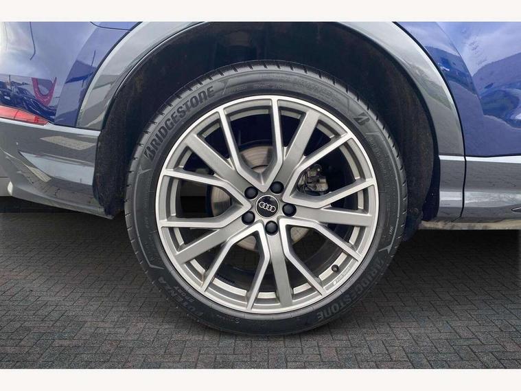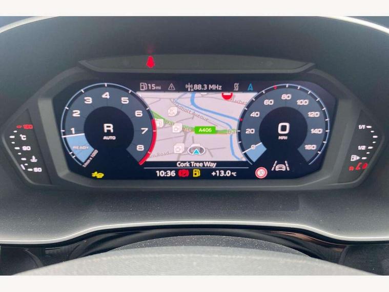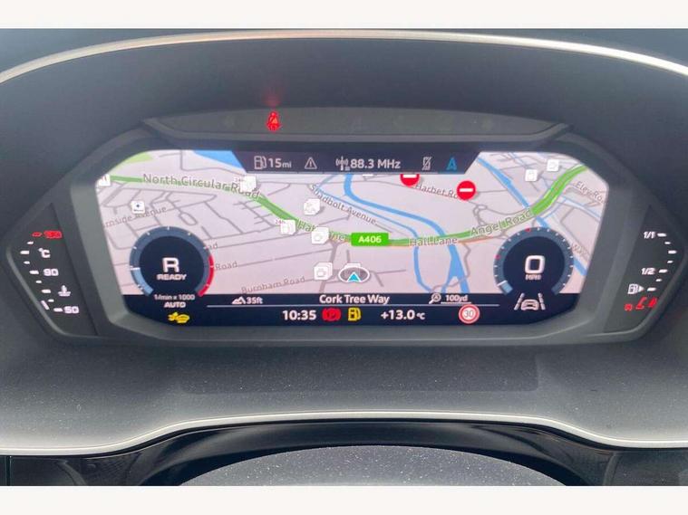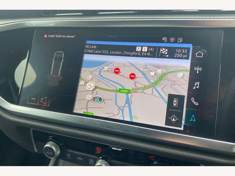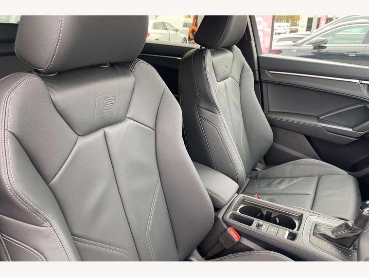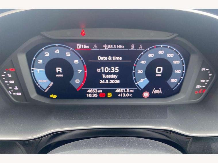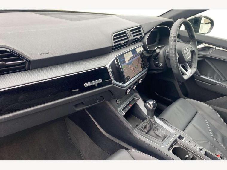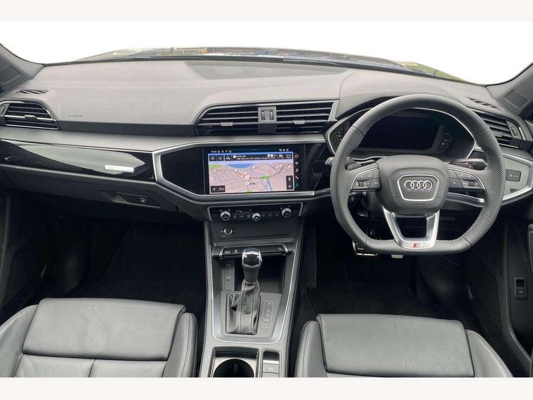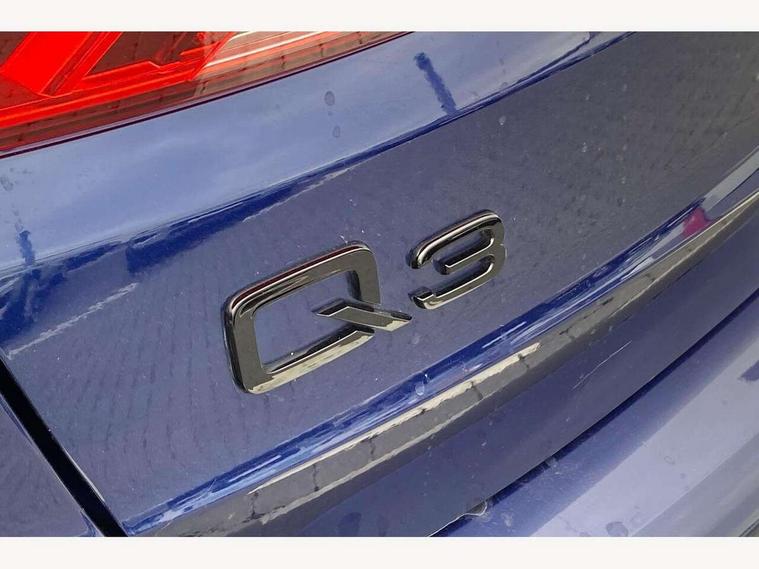 Amazon alexa Integration, Audi connect safety and service, Audi drive select, Audi lane departure warning, Audi Virtual Cockpit - 10.25" display, Bluetooth interface, Camera based traffic sign recognition, Distraction and Fatigue warning, Legal emergency call, MMI Navigation Plus with high resolution 10.1 inch touchscreen colour display, Power operated tailgate, Progressive steering, Service interval indicator, Smartphone interface includes wireless Apple carplay/Android Auto, Start stop system with recuperation, Voice control system with natural language interaction, Sports suspension, 2 USB-C ports with charge and data functions, 6 passive loudspeakers, DAB digital radio module, Acoustic windscreen, Anthracite black radiator grille, Audi Beam uses LEDs to project the Audi logo onto the ground as you exit your Q3, Auto dimming door mirrors, Auto dimming frameless rear view mirror, Black roof rails, Electrically folding, adjustable and heated door mirrors with integrated LED side indicators and kerb view function for passenger side, Front and rear electric windows, Front fog lights, Grille vertical bars in aluminium silver/Matt, High gloss black finish B and C pillars, LED Dynamic rear indicators, LED headlights with LED daytime running lights, LED rear lights, LED third brake light, Privacy glass dark tinted rear and rear-side windows (from B-pillar backwards), Rain and light sensors, Rear diffuser grille in grained matt black, Rear diffuser strip in matt anthracite black, Rear side wing doors, Rear wiper, S line bumpers in contrasting Manhattan grey, Variable front intermittent wipers, 12V socket in rear centre console, 3 seat bench in 2nd row, 40:20:40 folding with manual adjustment for 60:40 forwards/backwards position and backrest angle, Adjustable rear seat bench/backrest with centre armrest and cupholder, Black carpet mats, Black cloth headlining, Dual zone electronic climate control, Electric lumbar support, Front and rear black floor mats with contrast stitching in rock grey, Front and rear headrests, Front centre armrest, Height and reach adjustable steering wheel, Illuminated door sill trims with S logo, ISOFIX child seat mounting for front passenger with airbag deactivation and outer rear seat including top tether attachment point for outer rear seats, Luggage compartment sill protection in stainless steel, Manual front seats with height adjustment, Perforated leather gearknob, Single front passenger seat, Stainless steel pedals, Twin leather upholstery with front sport seats + S embossing, Black styling pack - Q3, Non smoking pack - Q3, 3x3 point rear seatbelts, 6 airbags - Driver, front passenger, curtain and side windows, Audi pre-sense front with pedestrain and cyclist recognition, Electrically operated child locks on rear doors, Electromechanical parking brake, Electronic stabilisation control including ABS, ASR and EDL, Front seatbelt reminder, Hill descent control, Hill hold assist, Pre sense basic, Seatbelt monitoring, Tyre pressure warning, Warning triangle and first aid kit, Anti theft wheel bolts, Immobiliser, Remote central locking, Thatcham approved category 1 anti theft alarm, Aluminium look interior elements, Detail dashboard around MMI touch colour display in glass look, black with surround in aluminium look, Leatherette door armrest, Piano black inlay,