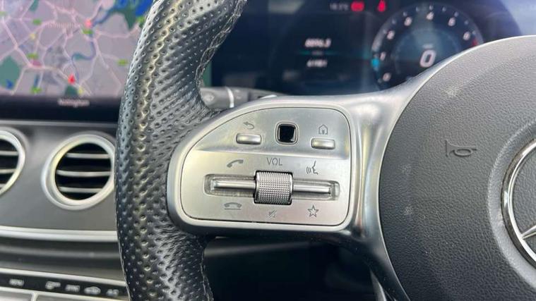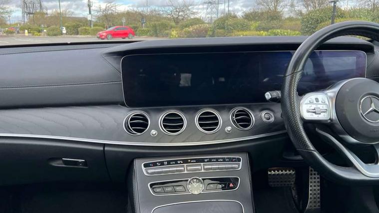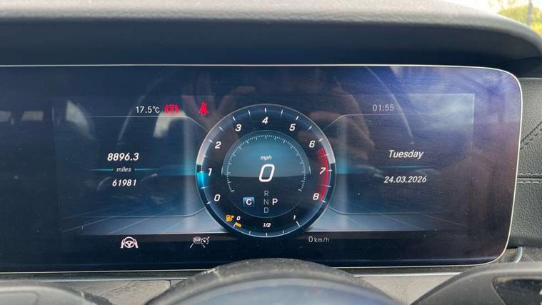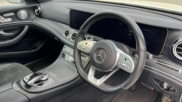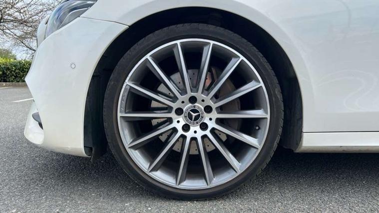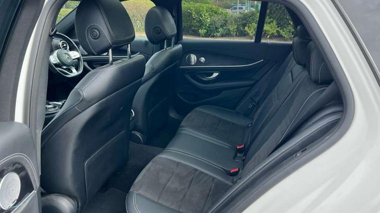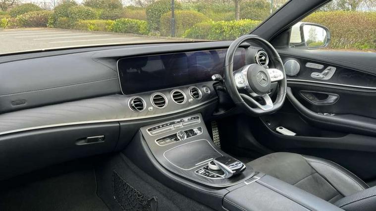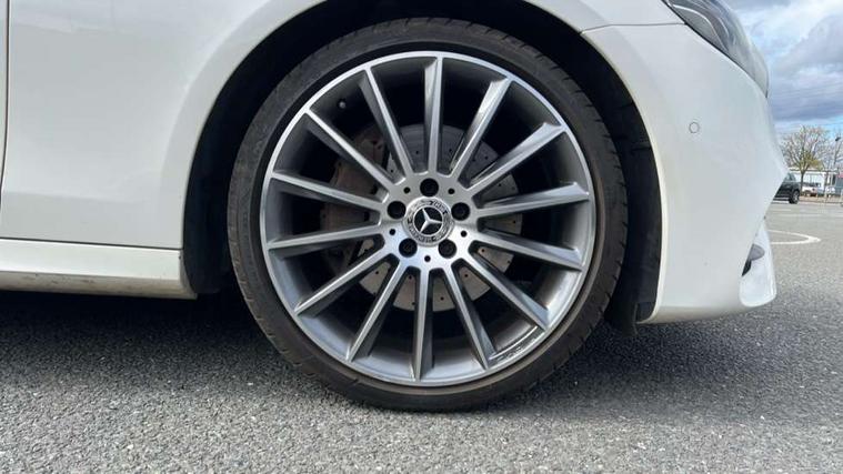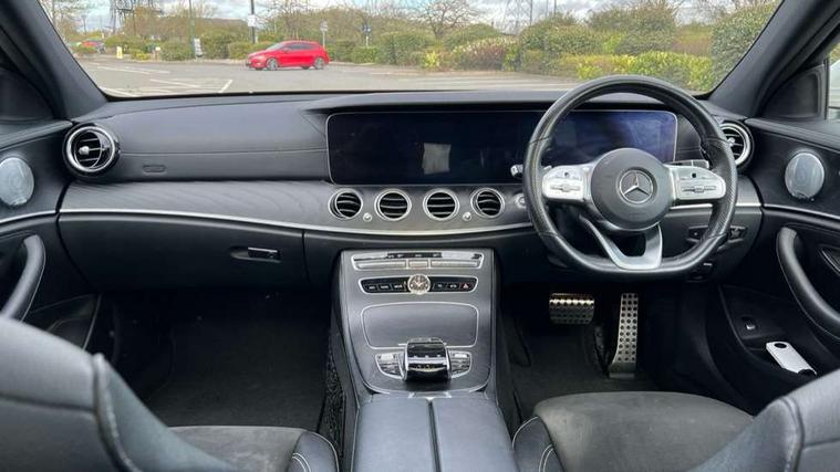 Active parking assist and reversing camera, Analogue clock, Attention assist, Blind spot assist, Boot release from drivers seat, Brake wear warning light, COMAND online system with Media Interface and HDD navigation with 12.3" colour display and cockpit display, DYNAMIC SELECT with a choice of driving modes (ECO, Comfort, Sport, Sport+ and Individual), Easy-pack tailgate - Powered opening/closing automatically, Mercedes connect me, Multi function trip computer, Outside temperature display, Park assist pilot with front and rear park assist, Remote boot release, Service indicator (ASSYST), Speed sensitive power steering, Stop/start system, Touchpad with control wheel, Wireless charging, 66 litre fuel tank, 2 USB ports in centre console, 2 USB ports in the rear, Audio 20 with USB, control wheel and Media Interface with Bluetooth interface and hands-free function, Burmester surround sound system with 13 speakers, DAB Digital radio, Steering wheel mounted audio controls, Adaptive brake lights, Aerial integrated in rear window, Body colour bumpers, Body colour door handles, Chrome roof rails, Electric panoramic glass sunroof, Electric windows with one touch opening/closing and obstruction sensors, Electrically adjustable and heated door mirrors, LED High Performance headlamps including integral LED daytime running lamps, LED rear lights, MULTIBEAM Intelligent Light System with Adaptive Highbeam Assist, Polished aluminium upper window surround, Privacy glass (rear side windows and rear screen), Radiator grille with integral star and 2 louvres in matt iridium silver with chrome trim, Rain sensor windscreen wipers, Rear wiper, Visible twin exhaust tailpipe in bumper, 3 spoke flat bottom AMG performance steering wheel with Touch Control buttons, trimmed in black nappa leather, 40:20:40 split folding rear bench seat, Ambient lighting, AMG floormats, Artico man-made leather upper dash trim, Auto Mercedes-Benz child seat recognition sensor, Black roof lining, Folding shopping box, Front and rear door pockets, Front centre armrest with storage compartment, Front door sills with illuminated Mercedes lettering, Glasses compartment in overhead control panel, Head restraints for driver and front passenger (four-way adjustability) and in rear (two-way), Heated front seats, Interior rear light/integral reading lights, Isofix rear child seat fastenings, Lockable/illuminated air conditioned glovebox, Silver door pins, Sports pedals with stainless steel surfaces and rubber studs, Steering wheel multifunction with gearshift paddles, Steering wheel touch control buttons for audio and onboard settings, Storage compartment with 12V socket in centre console, Sunvisors with illuminated vanity mirrors, Keyless Go comfort pack - E Class, Memory pack - E Class, Mirror pack - E Class, Stowage pack - E Class Estate, 3x3 point rear seatbelts, Active bonnet, Active brake assist, Adaptive brake system with HOLD function and brake drying in the wet, Anti-lock braking system (ABS), Black seat belts, Brake calipers with AMG lettering, Childproof rear door locks, Driver and passenger side/thorax airbags, Driver/front passenger airbag, Drivers knee airbag, Electronic parking brake, Electronic Stability Programme, Hill hold assist, Hill start assist, Perforated front brake discs with "Mercedes-Benz" lettering, Pre-Safe anticipatory safety system, Seat occupancy sensor, Seatbelt warning, Tyre pressure monitoring system, Warning triangle and first aid kit, Window airbags, Alarm system/interior protection/immobiliser, Central locking with interior switch, automatic locking and crash sensor with emergency opening function, Chrome surround in electric key, Black open pore ash wood dashboard and door trim + Centre console in black open pored ash wood, Black open pore ash wood trim and centre console in black open pore ash wood, Contrast stitching, Run flat tyres,