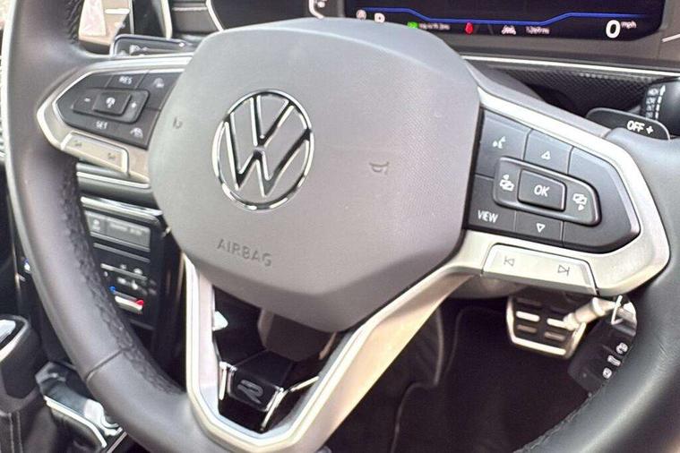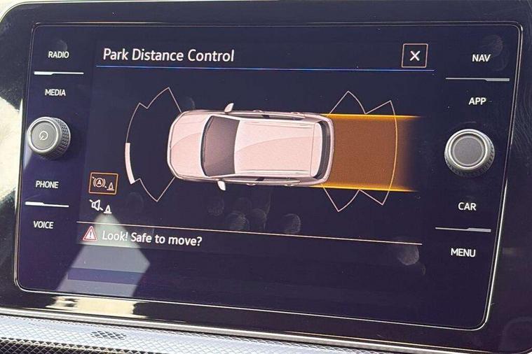 'Lights On' Reminder warning buzzer, 10.25" Digital cockpit pro, Advanced driver attention and drowsiness monitor, Bluetooth telephone and audio connection for compatible devices, Car information display, Driver profile selection including ECO function, Dynamic road sign display, E-Sim card for online connectivity, eCall emergency call system, Front and rear parking sensors, Front assist, forward collision warning, autonomous emergency braking and speed limiter, Low washer fluid warning light, Mobile phone interface with inductive charging, Multifunction computer with visual gear change recommendation for fuel consumption, Multifunction front facing camera for distance control, Operating permit alteration, Power assisted steering, Predictive adaptive cruise control, Preparation for navigation system with media and internet package, Preparation for We connect and We connect plus, Semi-automated driving assistance, travel assist including lane keeping system Lane Assist and emergency assisst, Side assist, Speedo, rev counter, electronic odometer, trip, service interval display, exterior temperature and fuel gauge, Warning sound and light for doors and tailgate open, Warning sound and light for front seatbelts unfastened, Wireless Car net app connect with Apple CarPlay, combined functionality of Apple CarPlay/Android Auto and MirrorLink, Wireless charging, Misfuel prevention device, Start-stop system with battery regeneration (recuperation - energy recovery during braking), 2 USB C ports in front, 2 USB charging sockets on the centre console in the rear charging capacity upto 45W, DAB Digital radio receiver, Diversity antenna for FM reception, Multi device interface (MDI) with USB connection, Music playback - MP3, WMA and AAC files, Radio, Advanced high beam control dynamic light assist, Automatic dimming interior rear view mirror, Automatic hazard lights activation under emergency braking, Automatic headlight control and coming home and leaving home feature, Black roof rails, Body colour door handles, Body coloured bumpers, Cornering light and poor weather light, Dynamic headlight range control, Electric folding door mirror, adjustable, heated with front passenger exterior mirror lowering function, Exterior mirror housings in black, Exterior mirrors convex on the left and aspherical on the right, Front and rear electric windows, Front door sill protectors with R-Line logo, Galvanised body, Heat insulating and laminated safety glass windshield, Heat insulating darkened glass in side and rear windows, Illuminated molding between headlamps, IQ.Light LED matrix headlamps with LED separate daytime running light, LED rear tail lights with dynamic turn signal, LED third brake light, Lower door sills and door pillars in black, Privacy glass for rear side windows and rear window, Rain sensor, Rear fog light on one side, reversing light on both sides, Rear side wing doors, Rear window aerial, Rear window wiper with intermittent control, Reflectors in all doors, Scuff plates, Tailgate with integrated roof spoiler, 12V Accessory socket in centre console, 2 Front and rear reading lights incorporating LED technology, 3 rear head restraints, 3 seat bench in 2nd row, 60/40 split folding rear seat backrest, Air care climatronic 2 zone air conditioning system, Ambient lighting and logo projection, Brushed stainless steel pedals, Chrome plated radiator grille inserts, air vent surrounds and light switch surrounds, Cloth upholstery, Comfort front sport seats, Door and side trim panel, Driver and front passenger sunvisor with vanity mirror, Dust and pollen filter, Front + rear carpet mats, Front centre armrest, Front centre armrest with storage compartment, Front footwell illumination, Front seat back storage pockets, Glove compartment door with light, Heated front seats, Heating and fresh air system with 4 stage blower, Height/reach adjust steering wheel, Instrument lighting white adjustable panel illumination, Interior light with switch off delay and dimmer, Isofix anchors for child seats on outer rear seats and front passenger seats, Leather gearshift handle, Leather wrapped multifunction steering wheel with paddle shift, Luggage compartment floor, Luggage compartment lighting, Manual front seats with height adjustment, Padded dashboard, Removable luggage compartment cover, Single front passenger seat, Storage compartment in drivers and front passengers door, Titanium black roof lining, Unsplit sliding rear seat bench, Without drawers under front seats, 3 point outer rear seat belts with ECE label, 3 Point seatbelt for centre rear seat, Anti-lock Braking System (ABS) with Hydraulic Brake Assist (HBA), Automatic post collision braking system, Disc brakes in front, Disc brakes in rear, Driver and front passenger safety-optimised head restraints, Drivers and Front Passengers airbags with front passengers airbag deactivation switch, ESC with EDL and ASR (traction control), Extended and predictive pedestrian/cyclist protection, Front and rear passenger curtain airbag system including front side airbags, Height adjustable front 3 point seatbelts + pretensioners, Hill start assist, Pre crash preventive occupant protection, Proactive passenger protection system in combination with front assist, Rear door child safety locks, Rigid safety cell with front and rear crumple zones, Single tone horn, Tyre pressure loss indicator, Volkswagen roadside assistance, Alarm with interior protection, Anti theft alarm system, Anti theft wheel bolts, Electronic engine immobiliser, Remote tailgate unlocking using key fob, Black decorative trims, Titanium Black Decorative inserts - R Line, 18" York alloy wheels in black, Low rolling resistance tyres,