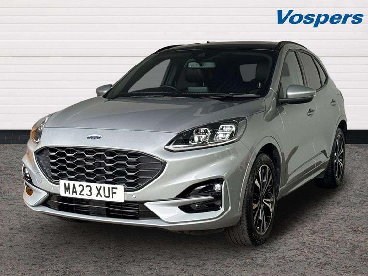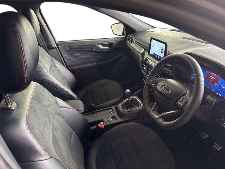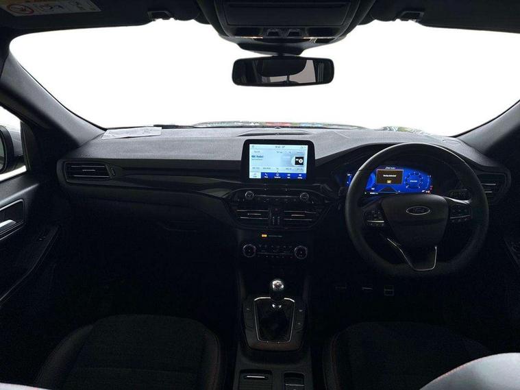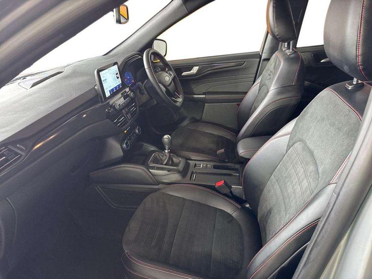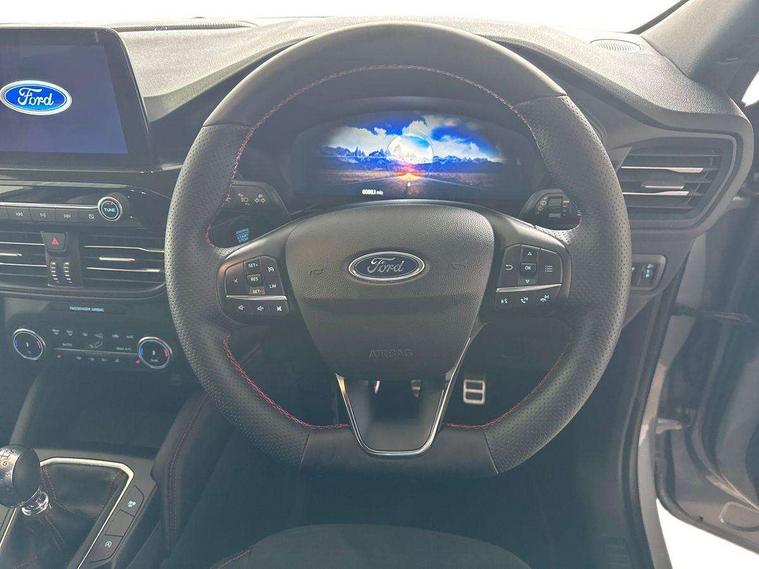 12.3" digital colour instrument cluster, Ford easy fuel, Ford SYNC 3 with 8" TFT LCD touchscreen, App Link, andriod auto/apple carPlay, emergency assistance and navigation with Ford pass connect, Front and rear parking sensors, Hands free power tailgate, Lane keeping aid with lane departure warning, Power assist steering, Rear view camera, Selectable drive modes, Service interval indicator, Sports suspension, Twist beam rear suspension, B&O premium audio system with 10 speakers and subwoofer, 2 USB ports, DAB radio/CD, Auto headlamps with high and low beam, Black roof rails, Day/night rear view mirror, Front LED fog lamps, Large rear spoiler, LED daytime running lights, LED rear lights, Power folding heated door mirrors with puddle lights, Power front/rear windows with global close, Power opening panoramic roof, Privacy glass, Quickclear heated windscreen, Rear side wing doors, Rear wiper, ST Line body styling kit with unique front and rear fascia and bumper, rear painted diffuser, front painted skid plates, dark mesh upper grille, ST Line front scuff plates, Third brake light, Twin exhausts, 10 way power adjustable drivers seat, 2nd row sliding seats with 60:40 split, 8 way manual passenger seat including lumbar support and height adjust, Alloy pedals, Centre console with electronic parking brake, Dark headlining and pillars, Electronic automatic temperature control (EATC), Flat bottomed leather steering wheel in sensico with red stitching, Front and rear head restraints, Heated passenger and driver seats, Heated rear seats, Heated steering wheel, Partial premium touch sensico leather upholstery with black cloth inserts and red stitching, Rear charging point, Single front passenger seat, Sports seats, ST Line front and rear floor mats, ST Line gear knob, 3x3 point rear seatbelts, Airbags - front driver/passenger, front and rear curtain, Drivers knee airbag, Electronic stability control (ESC) and ABS, Ford MyKey Gen 2 safety system, Manual child proof rear door locks, Post collision braking, Pre collision assist with autonomous emergency braking, Rear seat Occupancy alert, Red brake calipers, Tyre pressure monitoring system, Engine immobiliser, Keyless entry and Ford power start button (Keyless start), Locking wheel nuts, Remote powered central double locking doors, Thatcham category 1 alarm,