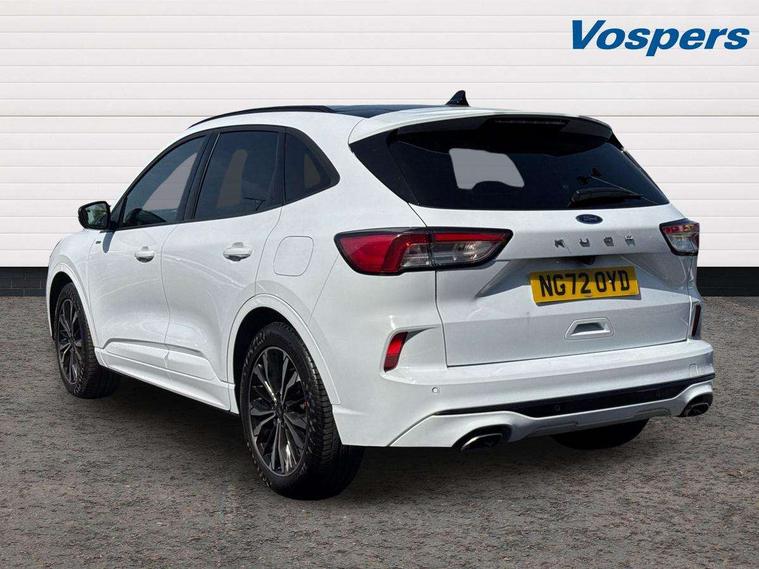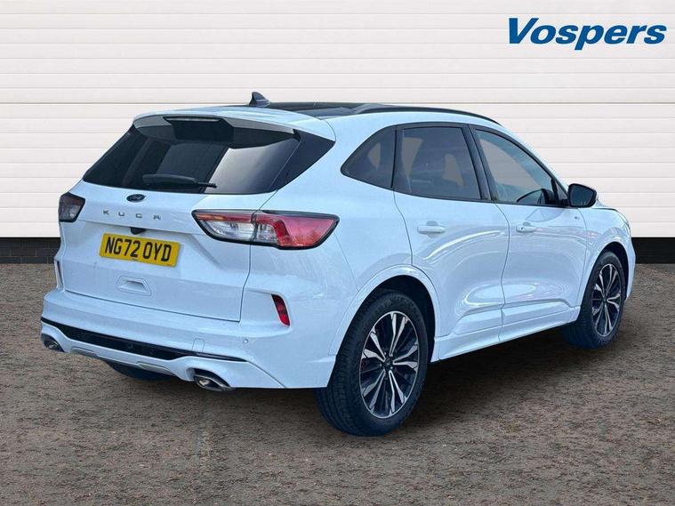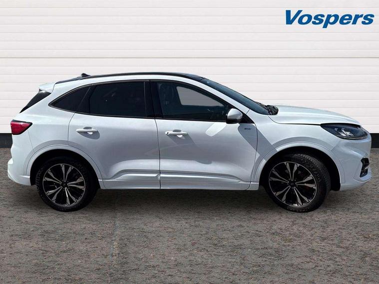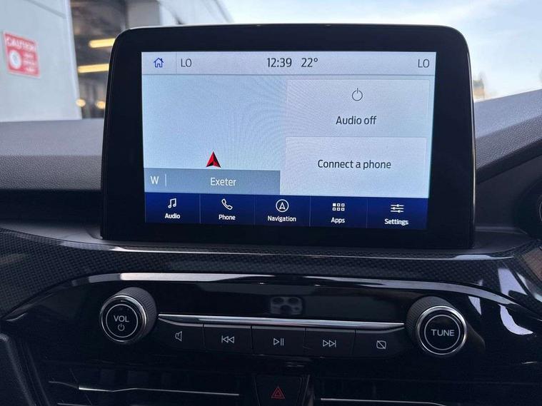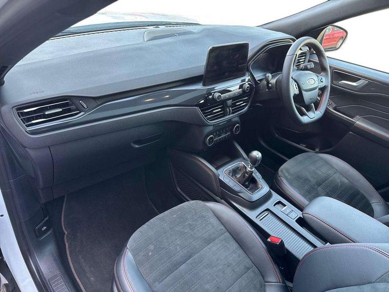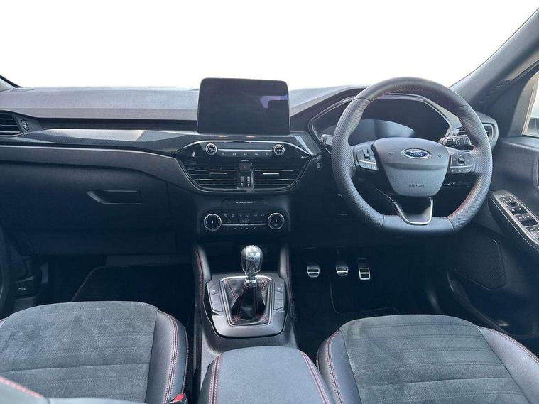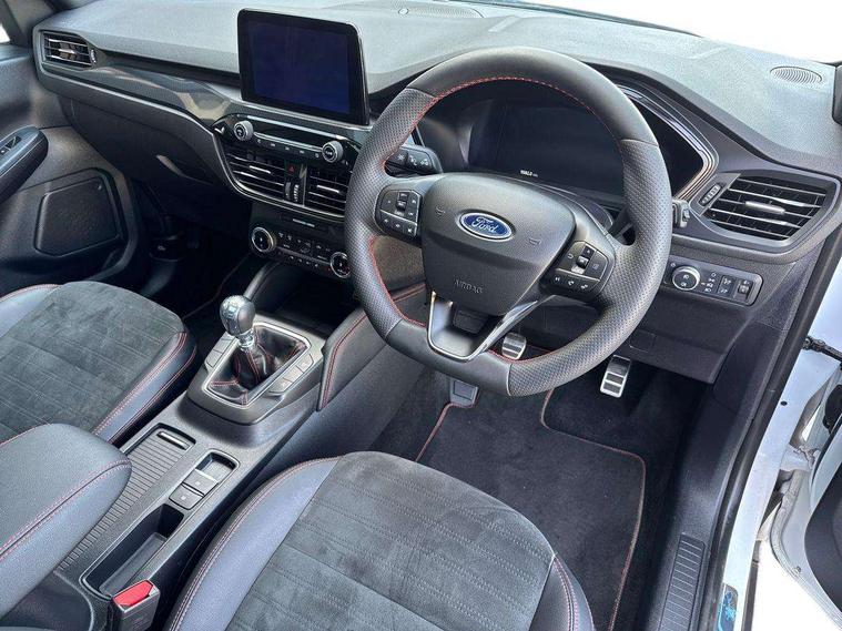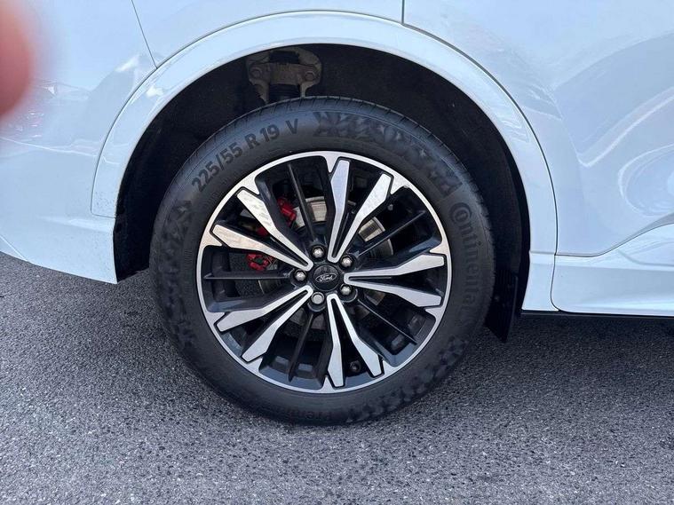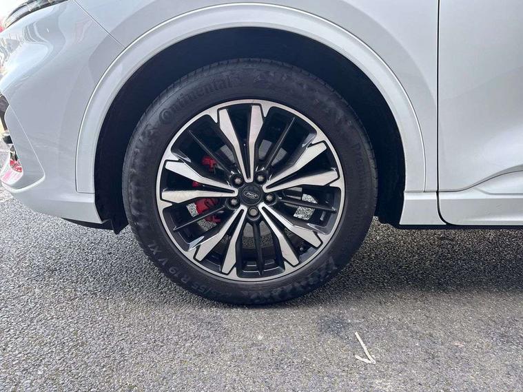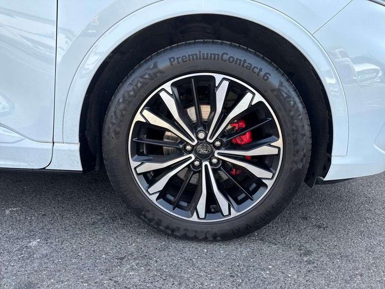 12.3" digital colour instrument cluster, Ford easy fuel, Ford SYNC 3 with 8" TFT LCD touchscreen, App Link, andriod auto/apple carPlay, emergency assistance and navigation with Ford pass connect, Front and rear parking sensors, Hands free power tailgate, Lane keeping aid with lane departure warning, Power assist steering, Rear view camera, Selectable drive modes, Service interval indicator, Sports suspension, Twist beam rear suspension, B&O premium audio system with 10 speakers and subwoofer, 2 USB ports, DAB radio/CD, Auto headlamps with high and low beam, Black roof rails, Day/night rear view mirror, Front LED fog lamps, Large rear spoiler, LED daytime running lights, LED rear lights, Power folding heated door mirrors with puddle lights, Power front/rear windows with global close, Power opening panoramic roof, Privacy glass, Quickclear heated windscreen, Rear side wing doors, Rear wiper, ST Line body styling kit with unique front and rear fascia and bumper, rear painted diffuser, front painted skid plates, dark mesh upper grille, ST Line front scuff plates, Third brake light, Twin exhausts, 10 way power adjustable drivers seat, 2nd row sliding seats with 60:40 split, 8 way manual passenger seat including lumbar support and height adjust, Alloy pedals, Centre console with electronic parking brake, Dark headlining and pillars, Electronic automatic temperature control (EATC), Flat bottomed leather steering wheel in sensico with red stitching, Front and rear head restraints, Heated passenger and driver seats, Heated rear seats, Heated steering wheel, Partial premium touch sensico leather upholstery with black cloth inserts and red stitching, Rear charging point, Single front passenger seat, Sports seats, ST Line front and rear floor mats, ST Line gear knob, 3x3 point rear seatbelts, Airbags - front driver/passenger, front and rear curtain, Drivers knee airbag, Electronic stability control (ESC) and ABS, Ford MyKey Gen 2 safety system, Manual child proof rear door locks, Post collision braking, Pre collision assist with autonomous emergency braking, Rear seat Occupancy alert, Red brake calipers, Tyre pressure monitoring system, Engine immobiliser, Keyless entry and Ford power start button (Keyless start), Locking wheel nuts, Remote powered central double locking doors, Thatcham category 1 alarm,