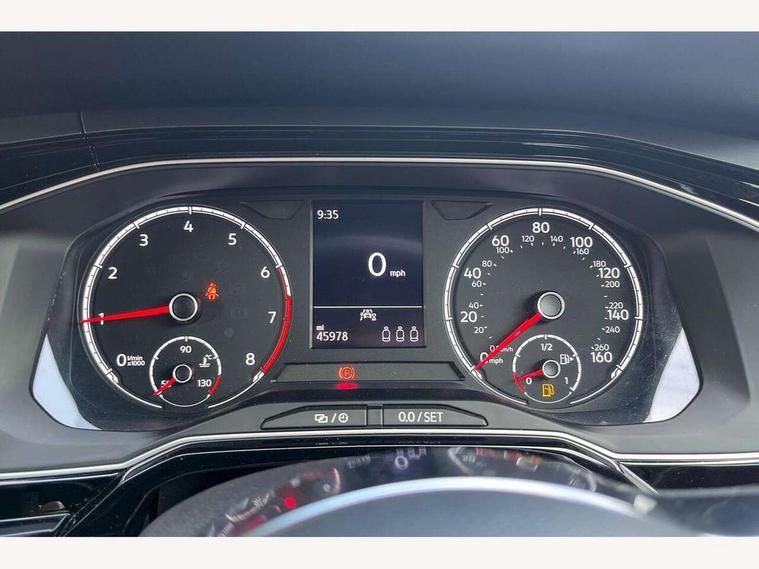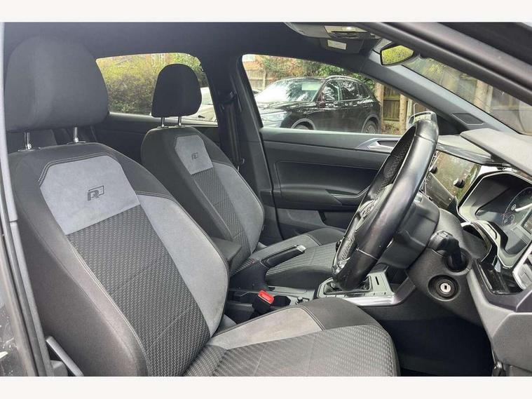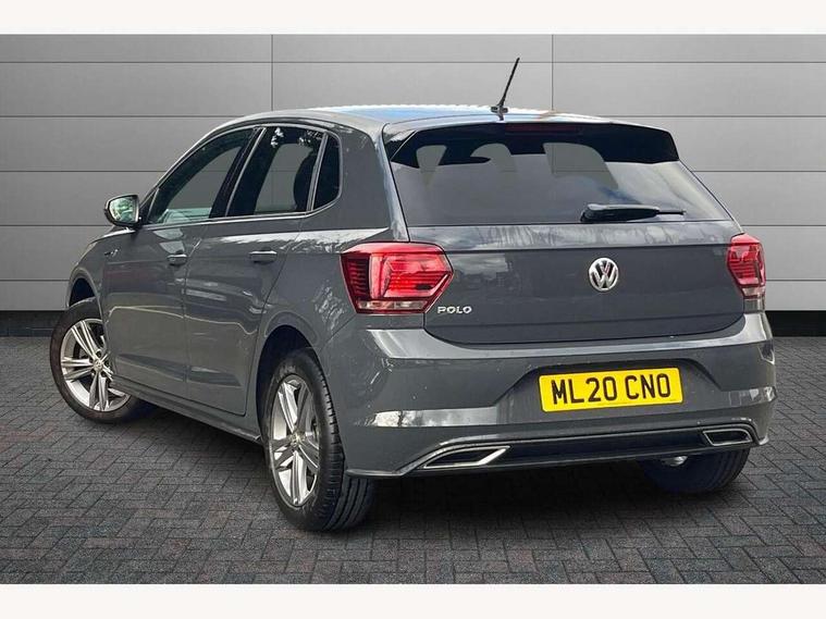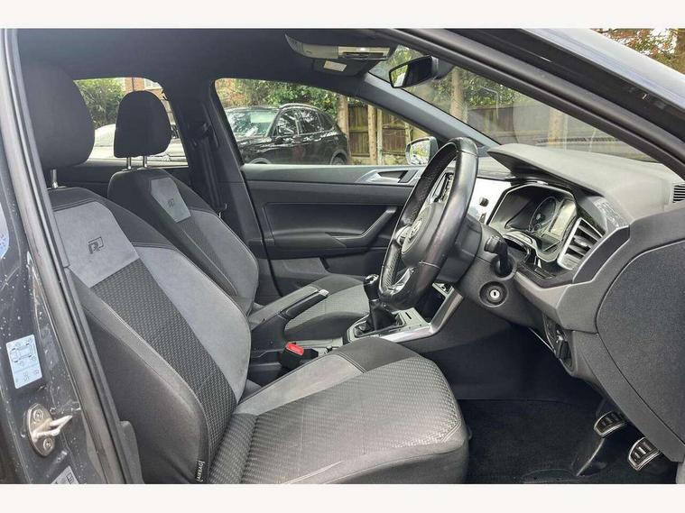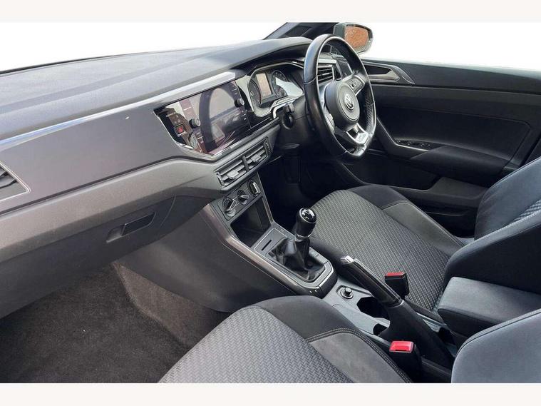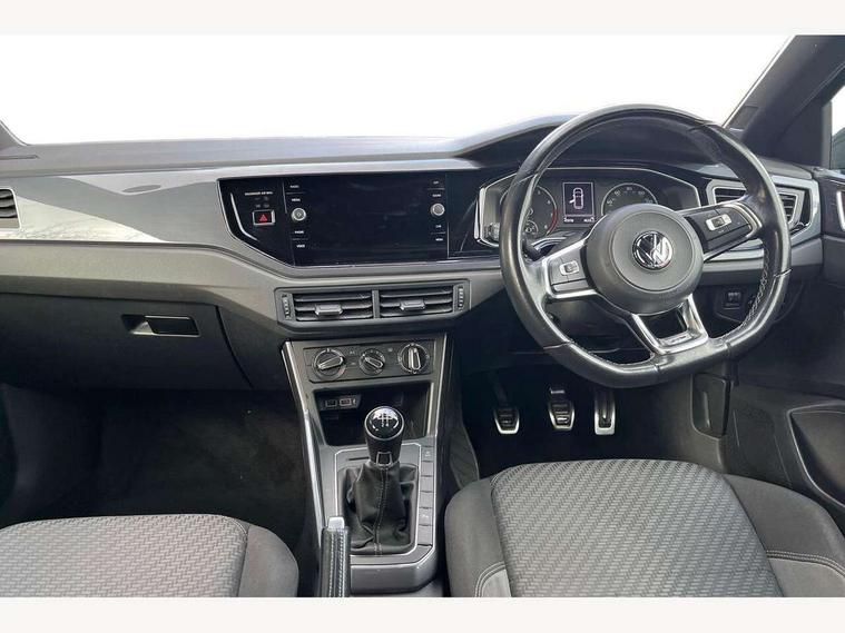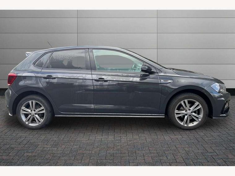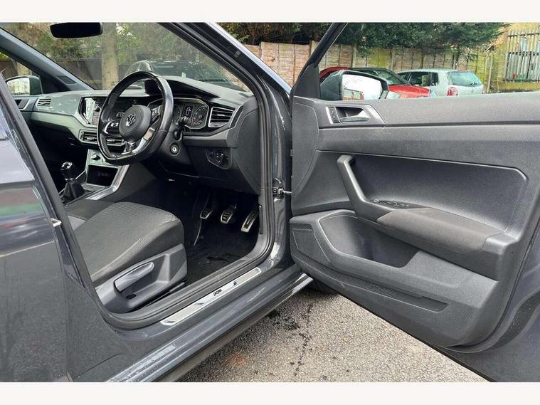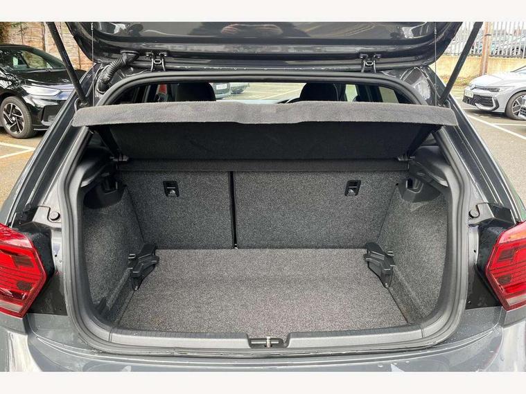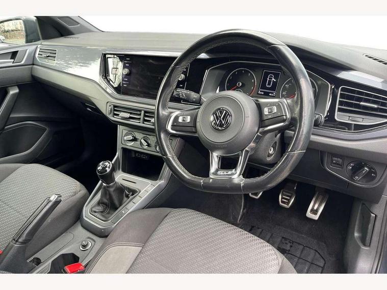 App-Connect, Digital clock, Driver alert system, Lights on warning, Multifunction computer plus, Power assisted speed sensitive steering, Speedo and rev counter, electronic odometer, trip, service interval display and fuel gauge, Start/stop system, Volkswagen connect, Warning buzzer and light for front seatbelts unfastened, Battery regeneration during braking, Galvanished body, Black grille with chrome surround, Body colour door handles, Body coloured side sills, Chrome trimmed strip on lower bumper, Electric front windows, Electrically foldable, adjustable and heated door mirrors with reverse activated kerb view adjustment on passenger's side, Front fog lights including static cornering, Front windscreen washers and wipers with 4 speed intermittent delay, Heated rear window with auto timer, High level 3rd brake light, LED darkened rear light clusters, LED daytime running lights, LED rear number plate lights, Left and right chrome effect trapezoid fascia exhaust tailpipe surrounds, Rear diffuser, Rear electric windows, Rear windscreen washer and wiper with interval delay, reverse activated, Unique R Line badging, 2 bag hooks in luggage compartment, 2 front cupholders and 12 V socket with cover, 3 rear head restraints, 60/40 split folding rear seat, Ambient lighting in front foorwell, front/rear door and dashboard light strips, Carbon flag cloth upholstery, Centre console storage with open storage compartment, Chrome-plated electric mirror adjustment switch surround, Chrome-plated electric window button surround, Driver and front passenger seat height adjustment, Driver and front passenger sunvisors with illuminated vanity mirrors, Dust/pollen filter, Folding rear seat backrest, Front + rear carpet mats, Front centre armrest with storage compartment, Front head restraints, Front seat backrest storage pockets, Front sport seats with lumbar adjustment and R line logo on seat backrest, Gear lever gaiter in black trim surround, Glovebox, Handbrake grip button in chrome effect, Height/reach adjustable steering column, Instrument lighting, adjustable panel illumination, Interior light with delay, Isofix Preparation 2 Rear child seats, Leather gear knob and handbrake grip, LED interior lighting - 2 reading lights front and rear with interior delay and dimming function, Luggage compartment cover, removable, Luggage compartment lighting, Luggage compartment with variable load floor, Stainless steel pedals, Storage compartment in front doors, Storage compartment in rear doors, Storage compartment under front seats, Three spoke leather trimmed multifunction steering wheel with aluminium inserts and R Line Logo, Titanium black roof lining and sun visors, Unique R Line door sill protectors, Light and sight pack - Polo, R Line styling pack - Polo, 3 point height adj front seatbelts + pretensioners, 3x3 point rear seatbelts, ABS, Automatic post collision braking, Driver/front passenger airbag, Drivers and front passengers safety optimised head restraints, ESP with EDL + ASR, Front and rear passenger curtain airbags, Front passenger airbag deactivation, Front seat side impact airbags, Front/rear disc brakes, Hill hold control, Hydraulic Brake Assist (HBA), Single tone horn, Tyre pressure monitoring system, Alarm with interior protection and deactivation via infotainment system, Electronic engine immobiliser, Remote central locking with 2 remote folding keys, Chrome plated air vent surround, Chrome plated instrument surrounds, Shadow steel decorative inserts, Steel space saver spare wheel,