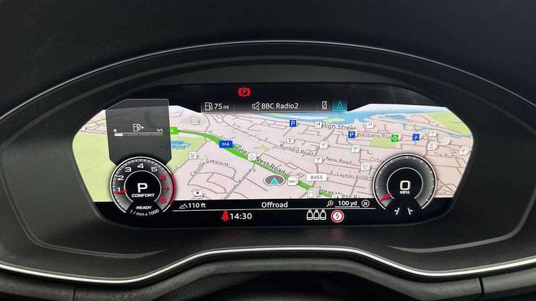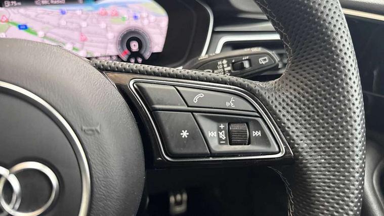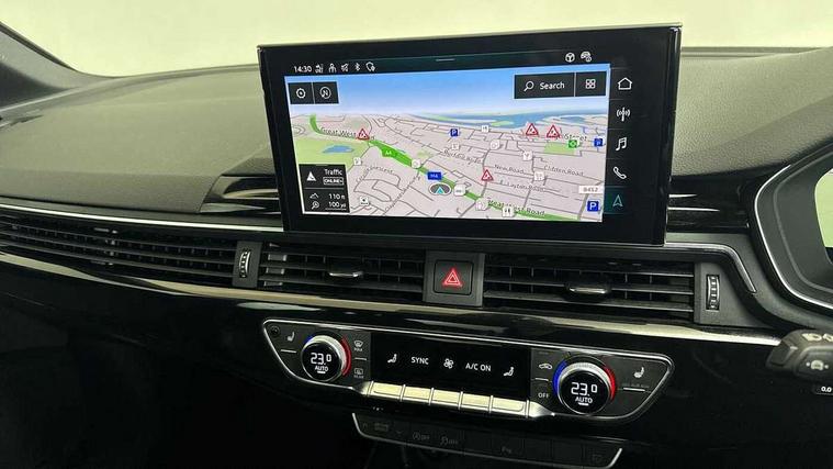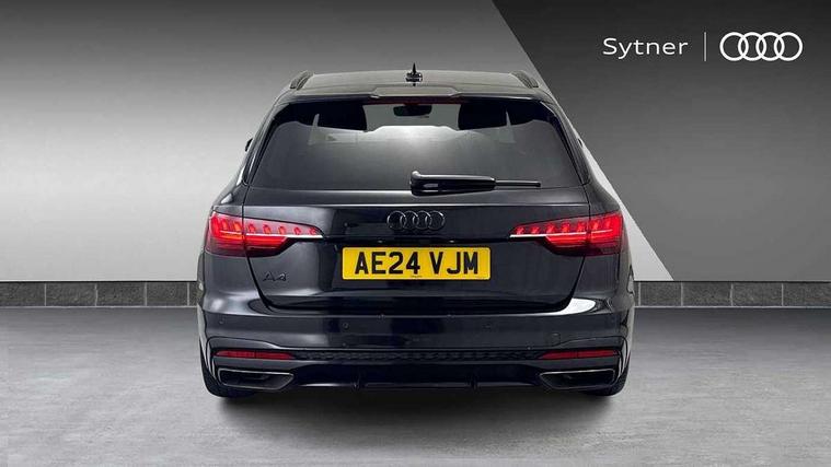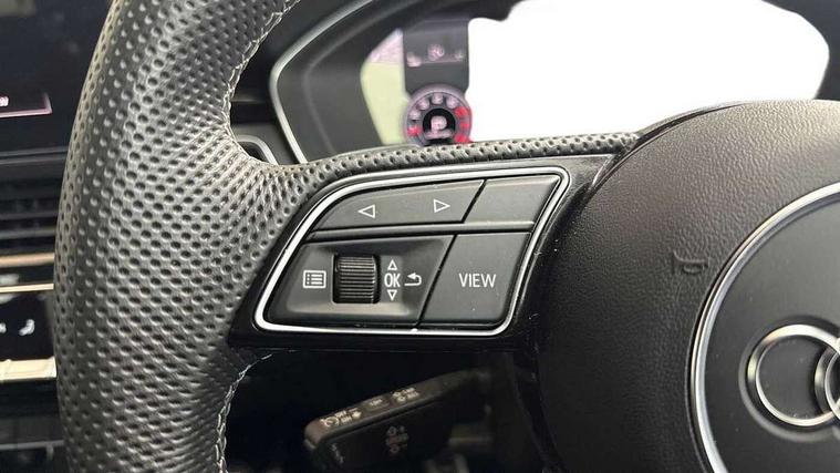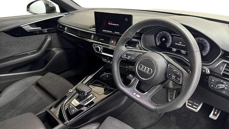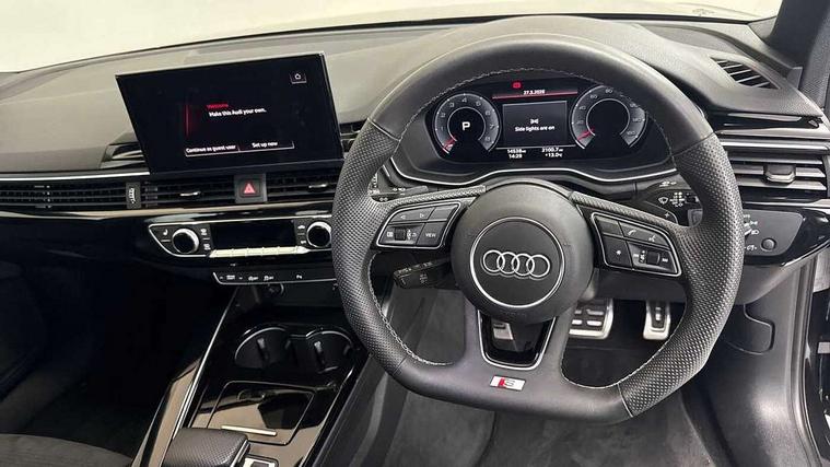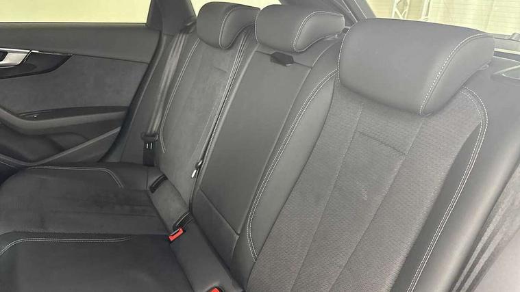 Audi connect safety and service (e-call), Audi drive select, Audi smartphone interface, Audi virtual cockpit, Automatic start-stop system with coasting functionality and efficiency programme, Bluetooth interface, Camera based traffic sign recognition, Electromechanical power steering, Email, calendar and text messages displayed via MMI, Front and rear parking sensors, Lane departure warning, MMI Navigation plus with MMI touch includes 10.1" high resolution colour MMI display, 3D map, Power operated tailgate, Rear view camera, Voice control system, 54 litre fuel tank, Sports suspension lowered by 23mm, 2 USB charging ports, 8 passive loudspeakers, DAB digital radio reception, Audi beam uses LEDs to project the audi logo onto the ground as you exit your A4, Auto dimming rear view mirror, Black Audi rings and black badging (model name in black badging, no engine badging), Body colour door handles, Body colour front spoiler lip, Body colour side sill trim, Electric adjustable/heated/folding door mirrors with auto dimming, Exhaust tailpipes in high dark chrome, Grained matt black side air inlets with matt aluminium silver inlay, High beam assistant, High gloss black B pillar trims and triangular rear door trim, LED headlights with LED rear lights + dynamic rear indicators + headlight adjustment and high beam, turning light + LED daytime running lights, LED third brake light, Privacy glass, Rain and light sensors, Rear diffuser in matt black with trim strip in matt aluminium silver, Rear side wing doors, Rear wiper, RS4 rear spoiler in body colour, S Line roof edge spoiler, Sport front and rear bumpers with side skirts, Variable intermittent front wash/wipe, Windscreen with acoustic glazing, 4 way electric lumbar support for driver and front passenger, 40/20/40 split folding 3 rear seat bench in 3 parts with rear centre armrest, Black carpets, Black cloth headlining, Black perforated leather gearknob, Contrast stitching on seats, steering wheel and gear lever gaiter, Deluxe 3 zone electronic climate control, Electric load area cover, Front and rear head restraints, Front centre armrest, Heated front seats, Illuminated door sill trims with S logo, ISOFIX child seat mounting and top tether, Manual seat adjustment, Single front passenger seat, Stainless steel pedals and foot rest, Tool kit, Black styling pack - A4 Avant, LED Interior light pack - A4/S4, 3 rear seatbelts, 6 airbags - Driver, front passenger, curtain and side windows, Attention and drowsiness assist, Electronic Stabilisation Control (ESC) including ABS, ASR and EDL, Hill hold assist, Multi collision brake assist, Pop-up bonnet for pedestrian protection, Pre sense city, Rear door child safety locks, Seatbelt monitoring, Warning triangle and first aid kit, Anti theft alarm, Anti theft wheel bolts, Central locking, Keyless Go, Piano black finish inlay, Tyre repair kit,