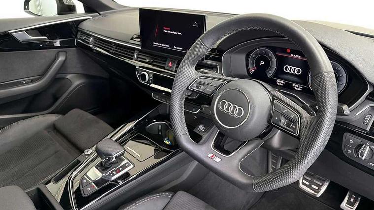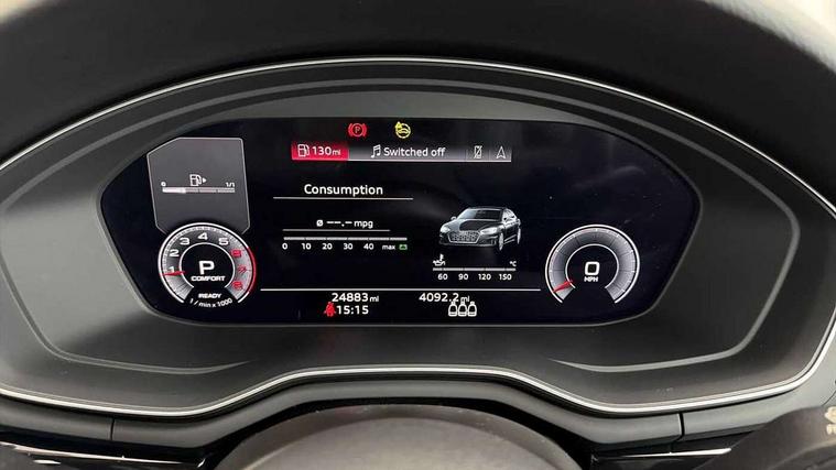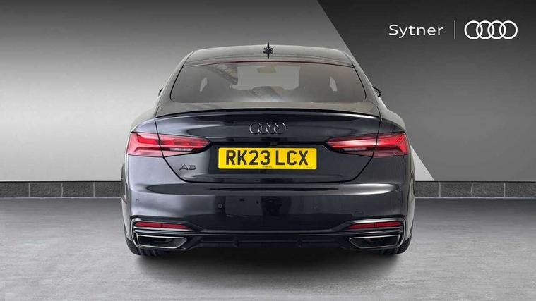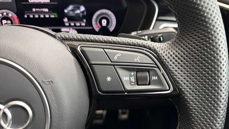 Audi connect safety and service (e-call), Audi connect with Amazon Alexa Integration, Audi drive select (Auto, Comfort, Dynamic and Individual), Audi parking system plus with front and rear sensors, Audi smartphone interface, Audi virtual cockpit - 12.3" full colour digital instrument cluster, vehicle/engine speed, Radio/media information+Driver assistance systems, Automatic start-stop system with coasting functionality and efficiency programme, Bluetooth interface, Electro-mechanical power steering, Email, calendar and text messages displayed via MMI, MMI nav+ with MMI touch - 10.1" high resolution MMI display, touch sensitive, 3D map, route/country info, dynamic route guide, personal route assist, Power operated tailgate, Rear view camera, Service interval indicator, Voice control system, Sports suspension lowered by 23mm, 8 passive loudspeakers, CD player, DAB digital radio reception, Two additional USB ports for rear passenger in rear centre console, Two SDXC card slots, Audi Beam uses LEDs to project the Audi logo, Audi matrix LED headlights with LED rear lights + dynamic front and rear indicators, Auto dimming door mirrors, Auto dimming rear view mirror, Black door mirror housings, Body colour door handles, Body colour front spoiler lip, Body colour side sill trim, Electric adjustable heated door mirrors, Electric folding door mirrors, Electric front windows, Exhaust tailpipe trims in dark chrome, Front and rear bumpers with side skirts, Front fog lights, Honeycomb structure radiator grille in grained matt black, Kerb-view function for passenger side, LED daytime running lights, LED side indicator lights integrated into door mirrors, LED third brake light, Privacy glass, Rain and light sensors, Rear diffuser in matt anthracite black with trim strip in matt aluminium silver, Rear side wing doors, S model rear spoiler in black, Side air inlets in grained matt black with matt aluminium silver inlay, Variable front intermittent wipers, Windscreen with acoustic glazing, 3 seat bench in 2nd row, 4 way electric lumbar support for driver and front passenger, 40/20/40 split folding 3 seater rear bench seat, Adjustable steering column, Black cloth headlining, Black perforated leather gearknob, Contrast stitching on seats, steering wheel and gear lever gaiter, Deluxe 3 zone electronic climate control, Front centre armrest, Front head restraints, Front/rear floor mats, Heated front seats, Illuminated door sill trim with S logo, ISOFIX child seat mounting and top tether, Luggage compartment mat, Manual seat adjustment, Rear centre armrest, Rear headrests, Single front passenger seat, Stainless steel pedals, Sunvisors with vanity mirrors, Black styling pack - A5 Coupe/Sportback, LED interior light pack - A5/RS5, 3x3 point rear seatbelts, 6 airbags - Driver, front passenger, curtain and side airbags, Electromechanical parking brake, Electronic Stabilisation Control (ESC) including ABS, ASR and EDL, Front passenger airbag deactivation, Height adjustable front seatbelts, Hill hold assist, Manual child lock in rear doors, Multi collision brake assist, Pop-up bonnet for pedestrian protection, Pre sense city, Seatbelt monitoring, Tyre pressure warning, Variable restraint system, Warning triangle and first aid kit, Anti theft alarm system, Anti theft wheel bolts, Immobiliser, Keyless Go, Remote central locking, Piano black finish inlay, 20" 5 twin spoke polygon design alloy wheels in gloss anthracite black and gloss turned finish, Tool kit, Tyre repair kit,