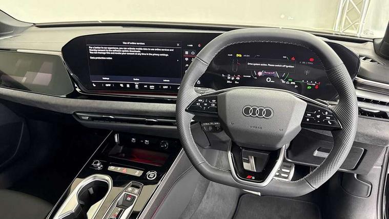 All wheel steering, Audi application store, Audi assistant, Audi connect emergency call and service, Audi connect with Amazon Alexa Integration, Audi digital key, Audi drive select, Audi phone box with wireless charging, Audi virtual cockpit, Automatic start/stop system with coasting functionality, Bluetooth interface, Lane departure warning with emergency assist, Luggage compartment lid with Electric opening / closing, MMI 10.9" front passenger touch display, MMI navigation plus with high resolution 14.5" OLED touchscreen colour display, Power assisted steering, Service interval indicator, Side assist and exit warning with rear cross-traffic assist and rear turn assist, Smartphone interface includes wireless Apple carplay/Android Auto, Voice control system, 3 pin 10 amp domestic charging cable, Compact e-tron charging system, Fuel tank 46L, Hybrid propulsion system, Industrial connector CEE 32A, 230V, long and straight for the e-tron charging system, Mode 3 charging cable for public charging (AC), Quattro with ultra technology, Type 2 socket for AC charging, Audi sound system impressive sound with 10 loudspeakers including centre speaker and subwoofer, 6-channel amplifier with a total output of 180 watts, DAB Digital radio, USB ports with charging function, Audi Matrix LED technology, Auto dimming rear view mirror, Automatic-dynamic headlight range control, Black door handle inserts, Black roof rails, Body coloured door handles, Dipped beam, main beam, position light, dynamic indicator and cornering light, Door mirrors - electrically adjustable, heated, folding and auto dimming on both sides, Dynamic light scenarios of the coming home/leaving home function when stationary, Electric front/rear windows, Exhaust-pipe in dark chrome, Frameless auto dimming interior rear view mirror, Front illuminated aluminium inlay door sill trims with S logo, Headlight cleaning system, LED headlights Plus incl. digital daytime running lights, turning light, all-weather light, motorway light, manouevring light and intersection light, LED rear lights pro incl. brake lights, tail lights, rear number plate lights, reversing lights, continuous light strip, LED third brake light, Privacy glass, Rain and light sensors, Rear and side windows with heat insulating glass, Rear side wing doors, Rear wiper, Roof spoiler, S line exterior styling, Sport exterior inc Radiator grille, air inlets and diffuser in scandium grey as well as inlay in diffuser in selenite silver, White rhombus logo projection light in exterior mirrors, Windscreen with heat insulating and acoustic glazing, 3 seat bench in 2nd row, 3-spoke Sport leather steering wheel flat top and bottom with multifunction and shift paddles, 4 way electric lumbar support for driver and front passenger, 4 zone deluxe automatic climate control, 40:20:40 split folding rear seat bench with centre armrest and cup holders, Centre armrest, front- adjustable angle with four settings, Convenience auxiliary air conditioning, Dinamica microfibre/Artificial leather upholstery, Electrically adjustable front seats, Front and rear floor mats, Front head restraints, Heated front seats, i-Size child seat mounting on the front passenger side and outer rear seats, i-Size and top tether on the outer rear seats, Manual steering wheel adjustment, Net partition, Rear headrests, Single front passenger seat, Sport front seats, Stainless steel pedals and footrest, Steering wheel trim in chrome look, S emblem, steering wheel grips in perforated leather and contrasting stitching, Ambient lighting package plus - A6, Black exterior package - A6, Drive and Park assistance package - A6 Edition 1, Protective warning assistance package - A6, 3x3 point rear seat belts, Acoustic vehicle alerting system, Black seat belts, Convenience key with safelock, Driver and front passenger airbags, EBD - Electronic brakeforce distribution, Electric rear child safety lock, Electromechanical parking brake, Electronic Stability Control (ESC) including ABS, ASR and EDL, First aid kit with warning triangle and vests, Front passenger airbag deactivation, Proactive occupant protection, front, side and rear, Red brake calipers, Seatbelt monitoring, Side airbags in front and rear with head airbag system and front interaction airbag, Standard 18"steel disc brakes front and rear, Tyre pressure monitoring system, Anti theft alarm, Anti-theft wheel bolts, Immobiliser, Keyless Go, Remote central locking, Accents in the interior in aluminium look, Carbon square structure inlays, Upper and lower interior elements in dinamica microfibre, Wraparound interior elements in artificial leather, Tyre repair kit,