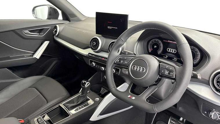 3D map display, Audi connect navigation and infotainment includes innovative services, Audi connect remote and control connects your vehicle to your smartphone, Audi drive select: S tronic - power steering assistance + engine + gearshift (modes: comfort, auto, dynamic, efficiency, individual), Audi smartphone interface - Apple carplay/Android Auto, USB connect, 2xSDXC card readers, voice control for navi, telephone, music and 3rd party apps, Audi virtual cockpit, Automatic start/stop system with recuperation, Bluetooth interface includes bluetooth audio streaming, Camera based traffic sign recognition, Cruise control, Distraction and Fatigue warning, E-call, Jukebox hard drive memory for music (10GB), Lane departure warning, MMI navigation plus with 8.8" touchscreen, Natural voice recognition, Power operated tailgate, Progressive steering, Rear parking sensors, Sport suspension, 6 passive loudspeakers, DAB Digital radio, USB type C port, Audi beam, Auto dimming rear view mirror, Black window trims, Bumper in full body colour paint finish, Electrically adjustable, folding, auto dimming and heated door mirrors with integrated LED side indicators, Front windscreen with grey tinted sunband, LED daytime running lights, LED headlights with dipped beam, high beam, position lights, indicators, LED rear lights, LED third brake light, Privacy glass - dark tinted rear and rear side windows from B-pillar backwards, Rear side wing doors, Rear wiper, Variable front intermittent wipers, Wheel arch trims in manhattan grey, 12V socket in front, 3 seat bench in 2nd row, 3 spoke flat bottomed multi-function leather sport steering wheel with gear shift paddles with S logo, 4-way electric lumbar support for front seats including manual seat height adjustment for both front seats, 60/40 split folding rear seat bench, Black carpets, Black cloth headlining, Front and rear head restraints, Front centre armrest, Front sport seats, Front/rear floor mats, Height/reach adjust steering wheel, Illuminated door sill trims with S logo, ISOFIX child seat mounting in front passenger and rear outer seats, Manual air conditioning, Single front passenger seat, Stainless steel pedals, Black styling pack - Q2, 3x3 point rear seatbelts, 6 airbags - Front, curtain and front side airbags, Electromechanical parking brake, Electronic stabilisation control including ABS, ASR and EDL, Front passenger airbag deactivation, Hill hold assist, Pre-sense front with pedestrian recognition, Seatbelt monitoring, Tyre pressure warning light with visual and acoustic warning, Warning triangle and first aid kit, Anti theft wheel bolts, Electronically operated child locks, Remote central door locking, Thatcham category 1 alarm, Aluminium interior element, Black dashboard, Gloss black centre console, Matt brushed aluminium trim inlays, Tool kit,