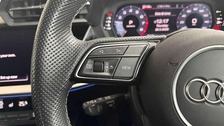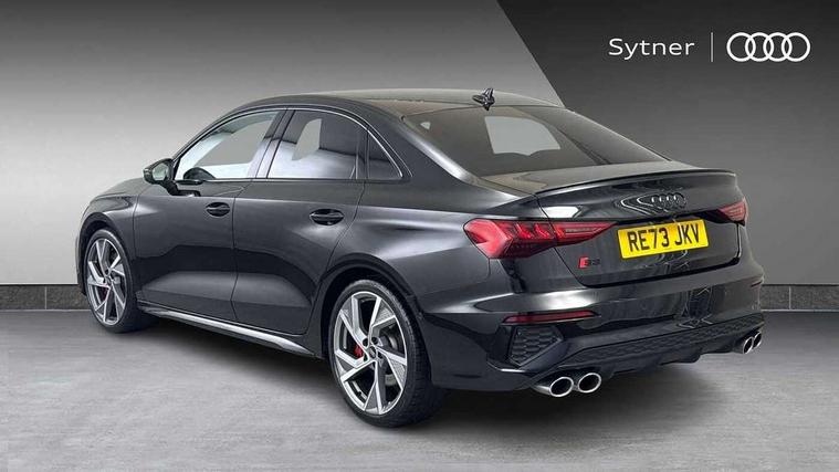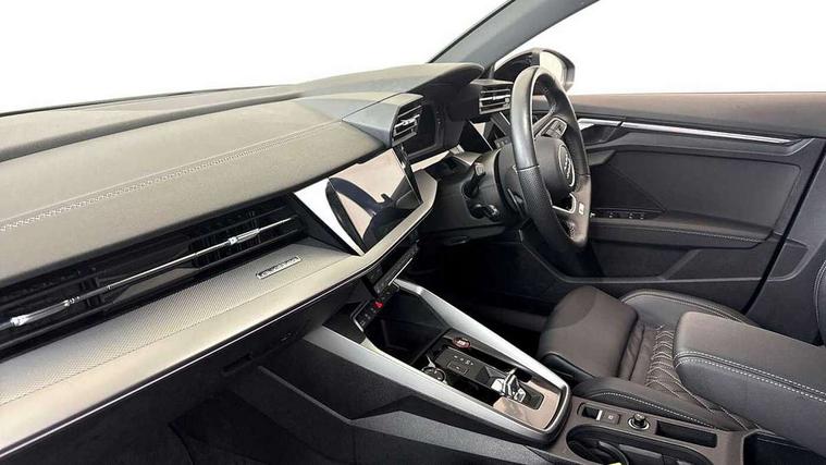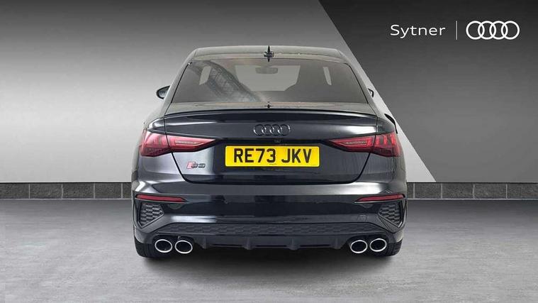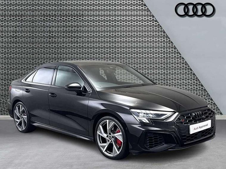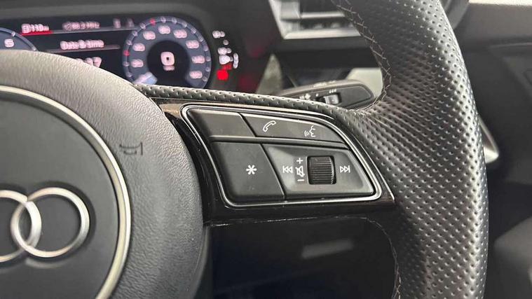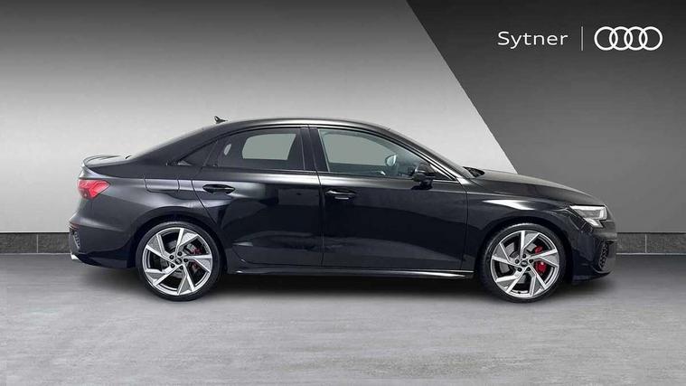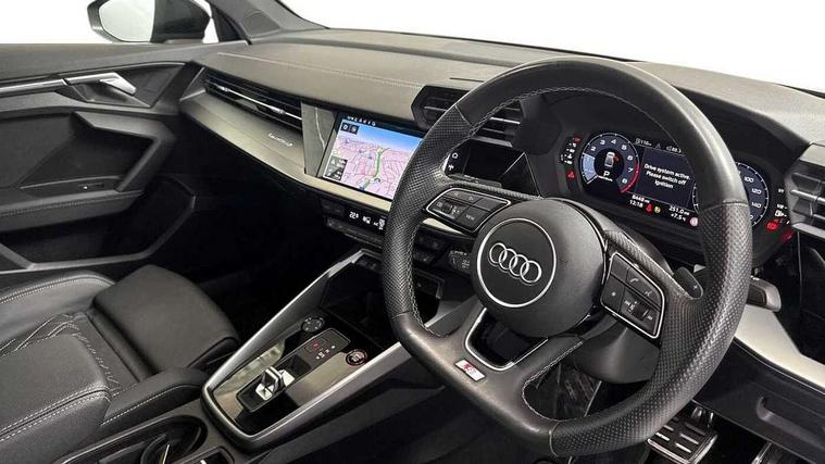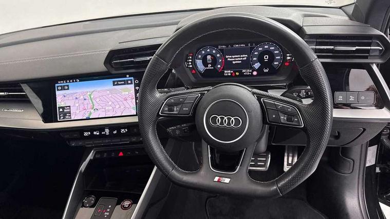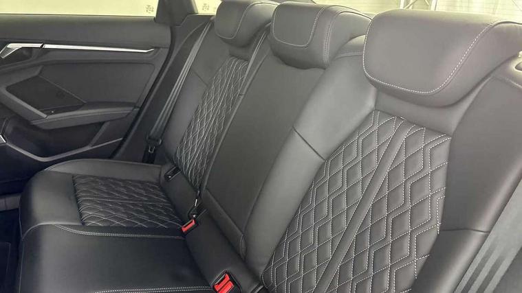 Audi drive select (Auto, Comfort, Dynamic, Efficiency and Individual), Audi smartphone interface, Audi Virtual Cockpit - 10.25" digital and colour instrument cluster, Automatic start/stop system with recuperation, Bluetooth interface, Camera based traffic sign recognition, Collision avoidance assistant, e-Call (emergency call), Lane departure warning system, MMI Navigation Plus with high resolution 10.1" colour touch screen display, Progressive steering, Service indicator, Trip computer, Voice control system with natural language interaction, Quattro permanent all wheel drive, S sport suspension with spring damper adjustment and lowering by 15mm, 2xUSB-C connection with data and charging functions, CD player, DAB Digital radio, 3rd brake light, Acoustic glass windscreen, Audi Beam uses LEDs to project the Audi logo onto the ground as you exit your S3, Auto dimming frameless rear view mirror, Dual branch oval twin tailpipes in chrome plated finish, Electrically adjustable/heated/folding/auto dimming door mirrors with integrated LED indications + kerb view function for passenger side, Front electric windows, Headlight washers, Illuminated door sills with aluminium inserts at the front with S logo, LED daytime running lights, LED headlights with LED rear lights and dynamic rear indicators, Light and rain sensors, Model and engine designation badges at rear, Privacy glass - dark tinted rear window, rear door and side windows, Rear boot, Rear electric windows, Rear side wing doors, 12V socket and storage compartment in front centre console, 3 seat bench in 2nd row, 3 spoke flat bottomed leather multifunction sport steering wheel with gear shift paddles, 4 way electrically adjustable lumbar support for driver and front passenger, 60/40 split folding rear seat bench, Black cloth headlining, Dual zone electronic climate control, Fine Nappa leather upholstery with front sports seats S embossed logo, Front and rear centre armrest in artificial leather, Front and rear headrests, Front/rear floor mats, Height and reach adjustable steering wheel, Interior lighting - glove compartment light and right hand side, Luggage compartment floor covering, Manual boot compartment lid, Manually adjustable front seats, Single front passenger seat, Stainless steel pedals and front footrest in black, Aluminium interior elements pack - A3, Black styling pack - A3 Saloon/S3, Body styling design pack - S3, Extended ambient lighting pack - A3/S3 Saloon, Storage pack - A3/S3 Saloon, Technology pack with parking assist - A3 Saloon, 3x3 point rear seat belts, Driver and front passenger airbag with passenger airbag deactivation, Electronic Stabilisation Control (ESC) including ABS, ASR and EDL, First aid kit with warning triangle and 2 safety vests, Front side airbags with head airbags and interaction airbag, Pre-sense front with pedestrian and cyclist detection, Seatbelt monitoring, Tyre pressure loss indicator, Anti theft alarm, Anti-theft wheel bolts, Electronically operated child locks, Immobiliser, Remote control central locking, Aluminium air vent surrounds, Dark spectrum aluminium inlays, accent surfaces in the dashboard and centre console in platinum grey silk effect paint finish,