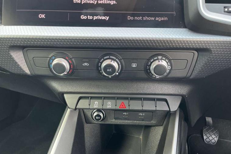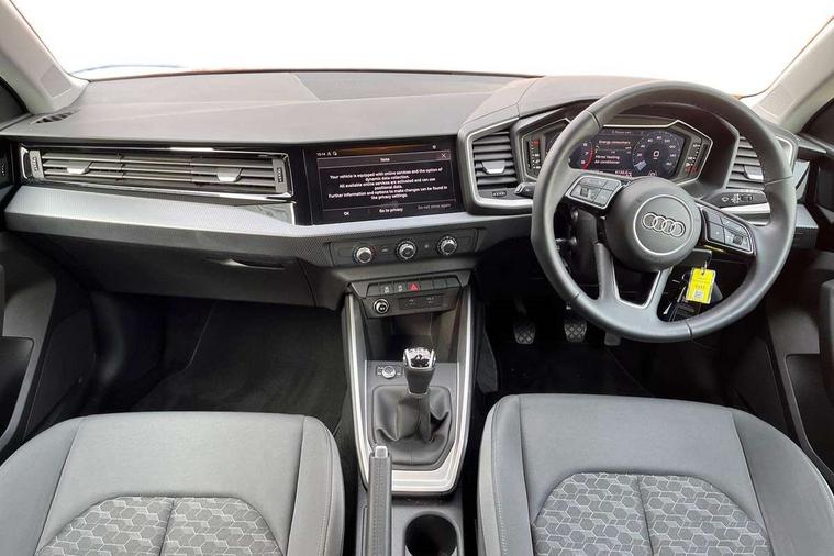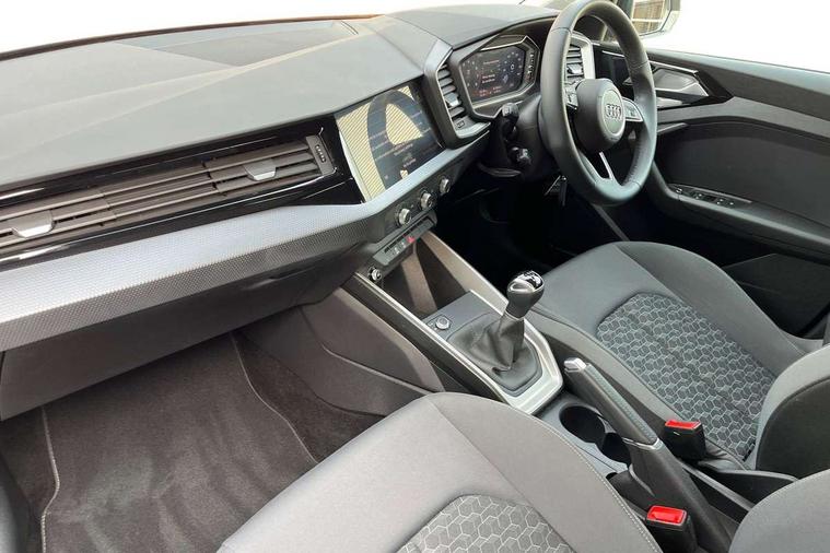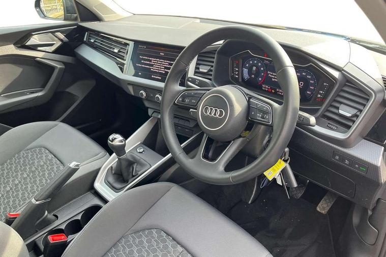 10.25" Digital instrument cluster display classis style instrument dials + speed, odometer, time, outside temperature, telephone menu + fuel level warning, Audi smartphone interface with connect compatible smartphone via USB directly MMI display + Nav, music, third party apps controlled via MMI controller, Automatic start/stop system, Bluetooth interface, Cruise control, Driver's information system, Electromechanical power steering, Emergency e-call, Lane departure warning system, Rear parking sensor, Service interval indicator, Speed limiter, Voice control system, Washer fluid level indicator, Dynamic suspension, 2 x USB type C connection points, 6 passive loudspeakers, DAB Digital radio, MMI radio plus with 10.1" colour MMI display screen and MMI touch, Auto dimming rear view mirror, Body coloured bumpers, Body coloured door mirrors, Electric front and rear windows, Electrically adjustable, heated, folding door mirrors with integrated LED side indicator, Front side air inlets in grained matt black and C frame in anthracite black, Heat insulating glass windscreen and side windows, Heated rear windscreen, High level LED brake light, LED headlights with LED rear lights + dynamic rear indicators + headlight adjustment and high beam, turning light + LED daytime running lights, Radiator grille and rear diffuser in matt anthracite black, Radiator protective grille frame in matt aluminium silver, Rain and light sensors, Rear fog lights, Rear side wing doors, Rear wiper, Side front spoiler lips in grained matt black, 12V socket in centre console with two cup holders, 3 rear seats with headrests, 3 seat bench in 2nd row, 3 spoke leather multifunction plus steering wheel, 40:60 Split folding rear seat or folded fully, Black front and rear floor mats, Door sill trims with aluminium inlay, Driver and passenger seat with manual height adjust with forward and backwards adjustment, Front head restraints, Front passenger seat, Grey cloth headlining, Height and reach adjustable steering wheel, ISOFIX child seat mounting for front passenger and outer rear seats including top tether attachment point of outer rear seats, Leather gear knob with aluminium trim, Leather handbrake grip, Luggage compartment light with front and rear reading lights, Manual air conditioning, Manually adjustable lumbar support in front seats, Novum cloth upholstery with front sport seats, Luggage compartment pack - A1, 3x3 point rear seatbelts, Audi pre-sense front with pedestrain and cyclist recognition, Brake assist function, Driver and front passenger airbag with front side and head airbags, Electronic Stability Control including ABS, EBD, ASR and EDL, Front passenger airbag deactivation switch, Hill hold assist, Manual rear child locks, Seatbelt height adjustment for front seats, Seatbelt monitoring, Tyre pressure warning light, Warning triangle and first aid kit, Anti theft alarm, Anti theft wheel bolts and loose wheel warning, Immobiliser, Remote central locking with 2 foldaway keys, Aluminium trim for control switches, air vents and digital instrument cluster, Black dashboard, Silver grey accent areas including air vents, door handle recesses and centre console in diamond paint finish, Slate grey inlays polygon structure in fine paint finish,