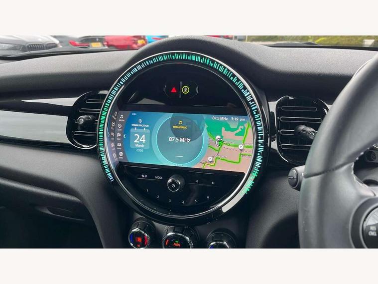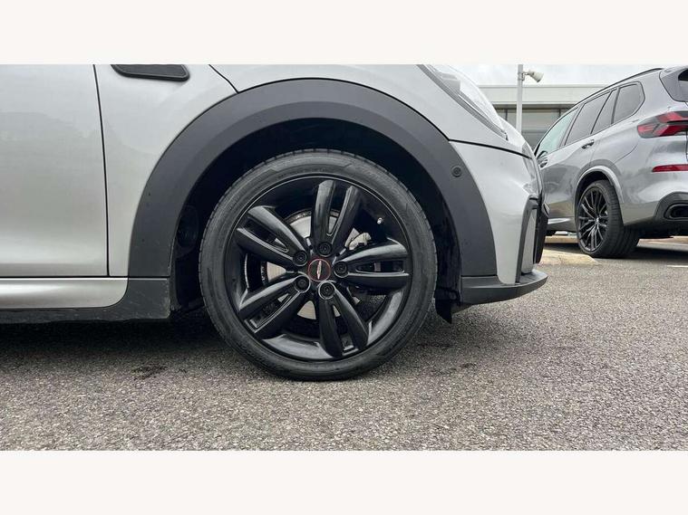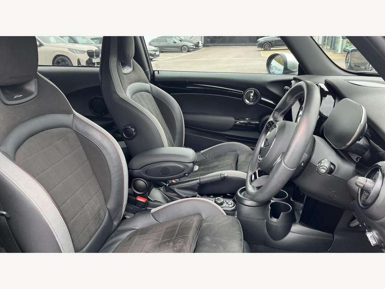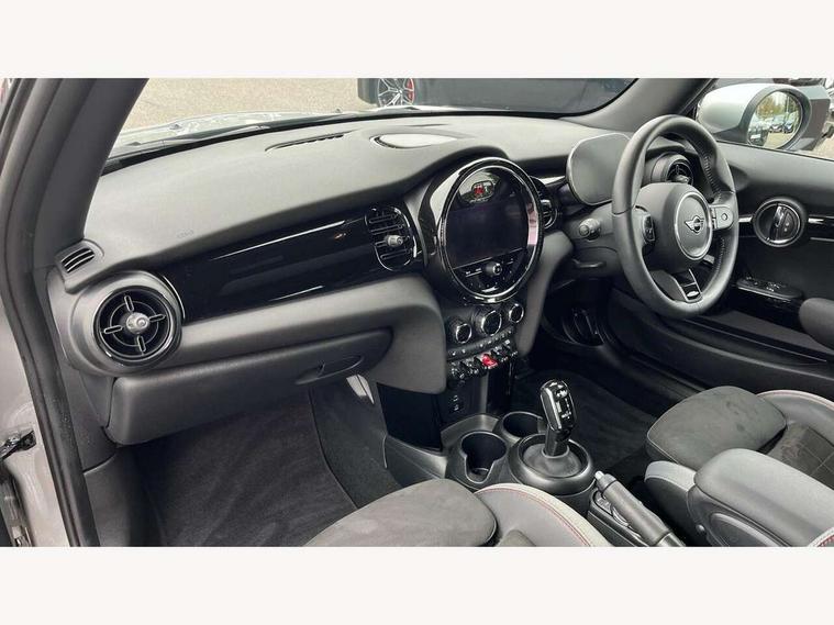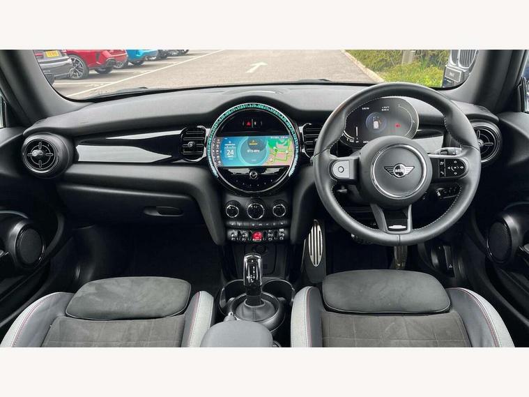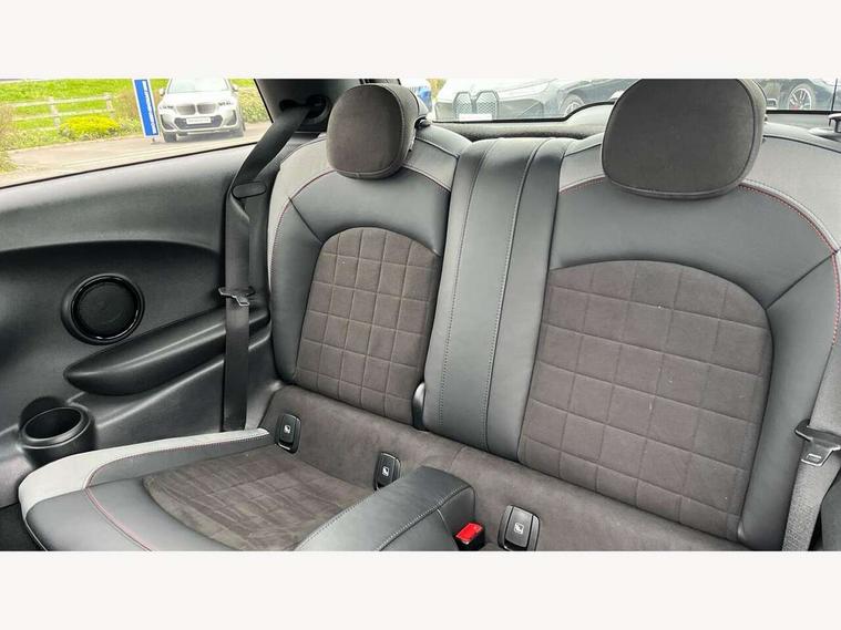 Apple CarPlay, Automatic start/stop function with brake energy recuperation, Compatible mobile phone bluetooth with audio streaming, Digital dashboard display, Electro-mechanical speed dependant steering assistance, Flexible car sharing preparation, Instrument cluster, Mini E-call, MINI TeleServices, On board computer, Service interval indicator, Double Vanos system, Fully variable valve control, High precision injection, Intelligent adaptive suspension, Performance Control, Steptronic transmission with double clutch, 4 speakers in front door trims and underneath front seats, 8.8" touchscreen with LED ring, FM tuner and DAB digital radio, 3rd brake light, Automatic headlight activation switch, Dynamic brake lights, Electric front windows, Heated rear window, Heated windscreen washer jets, JCW Aerodynamic kit - Front and rear bumpers with sporty JCW styling and part-painted side sills with MINI John Cooper Works door sill finishers, John Cooper Works rear spoiler, LED headlight with closed ring and daytime driving lights, Metal door sill strips with MINI imprint, Model logo Cooper on right of tailgate, Rain sensor window wipers, Rear fog lights, Rear LED lights with union jack design, Rear window wiper, Side scuttle panel with integrated indicator, Sun/heat protection glass, White indicator lenses, 12V Accessory socket in centre console, 2 seat bench in 2nd row, 4 lashing eyes in luggage compartment, 60/40 split folding rear seat, Anthracite headliner including grab handles and clothes hooks, Carbon black colour line - Knee roll and door armrest, Chrome interior highlights, Cupholders, Front and rear isofix with front passenger airbag deactivation, Front floor mats in velour, Glove compartment, Height and length steering column adjustment, Integrated headrests, adjustable thigh support for seats, Interior lighting with 12 different colours across the dashboard, underneath door bezel with illuminated laser-engraved design on central display, Leatherette gearshift lever and handbrake gaiters, LED reading lights, vanity mirror lights, front foot well light and spotlight on front seats, Mechanical seat adjustment - forward/back & backrest for front seats and driver seat height adjust, Multifunction steering wheel, Passenger seat height adjuster, Single front passenger seat, Storage compartments in doors, Sunvisors with vanity mirrors, Walknappa leather steering wheel with grey seam and John Cooper Works badge on Piano Black lower steering wheel spoke, Driving assistant pack - Mini Hatchback, Piano black exterior pack - Mini Hatchback Cooper, Premium pack - Hatchback, 3 point seatbelts on all four seats, 6 Airbags - front, side, head and seat belt tensioners, Anti-lock braking system (ABS), DSC - Dynamic Stability Control, Front and rear disc brakes, Single tone fanfare horn, Tyre pressure monitoring system, Alarm system with tilt sensor, monitoring doors, bonnet interior and tailgate, Electronic vehicle immobiliser, Start/stop toggle with keyless go, Piano black interior trim, Tool kit,