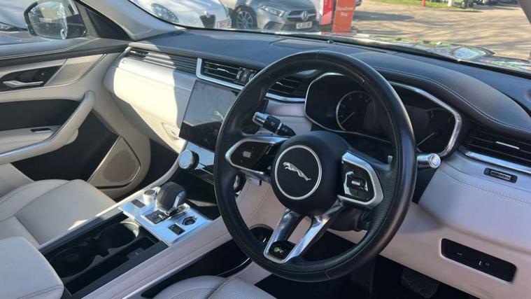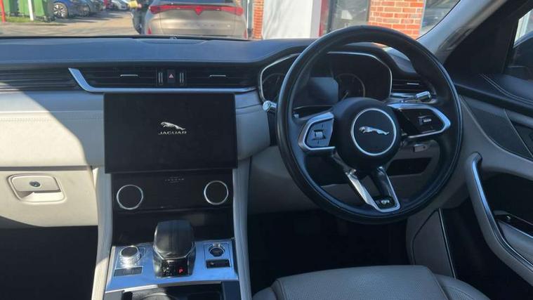 11.4" touchscreen, 3D surround camera, Android Auto, Apple car play, Bluetooth connectivity, Driver alert system, Driver condition monitor, Eco driving style assistant, Electric power assisted steering, InControl remote, Jaguar Toggle shift selector, Lane departure warning system, Lane keep assist, Outside temperature gauge, Personalisation profile management, Pivi pro connected navigation system with app interface and media storage, Pro services and wifi hotspot, Push button starter, Service interval indicator, Speed proportional steering, Start up sequence with movement in dials and lighting, Traffic sign recognition with adaptive speed limiter, Trip computer, Voice control system, 8 speed automatic transmission, All terrain progress control, All Wheel Drive (AWD), Open differential with torque vectoring by braking, AM/FM radio, Bluetooth streaming, DAB Radio (Digital Audio Broadcasting), Dynamic volume control, InControl apps, InControl protect, iPod integration, 3 flash lane change indicators, Approach Illumination, Auto dimming rear view mirror, Automatic headlights, Body colour door mirrors, Electric windows with one touch open/close and anti trap, F-Pace badge, Green tinted glass, Heated front windscreen + heated washer jets, Heated rear window with timer, Jaguar script and leaper, LED tail lights, Non acoustic front windscreen, R Dynamic badge on side door, Rain sensor windscreen wipers, Rear fog lights, Rear metal tread plates, Rear wiper, Trailer stability assist, Variable front intermittent wipers, 12V power point front, 3 rear headrests, Air distribution speed, Cabin lighting, Centre armrest console, Centre console with side storage, Door sill tread plates, Fold flat front seats, Front centre armrest with storage compartment, Front door storage space, Glovebox finisher with jaguar script, Heated steering wheel, Hooks in loadspace, Illuminated glovebox, Interior front door handles with separate locking switches, ISOFIX on outer rear seats, Jaguar sense, Luggage tie downs in loadspace, Mist sensing, Multifunction steering wheel, Overhead lighting console, Overhead stowage for sunglasses, Passive front head restraints, Premium carpet mats, R-Dynamic branded leather steering wheel, Rear air vents, Rear armrest with twin cupholders, Rear centre headrest, Rear door storage space, Reversible boot floor, Satin chrome gearshift paddles, Shopping bag hook, Sunvisors with illuminated vanity mirrors, Twin front cupholders with cover, Online Pack with data plan - F-Pace, 355mm front brakes and 325mm rear brakes, 3x3 point rear seatbelts, ABS, All surface progress control (ASPC), Brake pad warning light, DSC - Dynamic Stability Control, Electric parking brake (EPB), Front airbags with passenger seat occupant detector, Front and rear seatbelt reminder, Front side airbags, Full length side window curtain airbag, Hill launch assist, Power operated child locks, Torque vectoring brake, Traction control, Tyre pressure monitoring system, Immobiliser, Keyless start, Locking wheel nuts, Perimeter alarm, Remote central locking, Valet mode,