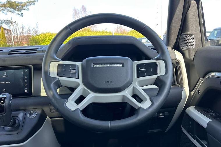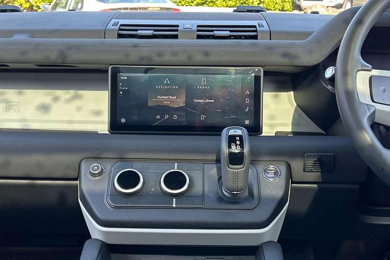 360 degree parking aid, 3D Surround Camera with 360 View, 180 Rear View, Front Traffic Detection, Forward Vehicle Guidance, Tow Hitch Assist and clear sight Ground View, Adaptive cruise control, Android Auto, Apple CarPlay, Assisted tailgate with soft close, Blind spot assist, Bluetooth system, Brake pad wear indicator, Clear exit monitor, Connected navigation pro, Driver condition monitor, Electric power assisted steering (EPAS), Interactive driver display, Lane keep assist, Push button start, Rear traffic monitor, Traffic sign recognition with adaptive speed limiter, Trip computer, Wade Sensing, 8 speed automatic transmission, All wheel drive system, Twin speed transfer box, DAB Radio (Digital Audio Broadcasting), Pivi pro connected, Automatic headlight levelling, Automatic headlights, Black exposed rear recovery eyes, Centre high mounted stop light, Electric heated/power fold door mirrors with approach lights and auto dimming driver side, Electric windows with one touch open/close and anti-trap, Follow me home lighting, Heated rear window with timer, Heated windscreen, LED tail lights, Privacy glass, Puddle lights, Rain sensing windscreen wipers, Rear fog lights, Rear side wing doors, Rear wiper, Side hinged tailgate, Trailer stability assist, X-Dynamic badge, 12V power socket in loadspace, 3 seat bench in 2nd row, Alpine lights, Durable rubber cabin flooring, Durable rubber loadspace flooring, Footwell lights, Front passenger isofix child seat attachment, Loadspace cover, Loadspace Hook, Multifunction steering wheel, Overhead stowage for sunglasses, Premium cabin lighting, Rear headrests, Rear ISOFIX, Rear reading lights, Single front passenger seat, Standard seat configuration, Storage glovebox, Sunvisors with illuminated vanity mirrors, Online pack with data plan - Defender, 5 x 3 point seatbelts, ABS, Brake hold function, Cornering brake control (CBC), Customer configurable autolock, DSC - Dynamic Stability Control, EBD - Electronic brakeforce distribution, Electric parking brake (EPB), Emergency brake assist, Emergency braking, ESP + traction control, Front airbags with passenger seat occupant detector, HDC - Hill descent control, Hill launch assist, Low traction launch, Power operated child locks, Remote for (e-Call, Optimised assistance call, InControl app, Climate, beep and flash and door), RSC - Roll stability control, Seat belt reminder, TPMS (Tyre pressure monitoring system), Alarm, Immobiliser, Intrusion sensor, Keyless entry, Locking wheel nuts,