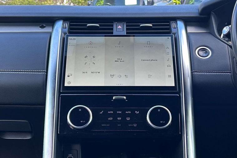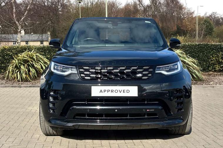 11.4" touchscreen, 3D surround camera, Adaptive cruise control, Android Auto, Apple car play, Blind spot assist, Driver condition monitor, Electric power assisted steering (EPAS), Emergency services call system, Front and rear parking aid, Lane keep assist, Power inner tailgate, Push button start, Rear collision monitor, Rear traffic monitor, Remote, Remote boot release, Service interval indicator, Speed proportional steering, Sportshift selector, Stop/start system, Traffic sign recognition with adaptive speed limiter, Trip computer, Wade Sensing, Adaptive dynamics, Dynamic stability control, Electronic air suspension, Front axle open differential, Digital Audio Broadcast radio-DAB, Dynamic volume control, Meridian surround sound system - 14 speaker + subwoofer, 18 channel amplifier, 700W, Pivi pro connected, USB/aux input socket, Acoustic laminated windscreen, Animated directional indicators, Auto dimming interior rear view mirror, Automatic headlight levelling, Automatic headlights, Body colour bumpers, Body colour door handles, Centre high mounted stop light, D300 badge, Electric heated/power fold memory door mirrors with approach lights and auto dimming driver side, Electric windows with one touch open/close and anti-trap, Heated rear window, Heated windscreen, LED darkend tail lights, Matrix LED headlights with signature DRL, Metal treadplates with R-Dynamic branding, Narvik black Discovery script, Privacy glass, Puddle lights, Rain sensing windscreen wipers, Rear fog lights, Rear side wing doors, Rear wash/wipe, Trailer stability assist, Variable intermittent wiper, 12V power sockets, 12V USB charging socket in loadspace, 2 seat bench in 3rd row, 3 seat bench in 2nd row, Central hinged twin lidded storage, Ebony morzine headlining, Electric adjustable steering column, First and second row door bins, Footwell lights, Front and rear 12V with front USB, Front passenger seat isofix location point, In-facia storage, Isofix child seat preparation for front passenger seat, Loadspace cover, Loadspace Hook, Loadspace light, Lockable glovebox, Lower centre console storage, Luggage tie downs in loadspace, Multi function steering wheel, Overhead lighting console, Premium cabin lighting, Premium carpet mats, Rear ISOFIX, Shopping bag hook, Single front passenger seat, Storage glovebox, Sunvisors with illuminated vanity mirrors, Third row storage, Twin front cupholders with cover, USB with 12V socket in centre console, Online pack with data plan - Discovery, R-Dynamic black exterior pack - Discovery, 3x3 point rear seatbelts, Anti-lock braking system (ABS), Brake pre-fill technology, Cornering brake control, Curtain airbags, Customer configurable autolock, Driver and passenger airbags, EBD - Electronic brakeforce distribution, Electronic traction control, Emergency brake assist, Emergency braking, ESP, Front side airbags, Gradient acceleration control, Hill descent control, Hill launch assist, Power operated child locks, Rear airbags, Roll stability control, Seat belt reminder, Torque vectoring brake, Tyre pressure monitoring system, Immobiliser, Intrusion sensor, Keyless entry, Locking wheel nuts, Remote central locking, All terrain tyres,