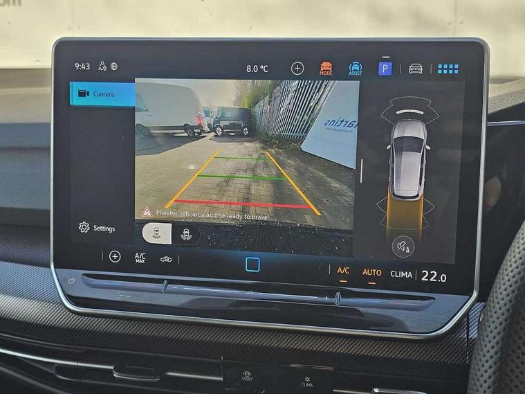 Activated carbon canister, Adaptive cruise control (ACC), Advanced driver attention and drowsiness monitor, Dynamic road sign display, Dynamic steering, E-Sim card for online connectivity, eCall emergency call system, Multi-color Digital cockpit pro, selection of different info profile possible, Multifunction front facing camera for distance control, Navigation system, Oncoming vehicle braking when turning including swerve support, Preparation for light assist system, Speed limiter, Speedo, rev counter, electronic odometer, trip, service interval display, exterior temperature and fuel gauge, Traffic jam assist, Voice enhancer and voice control, Warning signal and warning light for front and rear seatbelts not fastened, We connect plus preparation, We connect preparation, Wireless app connect, Petrol Particulate Filter, Start-stop system with battery regeneration (recuperation - energy recovery during braking), XDS electronic differential lock for improved traction and handling, 2 USB C ports in front, 2 USB charging sockets on the centre console in the rear charging capacity upto 45W, Comfort telephony + wireless charging, without wireless aerial connection, Digital radio reception (DAB), Diversity antenna for FM reception, Gaming platform via car app, Infotainment system with 12.9" display, Mobile phone interface with inductive charging feature, 3rd brake light, Auto headlights, Automatic headlamp activation with Coming home and Leaving home feature, Body colored bumpers in R-Line style, Body colour door handles, Exterior ambient lighting with illuminated door handles, Exterior mirrors convex on the left and aspherical on the right, Front and rear electric windows, Heat insulating windshield made of laminated glass, LED daytime running lights, Rear exhaust tailpipe, Rear fog light on one side and reversing lights on both sides, Rear side wing doors, Rear windscreen washer and wiper with interval delay, Remote electrically foldable door mirrors, puddle lights and reverse activated passenger's door mirror, Welcome light with surround lighting, 12V socket in front centre console, 12V socket in luggage compartment, 3 rear head restraints, 3 seat bench in 2nd row, Ambient lighting with 30 colour including LED light unit in front footwell with selectable light colour, Brushed stainless steel pedals, Carpet mats, front and rear, Chrome plated radiator grille inserts, air vent surrounds and light switch surrounds, Front centre armrest, Integrated front head restraints, ISOFIX anchors for child seats on outer rear bench seats and on front passanger seat compatible for i-Size, Leather gearshift handle, Luggage compartment lighting, Premium sports seats in front, Rear cupholder and loadthough, Single front passenger seat, Soul black instrument panel, Split folding backrest with centre armrest and unsplit rear seat bench, Storm grey roof lining, Sun visors with illuminated vanity mirrors, 3 point height adj front seatbelts + pretensioners, 3 rear three point seatbelts, ABS, Autonomous emergency braking front assist with pedestrian and cyclist monitoring, Child locks on rear doors, Driver and front passenger airbag with front passenger airbag deactivation, Electronic parking brake with auto hold, ESC (Electronic Stability Control), Extended pedestrian protection measures, Rear disc brakes, Two tone horn, Tyre pressure loss indicator, Volkswagen roadside assistance, Anti theft wheel bolts, Preparation for alcohol interlock, Decorative inserts carbon grey for dashboard and front door trim panels,