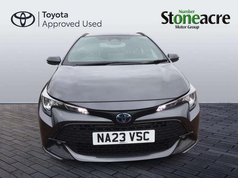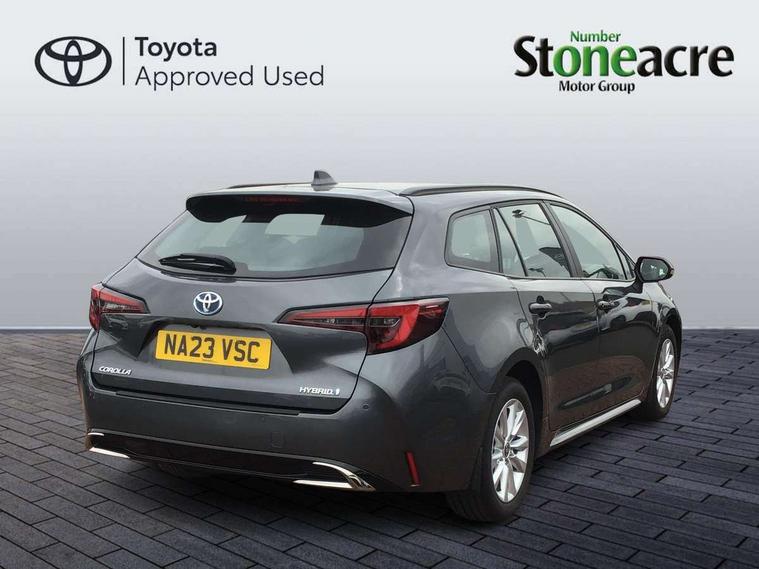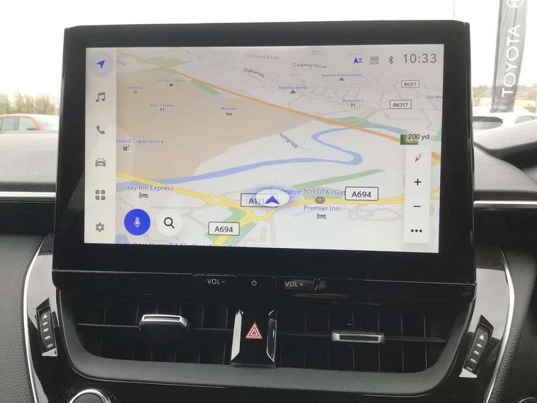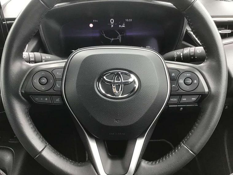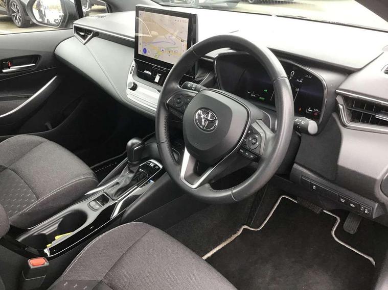 10.5" Multimedia display screen, Attention assist, Bluetooth telephone connectivity, Connected car functionality upgrade, tracker, remote status and e-care, Drive mode select (Eco, Normal), E-call, Electrically assisted power steering, EV drive indicator, Front and rear parking sensors with auto brake, Full Digital 12.3" TFT Digital Combimeter, Key reminder warning, Lane Departure Alert (LDA) switch on steering wheel, Memory on adjustable speed limiter, MyT connected services, Proactive driving assist (PDA), Reversing camera, Smart entry and push button start, Smartphone integration with Apple CarPlay and wired android auto, Tailgate, Toyota remote services, Toyota smart connect navigation, Wireless charger, Gasoline particulate filter, Vehicle Stability Control (VSC), 6 speakers, AM/FM radio, DAB Digital radio, Front USB-C in dashboard, Smart voice assist/ Voice recognition, USB and Aux in connectors + 12V front outlet, Anti-jam protection on power windows, Auto up and down function on all power windows, Automatic headlights with high beam assist, Black centre and side air vents, Black meshed front grille, Black roof rails, Black toyota logo in front, Body coloured bumpers, Body coloured door mirrors, Body coloured front spoiler, Body coloured outside door handles, Body coloured rear under guard, COROLLA alloy door scuff plates, Follow me home headlights, LED daytime running lights, LED front fog lights, LED High mounted stop light, LED multi beam headlights, LED multi reflector in headlights, LED rear combi lights with LED lightguide, Manual day/night rear view mirror, Manual headlight levelling system, New grille pattern, Noise reduction layer on front windows, Noise reduction layer on windscreen, Piano black diffuser, Power adjustable heated door mirrors, Power front windows, Power rear windows, Rain sensor, Rear side wing doors, Rear window defogger, Rear window wiper, Roof spoiler, Satin chrome insert on front air vents, Satin chrome insert on front door assist grips, Satin chrome inserts on rear passenger air vents, Shark fin antenna, Time adjustment on intermittent wiper, Turning signal integrated indicators in door mirrors, Unique lower skirt, Unique side rocker with black insert, UV-filter on driver and passenger windows, 12v power outlet - luggage side, 2 Shopping bag hooks in luggage compartment, 3 rear headrests, 3 seat bench in 2nd row, 3 spoke leather steering wheel with satin insert + gear knob, 4 tie down hooks in luggage compartment, 60/40 split folding rear seat, Adaptive cruise control (ACC) switch on steering wheel, Adjustable speed limiter switch on steering wheel, Audio, multimedia and telephone switches on steering wheel, Black armrest on centre console box, Black gear shift console, Boot light, Boot underfloor storage, Driver and front passenger personal light, Driver and passenger assist grip, Driver and passenger sun visor with mirror and light, Dual level boot floor, Dual sided deck board in boot, Dual zone automatic air conditioning with ECO mode switch, Fabric upholstery, Front and rear cup and bottle holders, Front and rear door pockets, Front head restraints, Front passenger seat, Front sliding fabric armrest, Heated seats, Illuminated entry system in room lamp, ISOFIX seat fixing (2 fixings on rear outer seats), Leather gear shift with satin chrome on gear shift console, Manual height adjustable for driver and front passenger seat, Manually tilt with sliding driver and front passenger seat, Passenger seat back pocket, Pollen filter, Power adjustable lumbar support on driver seat, Power window switches with satin chrome inserts, Rear armrest with 2 cupholders, Rear passenger coat hooks (2), Rear passenger personal lights, Remote air conditioning, Retractable tonneau cover with luggage partition net, Satin chrome inside door handles, Satin chrome surround on heater control panel, Satin chrome surround on speedometer, Side storage in boot, Sliding armrest on centre console box, Slow opening glovebox with lights, Textile floor mats, Tilt/telescopic steering column, Tonneau cover with under floor storage, Toyota easy flat system, Voice recognition switch on steering wheel, Whiplash Injury Lessening (WIL) feature (active headrest) for seats, Toyota safety sense 3 pack - Corolla, 3x3 point rear seatbelts, Adjustable driver and front passenger seat belt extender to top anchor point, Anti lock braking system + Electronic brake force distribution, Brake assist function, Child locks on rear doors, Downhill Assist Control (DAC), Electronic parking brake, Emergency brake light signal (EBS), Front passenger airbag on/off switch, Front seatbelt reminder, HAC - Hill start assist control, Rear seat belt reminder, Seatbelt pretensioners and force limiters, Supplemental restraint system (SRS) 7 airbags - dual driver, dual side curtain, side impact and driver knee airbags, Traction control, Tyre pressure warning system, Acoustic vehicle alert system (AVAS), Alarm with motion sensor and immobilizer, Power passenger window lock, Remote central locking + deadlocks, Satin chrome dash trim, Soft touch texture on upper dashboard, Stitching on lower dashboard, 16" 5 double spoke alloy wheels, Tyre repair kit, Unique wheel finish with red wheel cap,