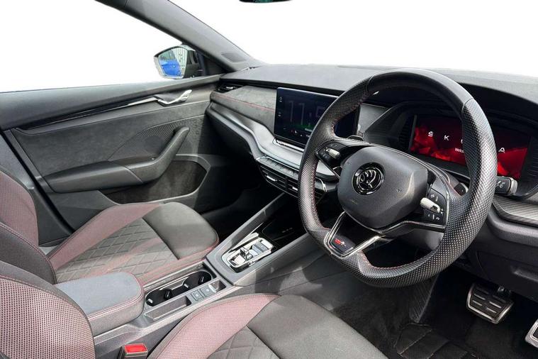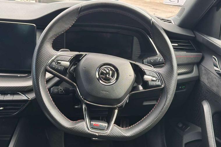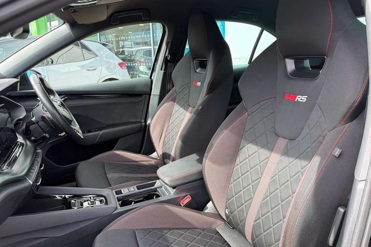 1x USB Type C port in rear view mirror (charging only), 2x USB Type C ports in rear of front centre armrest (charging only), Bluetooth system, Columbus satellite navigation with 10" touchscreen display, Driver fatigue sensor, eCall emergency system, Front and rear parking sensors with manoeuvre assist, Front assist system, Progressive dynamic steering, Smartlink (includes android auto and mirrorlink), Speed limiter, Turn Assist, Virtual Cockpit - 10.25" digital display, Voice control system, Wireless SmartLink for Apple Car Play, Electronically controlled limited slip differential, Front and rear stabilizers, 2x USB Type C ports (for charging and data transfer), 8 Speakers, DAB Digital radio, Aero front windscreen wipers with intermittent function, Auto dimming rear view mirror, Body colour door handles, Chrome exhaust tailpipes, Door sills with vRS logo, Electric front and rear windows, Exterior gloss black sports styling including front grille, side strip, window surrounds, door mirror and badging, Full LED Matrix headlights with AFS and cornering front fog lights, Headlight washers, Heated rear windscreen, High level third brake light, Ice scraper in fuel cap, LED daytime running lights, Rain and light sensors, Rear fog light on one side, Rear privacy glass, Rear side wing doors, vRS bumpers and lip spoiler, 3 rear headrests, 3 seat bench in 2nd row, 4 foldable roof handles, Aluminium pedals, Black headlining, Black microsuede padded dash panel with red contrast stitching, Chrome inner door handles, Front centre armrest, Front head restraints, Heated front seats, Illuminated glovebox, Leather trimmed gearshift lever, Luggage compartment lighting x1 light, Mechanical rear seat release, Parcel shelf - folding, Single front passenger seat, Sunglasses storage, Textile floor mat set, Three spoke leather sports multifunction steering wheel with paddles, Ticket holder, Umbrella in door panel, Unsplit rear bench seat and split folding backrest, LED interior light pack - Octavia, 3 point front/outer rear seatbelts+pre-tensioners, Alarm with interior monitoring, tilt sensor and back up horn, Automatic door unlocking in case of crash, Automatic fuel cut off in case of crash, Automatic warning lights in case of emergency braking, Curtain airbags and front side airbags, Driver and front passenger airbags, Drivers knee airbag, Electronic parking brake, Emergency call and proactive services, ESC including ABS, EBV, MSR, ASR, EDS, HBA, DSR, Front and rear disc brakes, Front central airbag, Hill hold control, Hill start assist, ISOFIX on front passenger seat and outer rear seats, Manual rear child locks, Passenger airbag deactivate switch, Red brake calipers, Two tone horn, Tyre pressure monitor, Visual and acoustic seat belt reminder, Warning reflectors in front door, Door locks with immobiliser, Keyless entry and start/stop including rear doors, Remote central locking, Carbon optic decorative inserts, Gloss black air vent surrounds, 19" Altair anthracite alloy wheels,