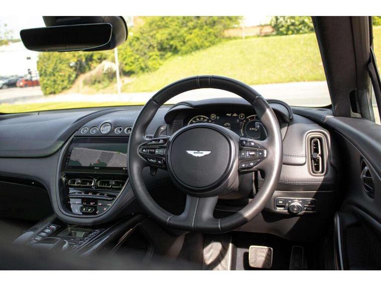 10.25" TFT centre display, 12.3" TFT instrument display, Adaptive cruise control, Adaptive drive modes, Apple car play/Android Auto, Blind spot monitoring, Bluetooth telephone connectivity, Brake pad wear indicator, Electric power assisted steering (EPAS), Forward collision warning, Front parking aid with visual indicator, Lane change warning, Lane departure warning system (LDW), Lane keep assist, Outside temperature display, Rear crossing traffic warning, Rear parking aid with visual indicator, Rotary dials, Rotary infotainment system interface, Satellite navigation system, SOS emergency call button, Speed limiter, Stop/start system, Surround camera system with deploying rear camera, Traffic sign recognition, Voice control system, 9 speed automatic transmission, Active centre transfer case, Adaptive triple chamber air suspension, All Wheel Drive (AWD), Battery conditioning connector, Electric active roll control, Electric limited slip rear differential, Electronic adaptive damping system, AM/FM radio, Aston martin premium audio, Bluetooth audio streaming, DAB Digital radio, SD card slot, USB port, Acoustic laminated front windows, Active rear brake lights, Approach Illumination, Auto dimming interior rear view mirror, Automatic headlights, Automatic high beam - AHB, Bi LED headlights, Body colour mirror caps, Electric windows, Fixed panoramic glass sunroof, Heat insulating glass, Heated rear window, LED centre high mounted stop light, LED daytime running lights, LED rear fog light, Matte black mesh bonnet vents, Power foldback door mirrors, Rain sensing windscreen wipers, Twin exhaust tailpipe, 12V power sockets, 40:20:40 split folding rear seats, Ambient lighting, Automatic climate control, Courtesy Light, Front and rear door pockets, Front centre console storage cover, Front head restraints, Glovebox with electric locking, Isofix/I size rear outer, Load rails in load space, Load tie downs in load space, Lower front console storage, Map pocket on front seat storage, Rear head restraints, Stainless steel sill protector in load space, Twin cupholders in front and rear, Twin front centre armrest, Twin sunvisors with illuminated vanity mirrors, 3x3 point rear seatbelts, Airbags - Driver and front passenger and knee, Anti theft locking wheel bolts, Anti-lock braking system (ABS), Autonomous emergency braking, Door exit warning, Electric parking brake (EPB), Emergency brake assist, ESC (Electronic Stability Control), Front thorax airbags/Side curtain airbags, HDC - Hill descent control, High performance braking system, Hill start assist, Intelligent wet brake control, Rear thorax airbags, RSC - Roll stability control, Seatbelt pre-tensioners, Seatbelt status indicator, Torque vectoring brake, Traction control, Tyre pressure monitoring system, Warning triangle, Alarm/immobiliser, Keyless entry with start/stop button, Remote central locking,