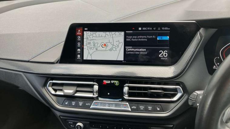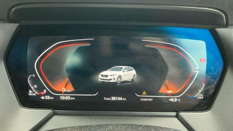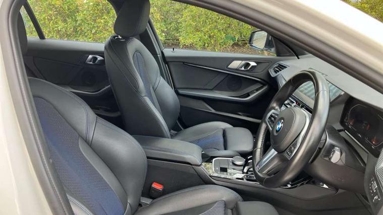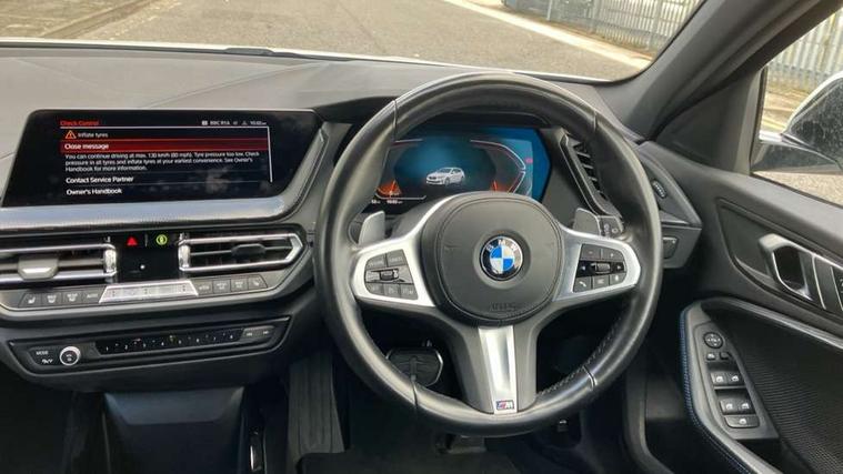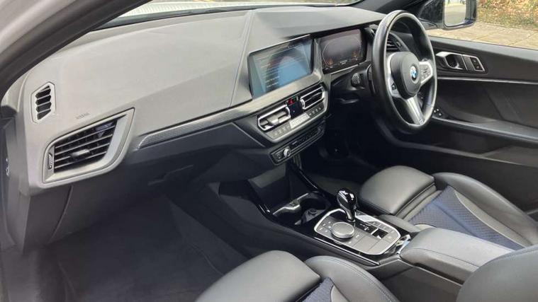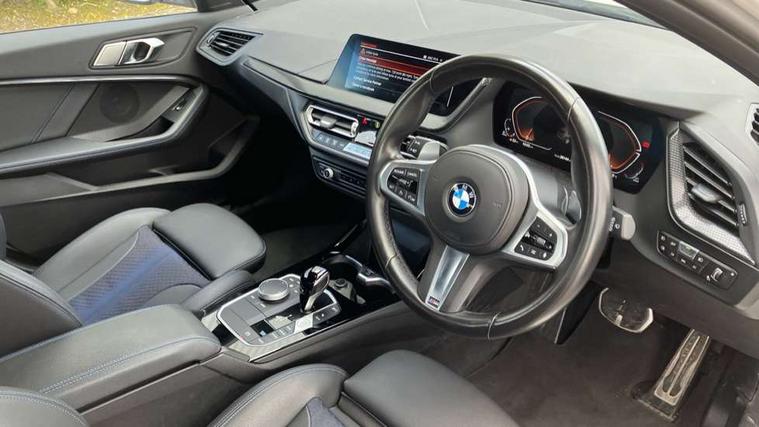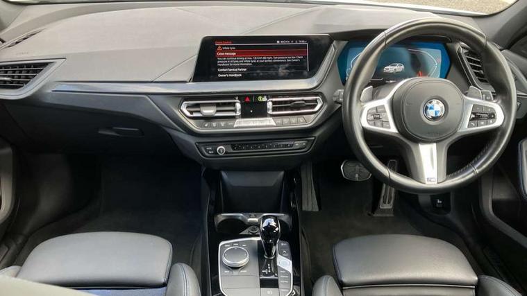 Active guard plus, Attentiveness assist, BMW ConnectedDrive online services, BMW Teleservices, Characteristic map controlled oil pump system, Check Control warning system for monitoring of lights and door/luggage compartment open warning, Cruise control with brake assist, Eco pro mode, Front axle single joint with specific axle kinematics to minimise drive influences on steering + provide increased rigidity agile driving behaviour, Integrated owners handbook, Lane departure warning system, Oil sensor for level and grade, On board computer, Optimum shift indicator, Personal Profile, Pull away assistant, Rigidly mounted rear subframe - Multi link construction with separate spring / damper configuration and excellent driving characteristics, Speed limit Info including no-overtaking indicator, Speed limiter, AdBlue tank, Aluminium lightweight construction, Anti roll bar front and rear, Balancer shaft, Diesel particulate filter, DOHC valve train with two overhead camshafts, Drive Performance Control, Eight speed sport automatic transmission with gearshift paddle switches, Electronic differential lock, Single turbo charger with variable vane geometry, Twin tube gas filled shock absorbers with degressive characteristic curve, Two-stage charging, DAB Digital radio, Auto dimming rear view mirror, Automatic headlight beam throw control, Automatic windscreen wipers and automatic headlight, Body colour door handles, Body colour mirror caps, Body colour roof trims, Chrome 'M' logo side designation, Chrome exhaust twin tailpipes round 90mm in left and right split, Chrome kidney grille frame with Satin Aluminium struts, Direction indicator side lights in exterior mirrors, Fading support, Folding side mirrors with auto dimming/folding wing mirrors with auto dimming, Follow me home headlights, Front and rear bumper system with replaceable deformation elements, Front and rear electric windows with open and close fingertip control, anti trap facility and comfort closing, Front door sill finishers in black plastic with M designation in metallic look, Green tinted heat protection glazing, Heated, electrically adjustable exterior mirror aspheric on driver side, convex on passenger side, High gloss shadowline window frame, Recess cover mirror frames and B/C pillar embelisher trim, High level third brake light, Integrated front windscreen with washer jets, LED daytime running lights, LED eyebrow turn indicators, LED front fog lights, LED Headlights, Lightweight engineering, Matt black air guide grilles, Matt black wheel arch trim, Model designation on electric bootlid, Nearside reverse light in rear light cluster, Preparation for high beam assistant, Rear fog lights, Rear side wing doors, Rear window wiper, Shark fin antenna, Trailer stabilisation logic, Visible VIN plate, Welcome lighting, 12V power socket in front centre console with blanking plug, 3 rear seat head restraints, 3 seat bench in 2nd row, 3 spoke sports leather steering wheel with black leather and stitching, pearl chrome decorative finish, specific M Badge, Anthracite headlining, Black boot net with lashing eyes, Cargo function on 2nd seat row, Child seat ISOFIX attachment for two outer rear seats and front passenger seat with anchorage points, Conditioned based service, Driver and front passenger seat heating, Folding rear clothes hook, Four grab handles integrated in roof lining, Front and rear door pockets with bottle holders, Front and rear side armrest integrated into door trim, Front armrest, Front sports seats, Glove compartment, Height adjustable front head restraints, Luggage compartment for bag hooks on left and right, foldable luggage compartment liner and four lashing eyelets, Manual adjust steering wheel, Multi-function controls for steering wheel, Single front passenger seat, Storage compartment in centre console, Sun visors with vanity mirrors and insert tab, Two front centre console cupholders, Two zone automatic air conditioning, Velour floor mats, Additional interior lighting pack - 1 Series, BMW live cockpit professional pack- 1 Series, Connected pack professional - 1 Series, Interior lights pack - 1 Series, M Sport exterior styling aerodynamics pack - 1 Series, 2 tone horn, 3 point seatbelts on all seats, front pyrotechnic belt tensioners, stopper and belt force limiters, rear coded belt buckles, Airbags - Front driver/passenger, front and rear curtain head protection, front side, manual deactivation of front passenger airbag, Anti lock braking system (ABS) with brake assist, BMW emergency call, Brake drying, Braking readiness, Child proof locking system in rear door, City braking function, Comfort modes, Cornering brake control, Crash sensor activating central locking release, hazard warning lights, fuel cut off, interior lighting + activation of safety battery terminal clamp, Driver and front passenger seat belt security check, Dynamic stability control + (DSC+), Dynamic Traction Control - DTC, Electrically operated hand brake including automatic hold function, Front and rear disc brakes, Seatbelt warning, Side impact protection, Tyre pressure monitoring system, Warning triangle and first aid kit, Central locking switch for all doors, fuel filler cap and luggage compartment, Deadlocking function system to all doors, Drive away locking system on all doors and luggage compartment, Incorrect fuel protection system, Locking wheel bolts, Remote control with integrated key with High-gloss Black inlay and M designation and 1 button for open/ close lock, window, open luggage compartment, Start/stop button illuminated in centre console with keyless engine start and auto start stop deactivation button, Thatcham Cat.1 alarm and immobiliser, Wheel slip limitation close to the actuator (ARB), Contrast stitching on instrument panel, Electrically powered 12V compressor, Reduced rolling resistance tyres,