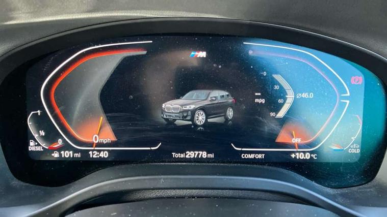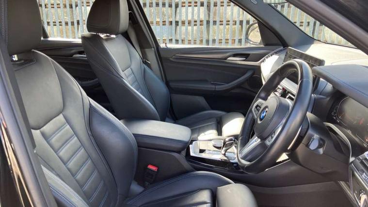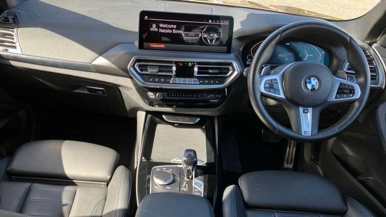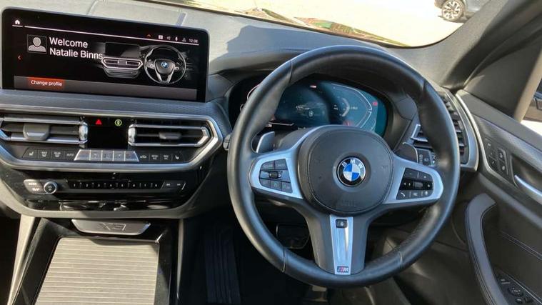 Active Guard, Attentiveness assist, BMW Live Cockpit Professional nav system including 12.3" instrument display + 12.3 high resolution control display, BMW Online services, BMW Teleservices, Brake pad wear indicator in front and rear, Check Control warning system for monitoring of lights and door/luggage compartment open warning, Condition based service - BMW service history, electronic service booklet, integrated owner's handbook, Connected drive services, Cruise control with brake function + speed limiter, Electric boot lid, Front/rear Parking distance control, iDrive Controller with 8 favourite buttons, Instrument cluster with speedometer with mph readout, tachometer, fuel gauge and oil temperature gauge, Lights on warning by audio warning signal when ignition is switched off, Oil sensor for level and grade, warning by check control system, On board computer - average speed+fuel consumption, service interval, clock/date, odometer/trip meter, outside temperature display and ice warning, Optimum shift indicator, Personal Profile - automatic lock when driving away selectable, Run flat indicator, Stop/start system, Variable sports power steering with drive performance control Sport+ mode, Automatic transmission with gearshift paddles, Diesel particulate filter, Incorrect fuelling protection, Larger capacity fuel tank, M sport suspension, Multi-link rear suspension, Performance Control, BMW professional radio/CD/MP3, DAB tuner, Acoustic glazing, Automatic windscreen wipers and automatic headlight, Black finish on B pillars, Body colour door handles, Body colour electric adjust heated aspherical door mirrors, Body colour roof mouldings, Body coloured bumpers, Direction indicator, side repeaters, integrated in exterior mirrors, Dynamic brake lights, Exhaust tailpipes - dual, round, split left and right with chrome finisher, Fingertip control / anti-trap function on electric window, Folding wing mirrors with auto dimming, Follow me home headlights, Front and rear bumper system with replaceable deformation elements, Front and rear electric windows, Gloss chrome tailpipes finishers, Green tinted heat insulating glass, Heated windscreen washer jets, High beam assistant, High gloss black shadow line roof rails, High gloss shadowline exterior trim in decorative moulding side frame/recess cover/guide rail/B, C pillars/mirror frame and triangle with mirror base, High level 3rd brake light incorporating LED Technology, Interior rear view electrochromatic mirror with automatic anti dazzle function, LED tail lights, Lightweight engineering, M aerodynamic bodystyling, M Sport entry door sill strips, Model designation, Rear side wing doors, Rear wing door, Rear wiper, Shark fin antenna, Side exterior M designation badges, Visible VIN plate, Welcome lighting, Windscreen wipers with adjustable interval, 12V power socket in front centre console, 3 rear headrests, 3 seat bench in 2nd row, 3 zone automatic air conditioning, 4 lashing points to secure luggage, 40:20:40 split folding rear seat with loading system, Ambient lighting, Anthracite headlining, Automatic interior light when door is opened/ignition switched off or via remote key, Driver seat backrest width adjustment, Floor mats in velour, Foldable storage floor with compartment, Four grab handles integrated in roof lining, Front and rear bottle holders integrated into door trim storage compartments, Front and rear side armrests integrated into door trim, Front centre armrest with storage compartment, Front footwell lights, Front head restraints, Front passenger seat, Front sports seats, Front/rear courtesy lights with soft on/off dimming, Front/rear reading lights, Heated front seats, Isofix rear child seat preparation, Leather gear knob, Luggage area underfloor compartment, Luggage compartment lighting, M sport leather steering wheel, Multifunction steering wheel, Parcel shelf removeable and storable under boot floor, Reach and rake adjustable steering column, Rear centre armrest with 2 cupholders, Removable / retractable luggage cover, Slope adjustable rear seats, Storage compartment in rear centre console and front/rear door trims, Sun visors with vanity mirrors and ticket pocket, Toolkit located in luggage compartment, Two front cupholders with removable oddments tray/lid, Vernasca leather upholstery, Connected pro pack - X3, Driving assistant pack - X3, ADB - Automatic Differential Brake, Anti-lock braking system (ABS) with brake assist, Automatic Stability Control (ASC), Battery safety cut-off, BMW emergency call, Brake drying, Brake energy regeneration, Braking pre-tensioning, Child locks on rear doors, Cornering brake control (CBC), Crash Sensor - activation of central locking release, hazard warning light and interior lighting, Deactivation of fuel pump in the event of a crash, Driver and front passenger front and side airbags with passenger deactivation and ITS front and rear head airbags, DSC+, Dynamic brake control, Dynamic Traction Control - DTC, Electromechanical parking brake, Hill descent control, Hill start assist, Seatbelt security check for front seats, Side impact protection, Three point seatbelts to all seats with front and outer rear pyrotechnic belt tensioners and seat belt force limiters, Two tone horn, Tyre pressure sensor, Ventilated front and rear disc brakes, Warning triangle and first aid kit, Central locking switch for all doors, fuel filler cap and luggage compartment, Electronic engine immobiliser, Locking wheel nuts, Remote control including two integrated key - one button for open/close all lockable content, windows and separate button for open luggage compartment, Remote control Thatcham category 1 alarm, Start/stop button with Comfort Go keyless engine start and auto Start/stop deactivation button, Low rolling resistance tyres,