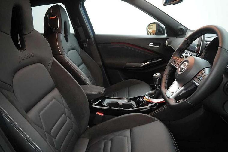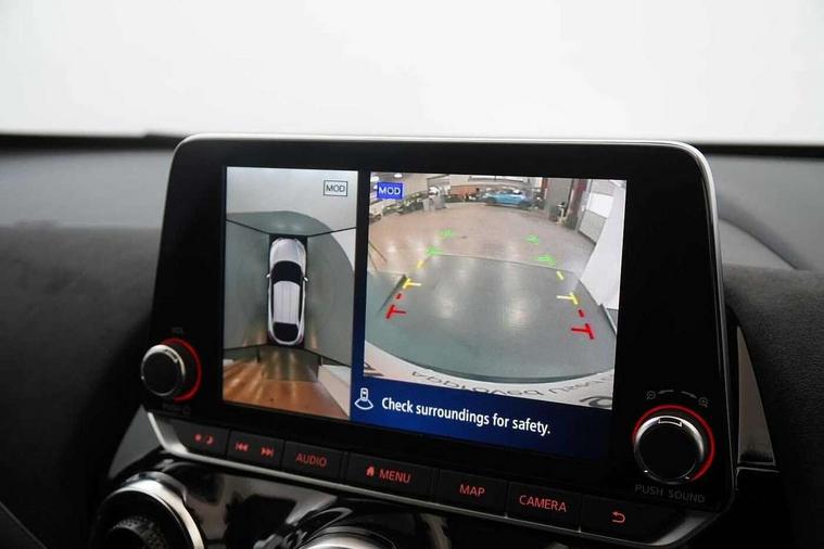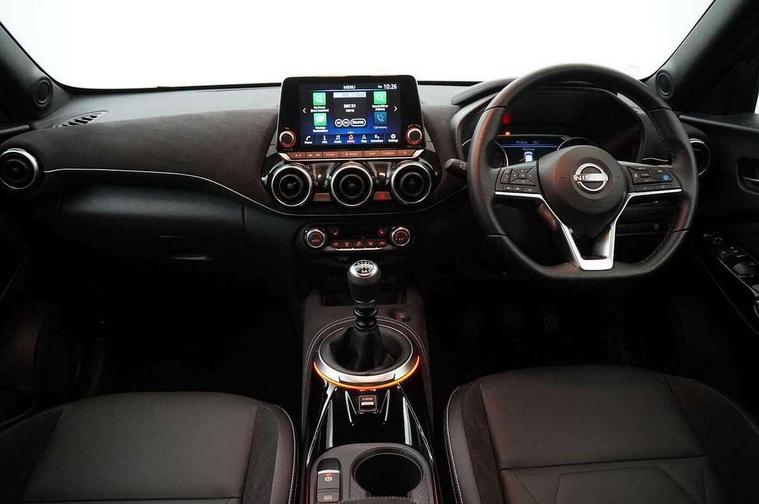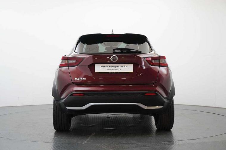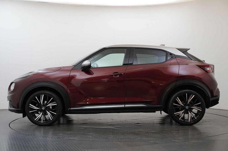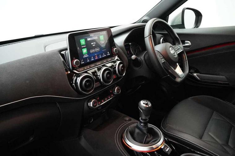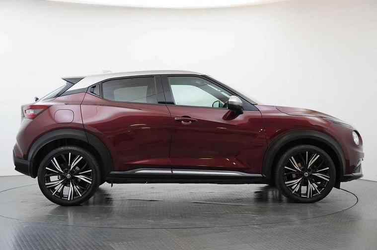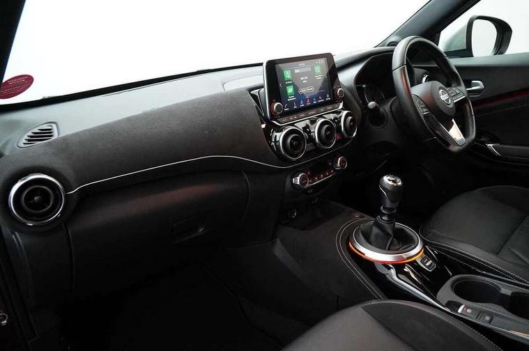 7" full colour TFT screen combimeter, Apple CarPlay and Google Android auto, Drive modes select (Eco, normal and sport), Emergency and breakdown call, Front parking sensor, Idle start/stop system, Intelligent lane intervention, Lane departure warning system, Nissan connect 8" touch screen entertainment system, Nissan connect nav with TomTom traffic, Nissan connect services and Wifi connection, Outside temperature sensor, Power Steering, Rear parking sensor, Traffic sign recognition, Trip computer, Voice recognition, Gasoline particulate filter, 10 Bose speakers 6 speakers and 2 headrest speakers for driver/passenger seats, Bluetooth system, USB, Aux-in and 12V socket, Bose personal sound stage control, DAB Digital radio, Rear console USB port, Auto dimming interior rear view mirror, Auto headlights, Automatic hazard signal with emergency stop signal, Body colour bumpers, Body colour door handles, Electrically adjustable door mirrors with integrated indicators, Follow me home headlights, Front and rear electric window with one touch driver window, Heated and auto folding door mirrors, High beam assist, LED daytime running lights, LED front fog lights, LED headlamps, LED rear fog lamp, LED rear lamps, Rain sensor windscreen wipers, Rear privacy glass, Rear side wing doors, Rear wiper, Satin silver front bumper finisher, Thermaclear heated windscreen, Three blink turn signal, 3 height adjustable rear headrests, 3 seat bench in 2nd row, 60/40 split folding rear seat, Automatic climate control, Card holder on driver sunvisor, Door ambient lighting, Driver and passenger sliding and reclining seats, Driver seat back pocket, Driver side rear coat hanger, Driver/passenger sunvisors and vanity mirrors, Front and rear cabin lights, Front armrest, Front door pockets with bottle holders, Front head restraints, Front passenger isofix child seat anchorage point, Front/rear passenger grab handles, Gear console ambient circle lighting, Grey synthetic leather kneepad, Heated front seats, Height adjustable driver's seat, Height adjustable passenger seat, Internal chrome door handles, Leather gearshift knob, Leather steering wheel, Luggage board, Luggage space lighting, Monoform sporty seats, Multifunction steering wheel, Passenger seat back pocket, Rear door bottle holders, Single front passenger seat, Telescopic steering wheel adjustment, Two cupholders in front centre console, Two rear isofix child seat anchorage points with top tether, Welcome light and console tray ambient lighting, Advanced safety shield pack - Juke, ABS with EBD and brake assist, Active ride control, Active Trace Control, Driver and passenger airbags, Driver and passenger side airbags, Electric handbrake with auto hold function, Electronic Stability Programme (ESP), Front and rear curtain airbags, Height adjustable seatbelts, Hill start assist, Intelligent emergency braking with pedestrian and cyclist recognition, Rear door child safety locks, Seatbelt reminder for driver/front passenger and rear seats, Single tone horn, Three 3 point rear seatbelts, Traction control, Tyre pressure monitoring system, VDC Dynamic Vehicle Control, Ventilated rear brake discs, Alarm, Immobiliser, Intelligent key and start push button with walk away lock and approach unlock functions, Remote central locking, 19" Akari alloy wheels,