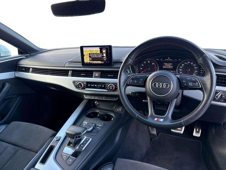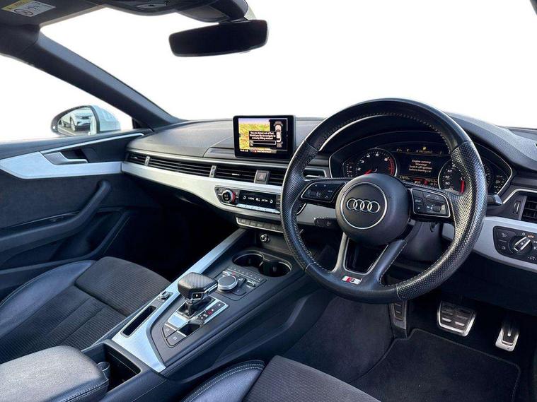 7" Colour driver information system, Audi connect, Audi drive select, Audi parking system plus with front and rear sensors, Audi smartphone interface, Automatic start-stop system with coasting functionality and efficiency programme, Bluetooth interface, Electric boot release, Electro-mechanical power steering, MMI Navigation, Service interval indicator, Voice control system, 2 x USB charging port with aux input socket, CD player, DAB Digital radio, Two SDXC card slots, Air inlet in matt aluminium with horizontal inlay, Aluminium roof frame and window trim, Auto dimming rear view mirror, Black grained rear grille, Body colour bumpers, Body coloured door mirrors, Chrome plated exhaust pipe, Electric adjustable heated door mirrors, Electric front windows, Front fog lights, High beam assistant, High gloss black B pillar trims and triangular rear door trim, Honeycomb side air inlet in titan black, Rain and light sensors, Rear diffuser in Twilight grey matt with honeycomb grille, S line badges on front wings, S Line body styling, S Line front and rear bumpers, S Line side skirts in black, S line sill plates, Twilight grey matt radiator grille in matt aluminium inlay, Windscreen with acoustic glazing, 40/20/40 split folding 2 seater rear seat bench with rear centre armrest, Adjustable steering column, Black headlining, Black perforated leather gearknob, Centre console with cupholders, Contrast stitching on seats, steering wheel and gear lever gaiter, Deluxe 3 zone electronic climate control, Front centre armrest, Front head restraints, Front/rear floor mats, Gearshift paddles, Illuminated door sill trim with S logo, ISOFIX child seat mounting and top tether, Jack and tool kit, Luggage compartment mat, Rear centre armrest, Rear headrests, S embossed logo on front sport seats, Stainless steel pedals and foot rest, Non Smokers pack, 6 airbags - Driver, front passenger, curtain and side airbags, Electromechanical parking brake, Electronic Stabilisation Control (ESC) including ABS, ASR and EDL, Front passenger airbag deactivation, Height adjustable front seatbelts, Hill hold function, Multi-Collision braking, Pop-up bonnet for pedestrian protection, Pre sense city, Seatbelt monitoring, Tyre pressure warning, Variable restraint system, Warning triangle and first aid kit, Anti theft alarm system, Anti theft wheel bolts, Immobiliser, Keyless Go, Remote central locking, Tyre repair kit,