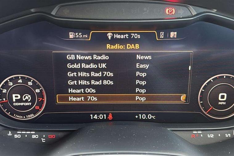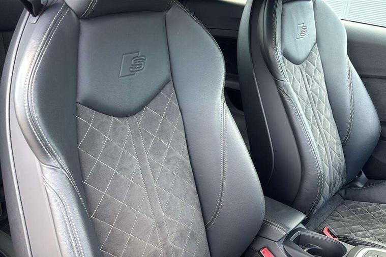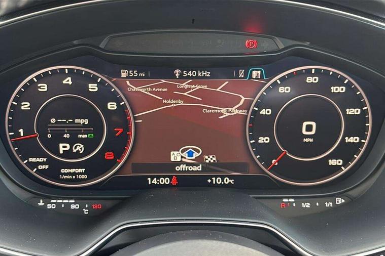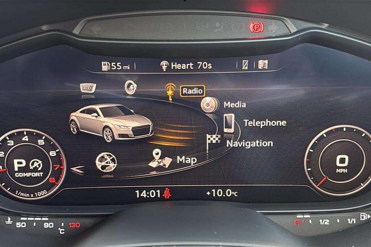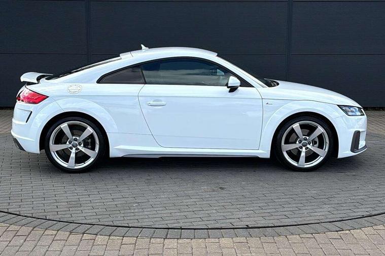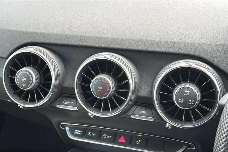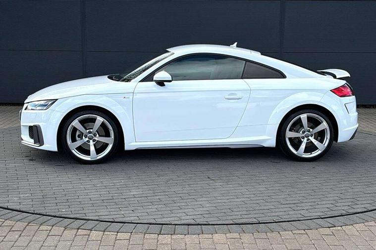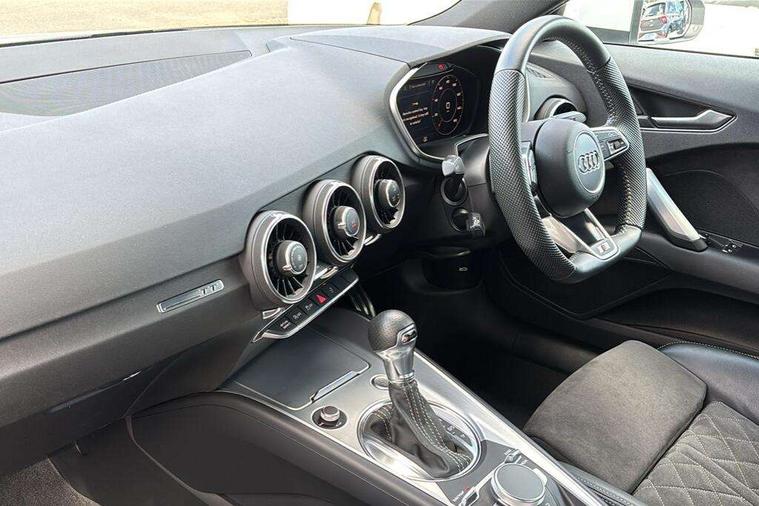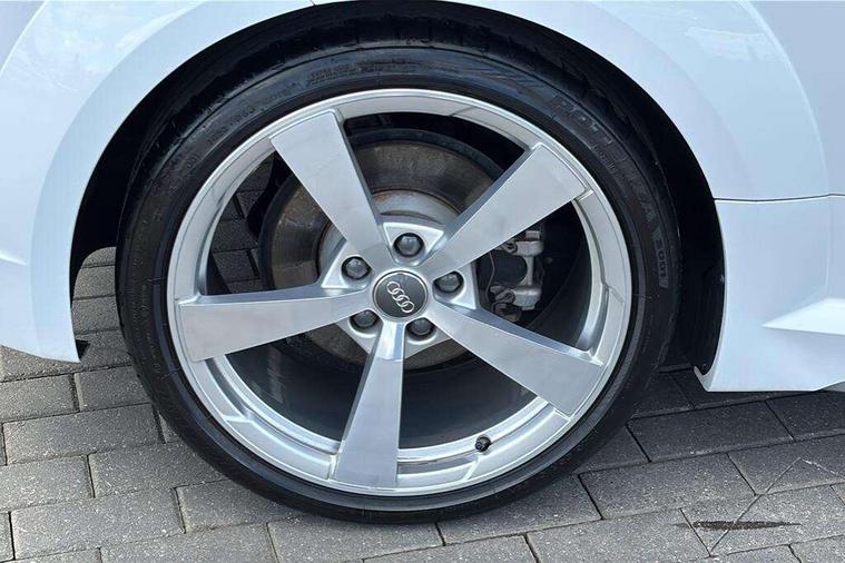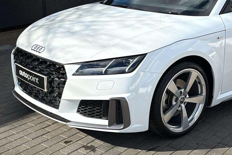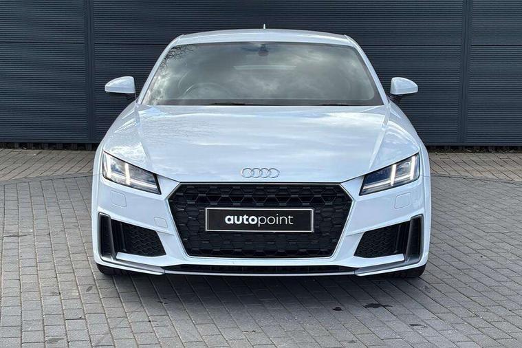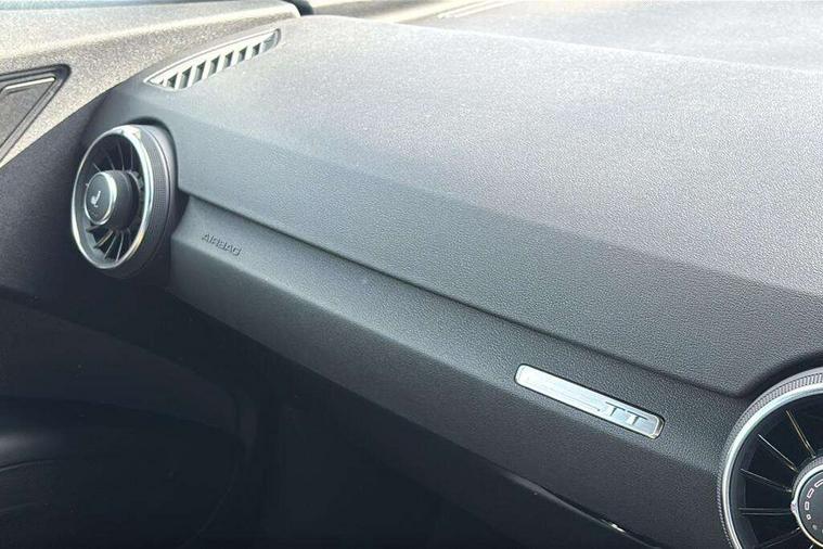 Audi drive select with 4 Pre configured modes, Audi virtual cockpit - 12.3" high-resolution LCD display with fully customisable instrument cluster, Cruise control + speed limiter, MMI touch panel, Mobile phone preparation with bluetooth interface, Progressive power assisted steering, Service interval indicator, Start/Stop system with energy recuperation, TP memo, S line sports suspension, AM/FM radio, Audi music interface, Bluetooth audio streaming, DAB Digital radio, MMI Radio with CD player and SD/XC card slot, Auto dimming rear view mirror, Auto headlight range control, Body colour bumpers, Body colour electrically adjustable and heated door mirrors with built in LED side indicators, Dynamic rear indicators, Electric folding door mirrors, Electric front windows, Front fog lights, Green tinted heat insulating glass, Headlight wash system, High gloss black radiator grille, LED daytime running lights, LED headlights with LED rear lights + dynamic rear indicators, Light and rain sensors, Retractable rear boot spoiler, S line badges on front wings, S Line body styling, S Line front and rear bumpers, S line rear diffuser with platinum grey insert, S line sill plates, Sunband for windscreen, 12V socket, 3 spoke flat bottomed high multi-function leather sport steering wheel with gearshift paddles, 4 way electric lumbar support for driver and front passenger, Air conditioning, Black headlining, Door sill trims with S line logo, Extended aluminium look with stainless steel pedals, Front centre armrest, Front super sports seats, Heated front seats, Height adjustable driver's seat, Height adjustable front head restraints, Height/reach adjust steering wheel, ISOFIX child seat mounting for front passenger seat with airbag deactivation, Perforated leather gearknob, Rear head restraints, Rear top tether child seat ISOFIX attachment, S Line badge on steering wheel, Split folding rear seat, Top tether anchor plate for isofix child seat, Non smoking pack - TT/TT RS, 3 point front seat belts, ABS, ASR traction control, Brake energy regeneration, Curtain airbags, Driver and front passenger airbag with front passenger airbag deactivation, EDL traction control, Electromechanical parking brake, ESP, First aid kit, Front side airbags, Head airbags, Hill hold assist, Seatbelt warning, Tyre pressure warning, Warning triangle, Anti theft alarm, Anti theft wheel bolts, Immobiliser, Keyless Go, Remote central locking, Matt brushed aluminium inlays, Tool kit, Tyre repair kit,