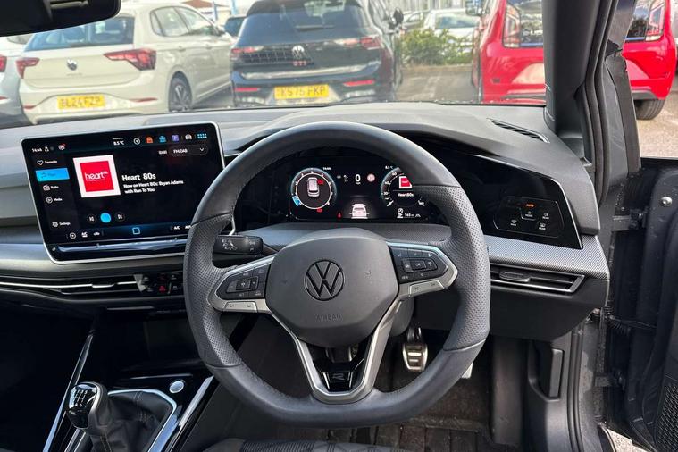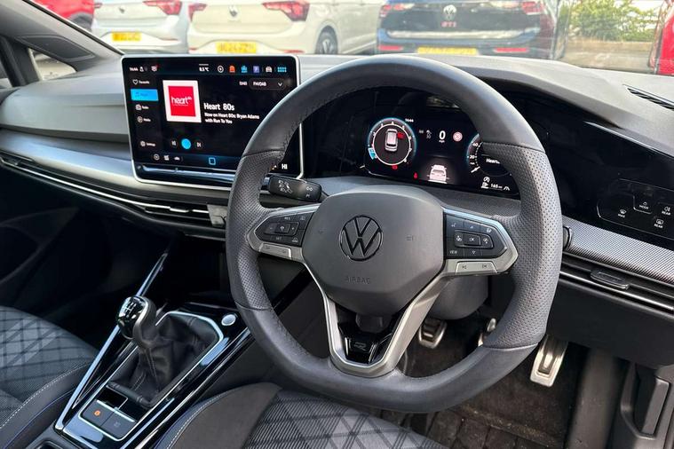Activated carbon canister, Adaptive cruise control (ACC), Advanced driver attention and drowsiness monitor, Dynamic road sign display, Dynamic steering, E-Sim card for online connectivity, eCall emergency call system, Multi-color Digital cockpit pro, selection of different info profile possible, Multifunction front facing camera for distance control, Navigation system, Oncoming vehicle braking when turning including swerve support, Preparation for light assist system, Speed limiter, Speedo, rev counter, electronic odometer, trip, service interval display, exterior temperature and fuel gauge, Traffic jam assist, Voice enhancer and voice control, Warning signal and warning light for front and rear seatbelts not fastened, We connect plus preparation, We connect preparation, Wireless app connect, Petrol Particulate Filter, Start-stop system with battery regeneration (recuperation - energy recovery during braking), XDS electronic differential lock for improved traction and handling, 2 USB C ports in front, 2 USB charging sockets on the centre console in the rear charging capacity upto 45W, Comfort telephony + wireless charging, without wireless aerial connection, Digital radio reception (DAB), Diversity antenna for FM reception, Gaming platform via car app, Infotainment system with 12.9" display, Mobile phone interface with inductive charging feature, 3rd brake light, Auto headlights, Automatic headlamp activation with Coming home and Leaving home feature, Body colored bumpers in R-Line style, Body colour door handles, Exterior ambient lighting with illuminated door handles, Exterior mirrors convex on the left and aspherical on the right, Front and rear electric windows, Heat insulating windshield made of laminated glass, LED daytime running lights, Rear exhaust tailpipe, Rear fog light on one side and reversing lights on both sides, Rear side wing doors, Rear windscreen washer and wiper with interval delay, Remote electrically foldable door mirrors, puddle lights and reverse activated passenger's door mirror, Welcome light with surround lighting, 12V socket in front centre console, 12V socket in luggage compartment, 3 rear head restraints, 3 seat bench in 2nd row, Ambient lighting with 30 colour including LED light unit in front footwell with selectable light colour, Brushed stainless steel pedals, Carpet mats, front and rear, Chrome plated radiator grille inserts, air vent surrounds and light switch surrounds, Front centre armrest, Integrated front head restraints, ISOFIX anchors for child seats on outer rear bench seats and on front passanger seat compatible for i-Size, Leather gearshift handle, Luggage compartment lighting, Premium sports seats in front, Rear cupholder and loadthough, Single front passenger seat, Soul black instrument panel, Split folding backrest with centre armrest and unsplit rear seat bench, Storm grey roof lining, Sun visors with illuminated vanity mirrors, 3 point height adj front seatbelts + pretensioners, 3 rear three point seatbelts, ABS, Autonomous emergency braking front assist with pedestrian and cyclist monitoring, Child locks on rear doors, Driver and front passenger airbag with front passenger airbag deactivation, Electronic parking brake with auto hold, ESC (Electronic Stability Control), Extended pedestrian protection measures, Rear disc brakes, Two tone horn, Tyre pressure loss indicator, Volkswagen roadside assistance, Anti theft wheel bolts, Preparation for alcohol interlock, Decorative inserts carbon grey for dashboard and front door trim panels,