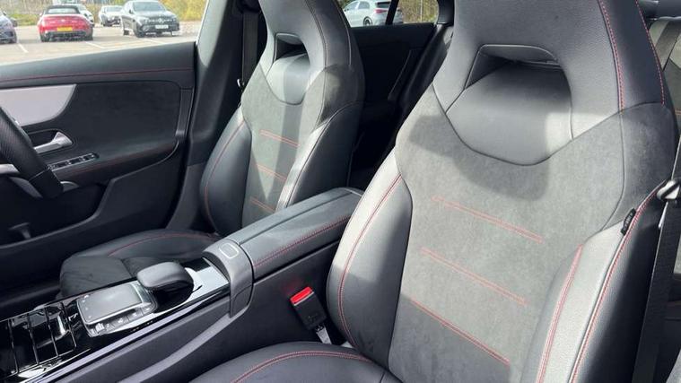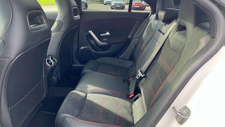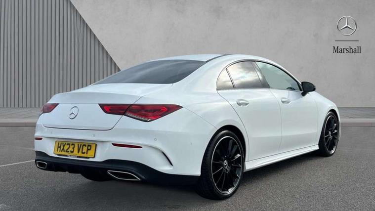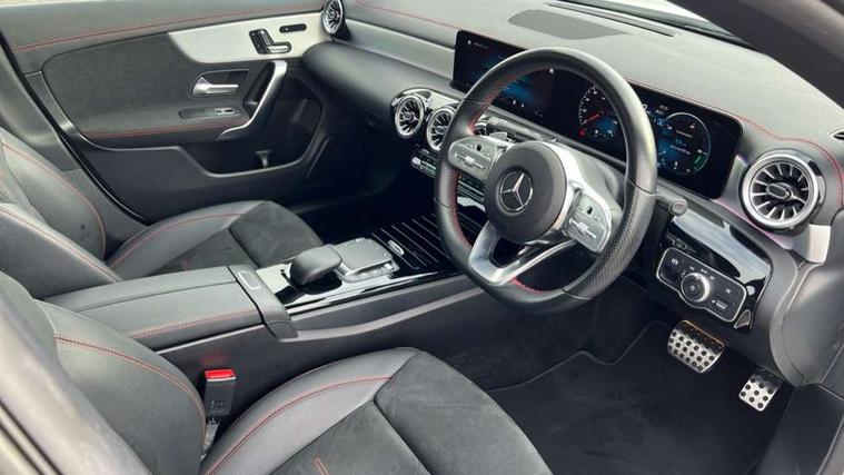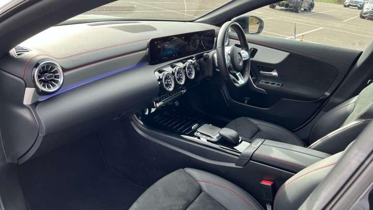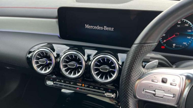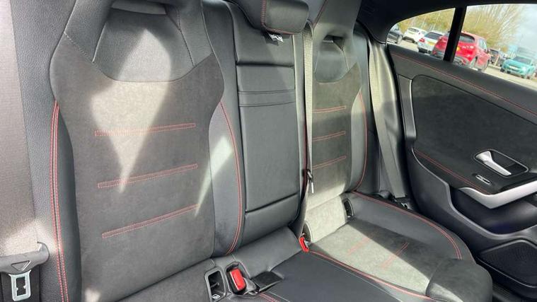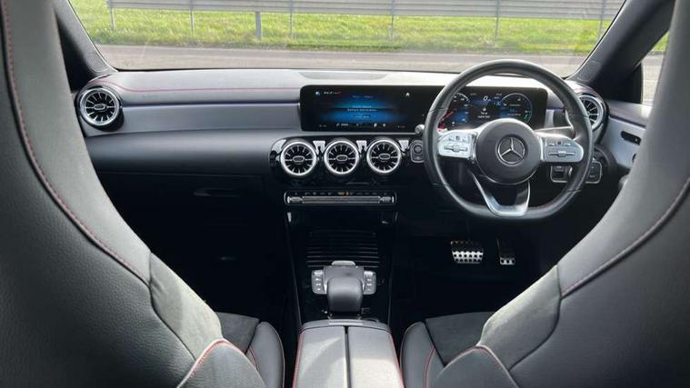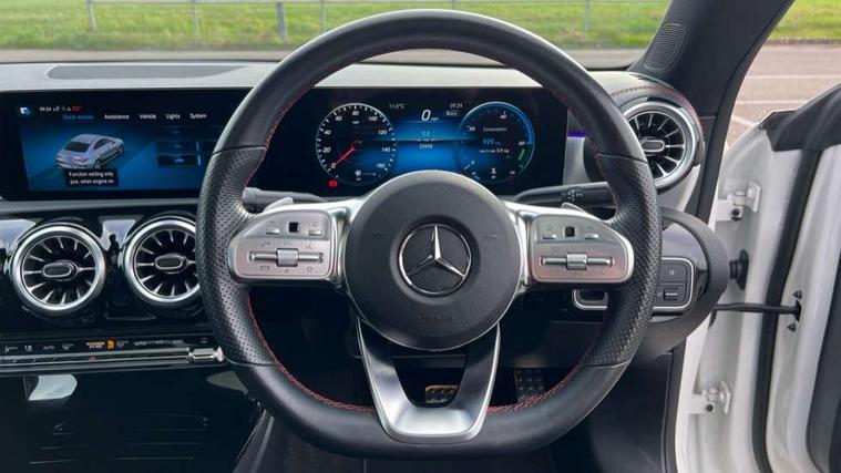 10.25 inch Instrument display with digital cockpit, 10.25 inch touchscreen central media display, Active lane keeping assist, Attention assist - Monitors steering behaviour and long journey fatigue, Blind spot assist, Bluetooth connection, Car wash mode, Cruise control with limiter, Direct steer system with speed sensitive power steering, DYNAMIC SELECT with a choice of driving modes (ECO, Comfort, Sport and Individual), ECO start/stop function, Fluid level warning indicator for fuel, oil, coolant and washer fluid, Hard-disk navigation, Hey Mercedes Voice activation, Lamp failure indicator, Mercedes me connect including emergency call system, accident recovery, breakdown and maintenance management, Mercedes me remote services, Outside temperature gauge, Owners manual and service booklet in English, Pre-installation of private car share, Preinstallation for Mercedes Benz link, Radio aerial integrated into front and rear windshields, Service indicator (ASSYST), Smartphone integration with Apple CarPlay and Android auto, Speed limit assist, Traffic sign assist, Trip computer in multifunction display with current consumption indicator, Lowered comfort suspension, Rear axle multi-link, DAB digital radio tuner, MBUX multimedia system, Mid-range sound system, USB (type C) ports (2) in stowage compartment and 1 in front of centre console, Adaptive brake lights, AMG body styling with AMG front apron and rear apron and visible exhaust tailpipe in chrome trim elements, AMG bodystyling side skirts, Body colour bumpers, Body colour door handles, Chrome beltline strips, Diamond radiator grille pins in chrome, Electric panoramic sunroof with automatic tilt and convenience closing fuinctions, rain sensor auto closing and electronic roller sunblind, Electric windows, Electrically adjustable and heated door mirrors with integrated LED indicators, Exhaust system with 2 Visible tailpipe trim elements and rear apron with trim in chrome, Headlamp assist automatic headlamp activation, Heated glass rear windscreen + timer control, High level LED third brake light, Integrated LED daytime running lights, Interior mirror with black reading lamps and frameless, LED tail lamp, Multibeam LED headlamps with adaptive highbeam assist plus, Privacy glass with dark tinting on rear side windows and rear window, Rain sensing windscreen wipers with two sensitivity settings, Rear boot, Rear fog lamp, Rear side wing doors, Variable front intermittent wipers, Window line trim strip in chrome, 3 seat bench in 2nd row, 3 spoke flattened bottom nappa leather multifunction steering wheel with perforated leather in grip area, 40:20:40 split folding rear seat backrests, Air conditioning - Two zone thermotronic luxury automatic climate control with display, Air vents with surround in silver chrome, Artico man-made leather upholstery, Automatic child seat recognition sensor, Black roof lining, Brushed stainless steel sports pedals with rubber studs, Electrically adjustable front memory seats including lumbar support, Floor mats with stitched AMG lettering, Front centre armrest with stowage, Galvanished gear shift paddles on steering wheel, Heated front seats, Illuminated front door sills with changeable cover, Illuminated glove compartment stowage, Interior lighting - 64 colour Ambient lighting, Luggage net on driver/front passenger seat backrest, Manually adjustable front seats, Manually height and reach adjustable steering column, Rear armrest with two integral cup holders for drinks, Rear head restraints, Single front passenger seat, Sport seats with fixed head restraints, Stowage compartment in centre console with retractable cover, Sunvisors with illuminated vanity mirrors, Touchpad on center console, Twin front cupholders, Two outer rear seat isofix and top tether child seat fixing points, Keyless go comfort pack - CLA, Light and sight pack - CLA, Mirror pack - CLA, Night package - CLA, Parking package - CLA, Active bonnet pedestrain safety measure which detects an impact and raises bonnet by 65mm, Active brake assist includes forward collision warning system with autonomous braking, Adaptive brake assist with hold function and hill start assist, Anti lock braking system (ABS) with brake assist, Black seat belts, Bonnet with power domes, Brake pad wear warning indicator, Childproof locks manually operated for rear doors and electrically operated for rear power windows, Crash responsive emergency lighting, Driver and front passenger head and sidebags, Driver and front passenger windowbags, Drivers knee airbag, Dual stage driver and front passenger airbags, Electric parking brake, Electronic stability programme with acceleration skid control, ESP curve dynamic assist, Exit warning, Front and rear seatbelt reminder, Front passenger seat occupancy sensor, Three point rear seat belts, Tyre pressure monitoring system, Warning triangle and first aid kit, Guard 360 degree guard vehicle protection system with immobiliser and interior protection, Remote central locking and crash sensor with emergency opening function, Light aluminium with longitudinal grain interior trim, 19" AMG multi-spoke black painted light alloy wheels with high sheen rim finish, Summer tyres, Tirefit tyre sealant kit,