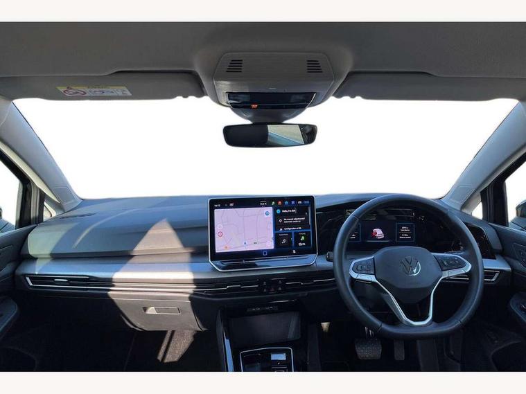 Activated carbon canister, Adaptive cruise control (ACC), Advanced driver attention and drowsiness monitor, Dynamic road sign display, E-Sim card for online connectivity, eCall emergency call system, Multi-color Digital cockpit pro, selection of different info profile possible, Multifunction front facing camera for distance control, Navigation system, Oncoming vehicle braking when turning including swerve support, Side assist blind spot lane change system, rear traffic alert and exit warning system, Speed limiter, Speedo, rev counter, electronic odometer, trip, service interval display, exterior temperature and fuel gauge, Traffic jam assist, Voice enhancer and voice control, Warning signal and warning light for front and rear seatbelts not fastened, We connect plus preparation, We connect preparation, Wireless app connect, Charging cable Mode 2 Type 2 (10A), Charging cable mode 3, type 2 32 A, Hybrid propulsion system, Start-stop system with battery regeneration (recuperation - energy recovery during braking), XDS electronic differential lock for improved traction and handling, 2 USB C ports in front, 2 USB charging sockets on the centre console in the rear charging capacity upto 45W, 6 Speakers - 4 in front and 2 in rear with central speaker, Digital radio reception (DAB), Diversity antenna for FM reception, Gaming platform via car app, Infotainment system with 12.9" display, Mobile phone interface with inductive charging feature, 3rd brake light, Automatic headlamp activation with Coming home and Leaving home feature, Body colour bumpers, Body colour door handles, Body colour door mirrors, Chrome trimmed front air intake surrounds, Chrome trims on the side window bottom, Exterior mirrors convex on the left and aspherical on the right, Front and rear electric windows, Heat insulating windshield made of laminated glass, LED separate daytime running light, Rear exhaust tailpipe, Rear fog light on one side and reversing lights on both sides, Rear side wing doors, Rear windscreen washer and wiper with interval delay, Remote electrically foldable door mirrors, puddle lights and reverse activated passenger's door mirror, Welcome light with surround lighting, 12V socket in front centre console, 12V socket in luggage compartment, 3 rear head restraints, 3 seat bench in 2nd row, Air care climatronic 3 Zone automatic climate control with rear air conditioning control panel, Ambient lighting with 30 colour including LED light unit in front footwell with selectable light colour, Chrome plated radiator grille inserts, air vent surrounds and light switch surrounds, Front + rear black carpet mats, Front centre armrest, ISOFIX anchors for child seats on outer rear bench seats and on front passanger seat compatible for i-Size, Luggage compartment lighting, Plastic gear knob, Rear cupholder and loadthough, Single front passenger seat, Soul black instrument panel, Split folding backrest with centre armrest and unsplit rear seat bench, Standard pedal cluster, Storm grey roof lining, Sun visors with illuminated vanity mirrors, Driver assistance pack - Golf Estate/Hatchback Auto, 3 point height adj front seatbelts + pretensioners, 3 rear three point seatbelts, ABS, Autonomous emergency braking front assist with pedestrian and cyclist monitoring, Child locks on rear doors, Driver and front passenger airbag with front passenger airbag deactivation, Electronic parking brake with auto hold, ESC (Electronic Stability Control), Extended pedestrian protection measures, Hill start assist, Rear disc brakes, Two tone horn, Tyre pressure loss indicator, Volkswagen roadside assistance, Anti theft wheel bolts, Preparation for alcohol interlock, New brushed dark metal decorative inserts for dashboard and front door panels, Tool kit for tyre mobility set, Tyre mobility kit Includes 12V compressor and tyre sealant,