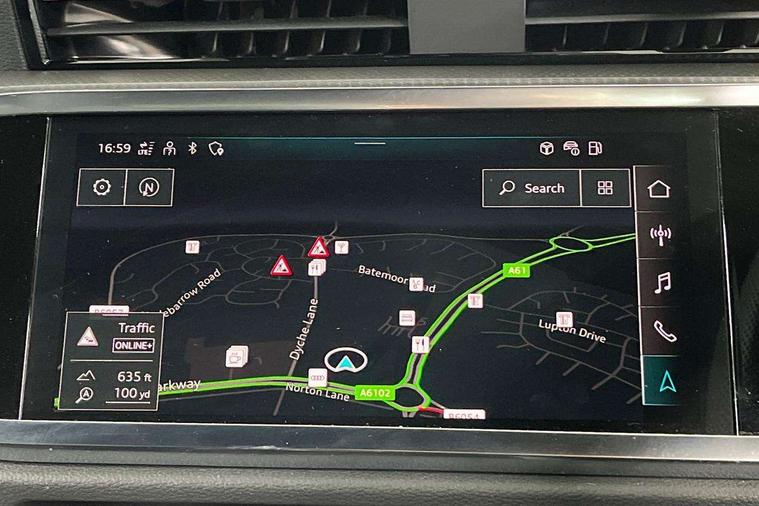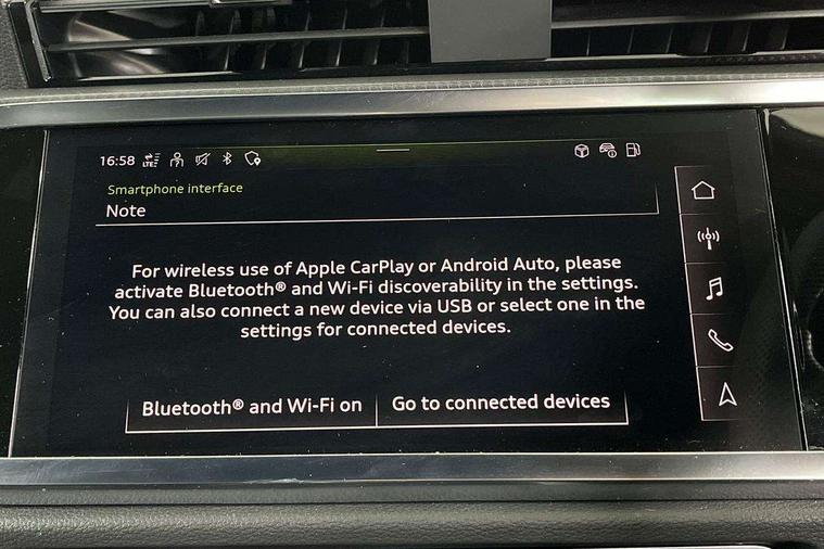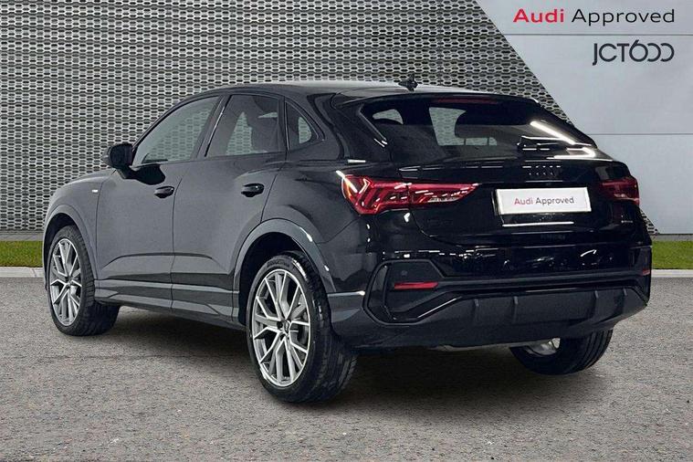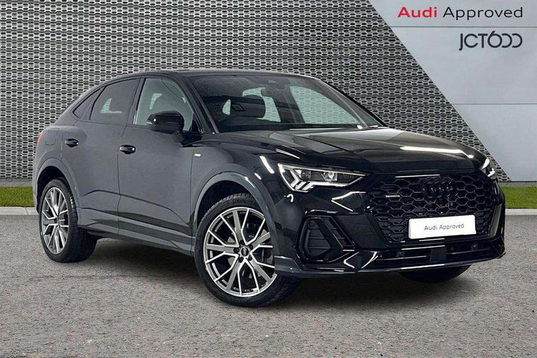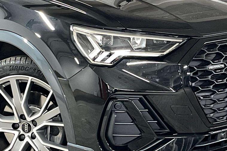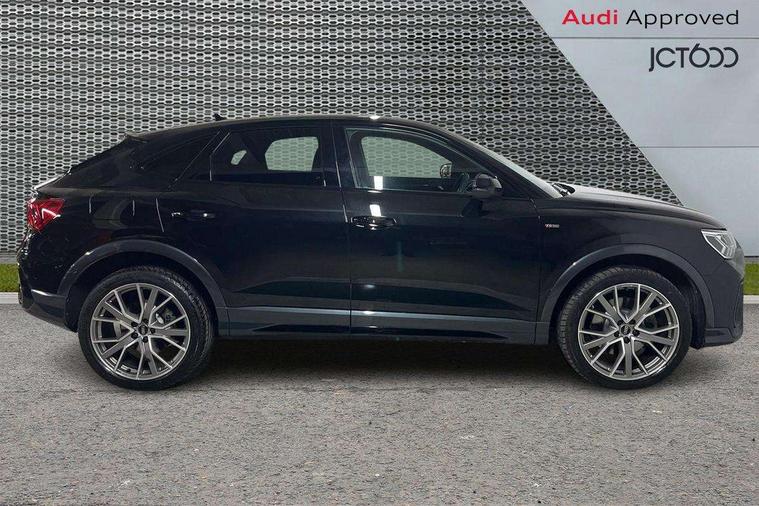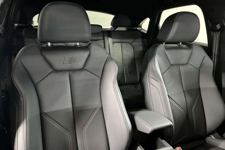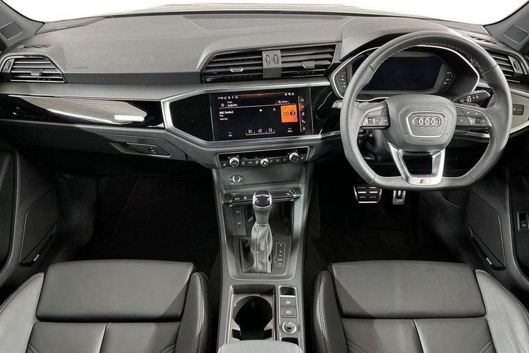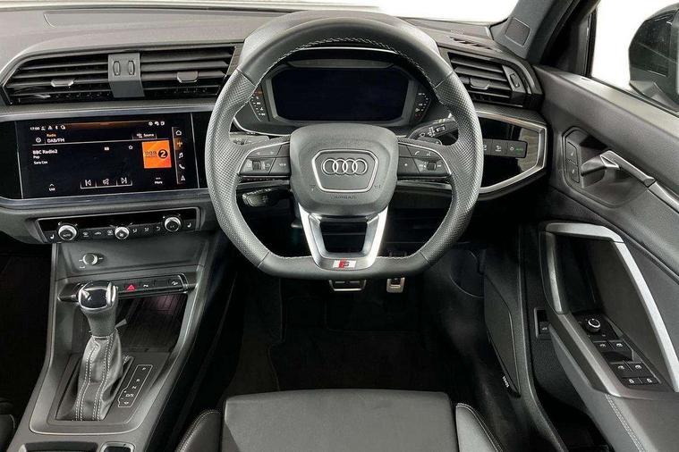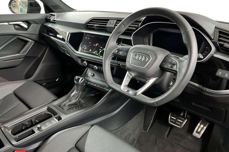 Audi connect safety and service, Audi drive select, Audi lane departure warning, Audi Virtual Cockpit - 10.25" display, Bluetooth interface, Camera based traffic sign recognition, Distraction and Fatigue warning, Legal emergency call, MMI Navigation Plus with high resolution 10.1 inch touchscreen colour display, Power operated tailgate, Progressive steering, Service interval indicator, Smartphone interface includes wireless Apple carplay/Android Auto, Start stop system with recuperation, Voice control system with natural language interaction, Sports suspension, 2 USB-C ports with charge and data functions, 6 passive loudspeakers, DAB digital radio module, Acoustic windscreen, Audi Beam uses LEDs to project the Audi logo onto the ground as you exit your Q3, Auto dimming door mirrors, Auto dimming frameless rear view mirror, Electrically folding, adjustable and heated door mirrors with integrated LED side indicators and kerb view function for passenger side, Front and rear electric windows, Front fog lights, Front underbody protection in manhattan grey paint finish, High gloss black finish B and C pillars, Honeycomb design radiator grille in matt anthracite black, LED Dynamic rear indicators, LED headlights with LED daytime running lights, LED rear lights, LED third brake light, Privacy glass dark tinted rear and rear-side windows (from B-pillar backwards), Rain and light sensors, Rear diffuser grille in grained matt black, Rear diffuser strip in matt anthracite black, Rear side wing doors, Rear underbody protection in matt black, Rear wiper, S line front and rear bumpers and side skirts in contrasting Manhattan grey paint finish, Variable front intermittent wipers, 12V socket in rear centre console, 3 seat bench in 2nd row, 40:20:40 folding with manual adjustment for 60:40 forwards/backwards position and backrest angle, Adjustable rear seat bench/backrest with centre armrest and cupholder, Black carpet mats, Black cloth headlining, Dual zone electronic climate control, Electric lumbar support, Front and rear black floor mats with contrast stitching in rock grey, Front and rear headrests, Front centre armrest, Height and reach adjustable steering wheel, Illuminated door sill trims with S logo, ISOFIX child seat mounting for front passenger with airbag deactivation and outer rear seat including top tether attachment point for outer rear seats, Luggage compartment sill protection in stainless steel, Manual front seats with height adjustment, Perforated leather gearknob, Single front passenger seat, Stainless steel pedals, Twin leather upholstery with front sport seats + S embossing, Black styling pack - Q3, Non smoking pack - Q3, 3x3 point rear seatbelts, 6 airbags - Driver, front passenger, curtain and side windows, Audi pre-sense front with pedestrain and cyclist recognition, Electrically operated child locks on rear doors, Electromechanical parking brake, Electronic stabilisation control including ABS, ASR and EDL, Front seatbelt reminder, Hill descent control, Hill hold assist, Pre sense basic, Seatbelt monitoring, Tyre pressure warning, Warning triangle and first aid kit, Anti theft wheel bolts, Immobiliser, Remote central locking, Thatcham approved category 1 anti theft alarm, Aluminium look interior elements, Detail dashboard around MMI touch colour display in glass look, black with surround in aluminium look, Leatherette door armrest, Piano black inlay,