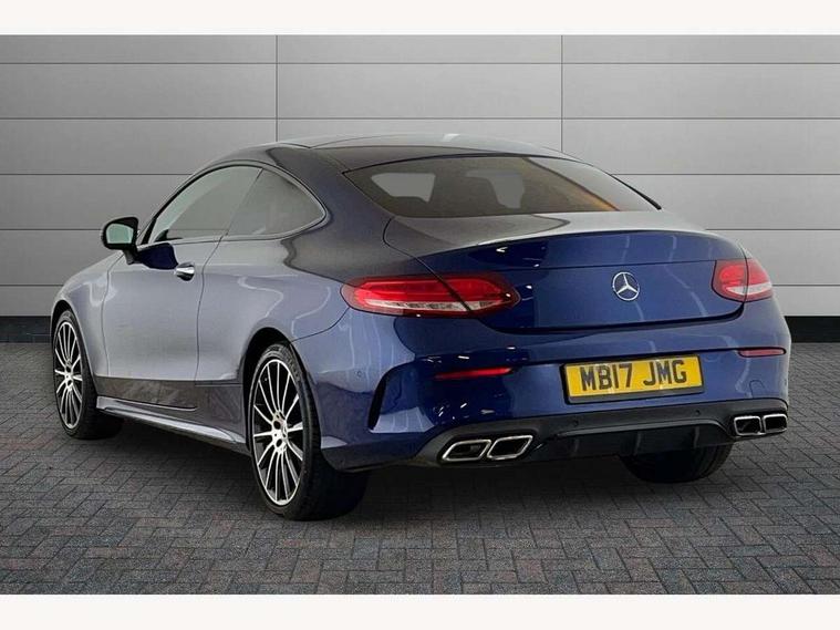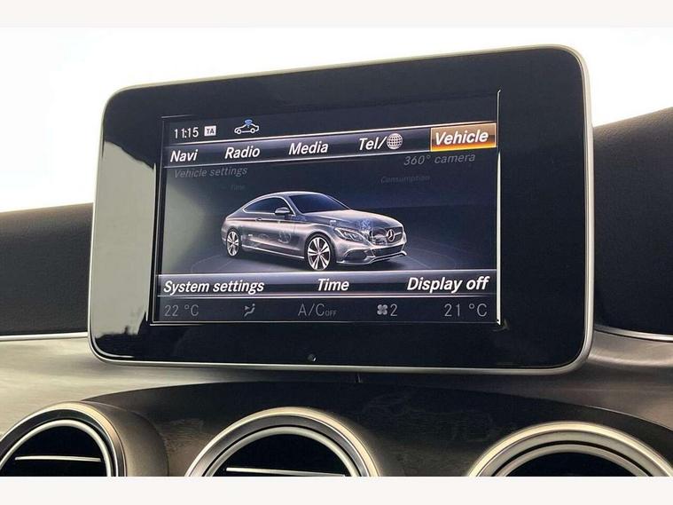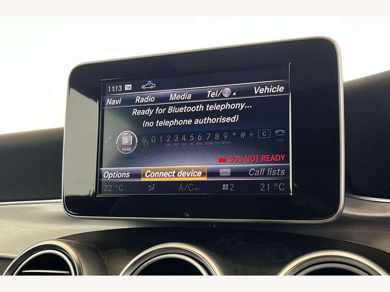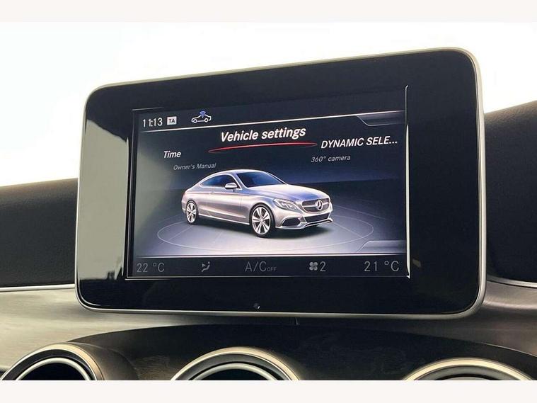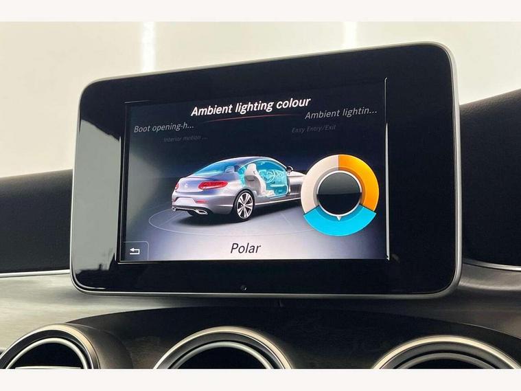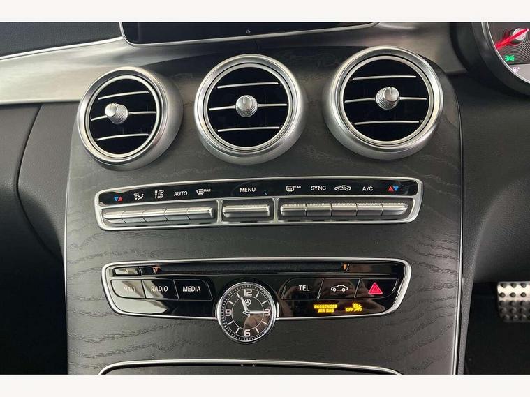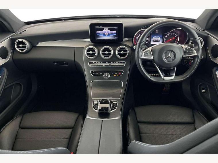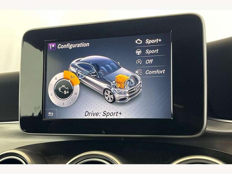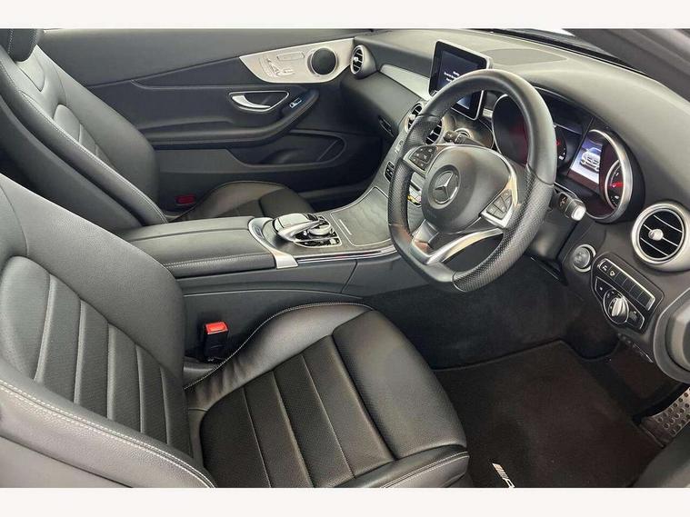 Active park assist with parktronic system, Attention assist, Bluetooth interface for hands free telephone, Collision prevention assist plus, DYNAMIC SELECT with a choice of driving modes (ECO, Comfort, Sport, Sport+ and Individual), Garmin Map Pilot navigation system with SD card, touchpad and voice control, Instrument cluster with 5.5-inch TFT multi-function display, Multi function trip computer, Outside temperature gauge, Remote boot release, Service indicator (ASSYST), Speed sensitive steering, 2 USB ports, Audio 20 radio/CD with 7" colour display with multi touch keypad, DAB digital radio module, Frontbass loudspeakers, Media interface, Steering column mounted multifunction controls, Adaptive brake lights, AMG front, rear apron and side skirts, Auto dimming driver's door mirror, Auto dimming rear view mirror, Body coloured bumpers, Chrome grille surround, Door sill plates with "Mercedes-Benz" lettering, Electric adjustable/heated/folding door mirrors, Electric front sliding and fixed rear panoramic glass sunroof, Electric windows one touch open/close, Green tinted glass, Heated windscreen washers, LED daytime running lights, LED tail lights, Radiator grille with integral star, Rain sensor windscreen wipers, Side windows surround in polished aluminium, Twin chrome exhaust tailpipes, 2 cupholders in front centre console, 2 rear head restraints, 3 spoke flat bottom multi-function leather AMG steering wheel, 4-way lumbar support for drivers seat, 4-way lumbar support for front passenger seat, 40:20:40 split folding rear seats, Advanced multicolour ambient light and LED interior light, AMG floormats, Auto dual-zone climate control system, Auto Mercedes-Benz child seat recognition sensor, Door courtesy lamps, Electric front seats, Electric height adjustable front seats, Front centre armrest with storage compartment, Front footwell illumination, Heated front seats, Height/reach adjustable steering column, Illuminated front/rear door handle recesses, Illuminated glovebox, Isofix rear child seat fastenings, LED reading lights, Sports pedals with stainless steel surfaces and rubber studs, Sports seats with integrated headrests, Steering wheel gearshift paddles, Sunvisors with illuminated vanity mirrors, Memory pack - C Class, Seat comfort pack - C Class, Stowage space pack - C Class, 2 rear seatbelts, ABS + BAS, Active bonnet, Adaptive brake system, Brake calipers with Mercedes-Benz lettering + perforated brake discs, Drivers knee airbag, Drivers pelvis airbag, Dual stage driver/passenger airbags, Electronic parking brake, ESP with ASR, Front side airbags, Hill hold control, Hill start assist, Tyre pressure monitoring system, Warning triangle and first aid kit, Window airbags, Alarm system/interior protection/immobiliser, Chrome surround in electric key, Keyless entry and keyless start, Remote central locking, Tyre inflation kit,