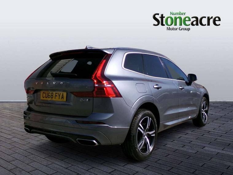 12.3" Active TFT crystal driver's instrument display, 9" Touch screen, Adjustable steering wheel force, Bluetooth hands free telephone kit, Drive mode selector, Intelligent driver information system (IDIS), Lane keep assist with driver alert control, Oncoming Lane Mitigation, Power tailgate, Road Edge Detection, Service interval indicator, Speed limiter, Speed sensitive steering, Voice control system, Volvo on call, Diesel particulate filter, DAB Digital radio, Adaptive brake lights, Auto dimming interior + exterior mirrors, Body colour bumpers, Dark tinted glass for rear windows + rear screen + side luggage area window, Dual integrated exhaust pipes with high gloss black surround, Electric front+rear windows, Electrically adjustable and heated door mirrors, Front skid plate, Headlamp levelling, High gloss black front grille, Home safe and approach lighting, Illuminated side steps, LED front fog lights, LED Headlights + Active high beam incorporating daytime running lights, Matt silver finish door mirrors, R Design tread plates, Rain sensor windscreen wipers, Rear wiper, Roof antenna, Roof spoiler, Silk metal grille surround, Silver matt window frame surround, Silver roof rails, Tinted windscreen, Visible VIN plate, 12V power point in luggage area, 12V socket in front + rear tunnel console, 3 spoke leather steering wheel with chrome trim, 4 aluminium high level anchor points, 60/40 split folding rear seat, A-pillar parking ticket holder, B Pillar ventilation, Black headlining, Bright metal luggage threshold, Centre armrest storage illumination, Contour sports seats with leather/nubuck upholstery, Extended front seat cushions, Front centre armrest with storage compartment and cupholders, Front footwell illumination, Front/rear reading lights, Gearshift paddles, Glovebox illumination, Head restraints for all seats, Heated front seats, Height adjustable drivers seat with lumbar support, Height/reach adjustable steering column, Illuminated driver/passenger vanity mirrors, Illuminated luggage compartment, Isofix attachments on rear seats, Load cover, Lockable load floor, Passenger seat adjustable for lumbar support, Perforated leather gearknob, Perforated Leather Key Integrated Remote, Perforated leather steering wheel, Pollen filter, Rear armrest / integral cup holders / storage tray, Rear seat concealed storage, Sport pedals, Sports floor mats, Theatre dimming interior lights, Underfloor stowage compartment, WHIPS - Whiplash Protection System, 5 three point seatbelts, ABS/EBD, Child proof door locks, City safety, Drivers knee airbag, DSTC-Dynamic Stability and Traction Control, Dual stage driver/passenger airbags, EBA, Electronic parking brake with auto hold, Fasten seatbelt reminder, First aid kit, HBA (Hydraulic Brake Assist), Hill descent control, Hill start assist, Inflatable curtain, Passenger airbag deactivate switch, Road sign information display, Roll over protection, RSC - Roll stability control, Run off Road Protection, Seatbelt pre-tensioners, SIPS airbags, Tyre pressure monitor, Warning triangle, Anti-theft alarm including immobiliser/volume sensor + level sensor, Fuel flap with deadlocking system, Key integrated remote control central locking, Keyless Start, Locking wheel nuts, Private locking, Metal mesh inlays, Tailored instrument panel with contrast stitching,