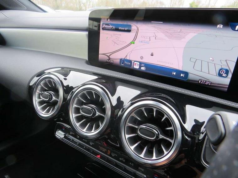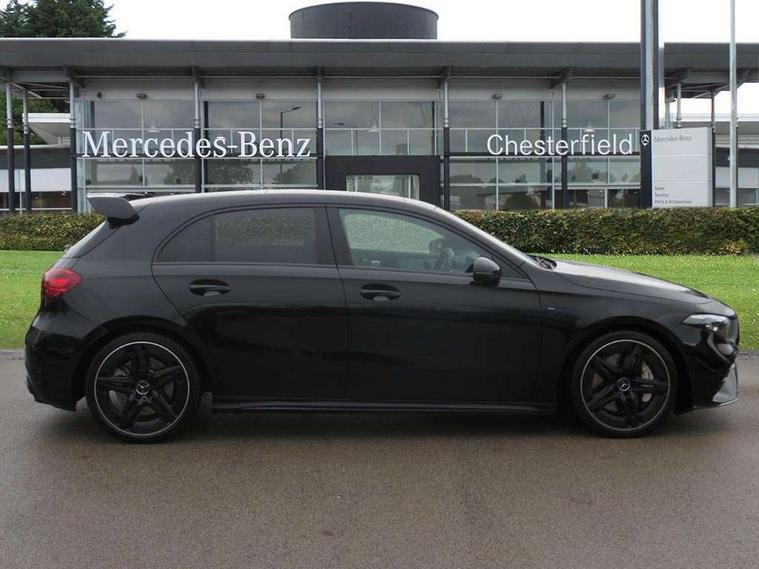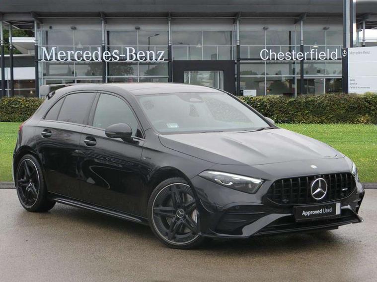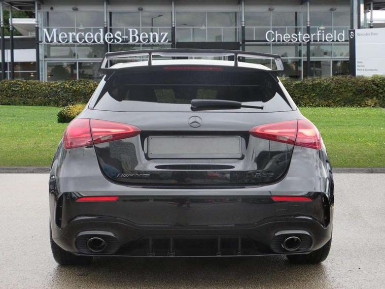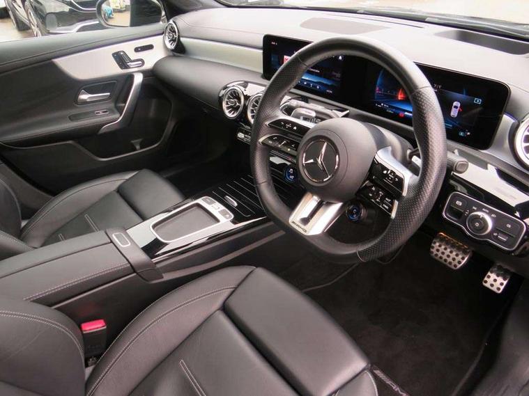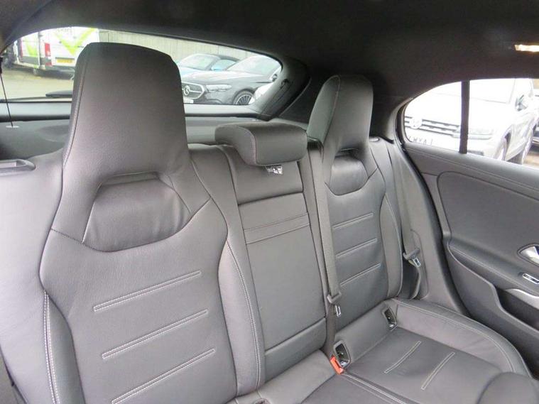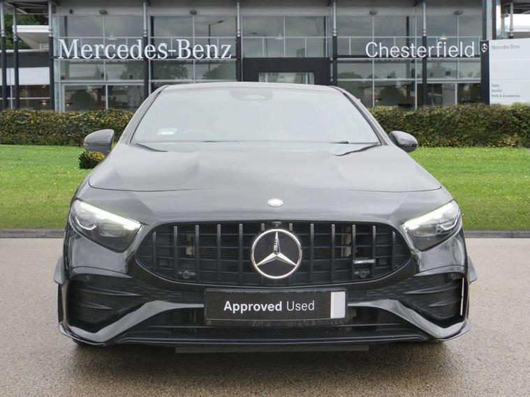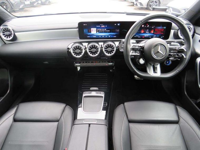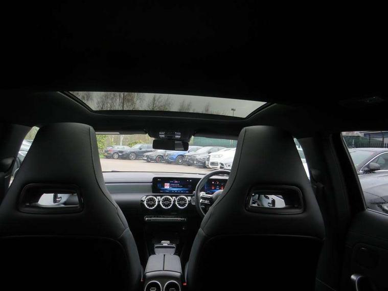 10.25 inch touchscreen central media display, 10.25" Digital instrument cluster display screen, Attention assist, Brake pad wear indicator warning light, Car wash mode, Cruise control + speed limiter, Direct steering, Direction indicators with lane change function, Dual bluetooth interfaces, DYNAMIC SELECT with driving programs (Slippery, Comfort, Sport, Sport+ and Individual), Easy pack tailgate hands-free access, ECO start/stop function, Engine start/stop button, Fluid level warning indicator for fuel, oil, coolant and washer fluid, Hard-disk navigation, Head up Display, Hey Mercedes Voice activation, Lamp failure indicator, MBUX augmented reality for navigation, MBUX Interior assistant, Mercedes me connect including emergency call system, accident recovery, breakdown management and maintenance, Mercedes me remote services, Outside temperature gauge, Owners manual in English, Pre-installation of private car share, Preinstallation for Mercedes Benz link, Remote boot closing, Service indicator (ASSYST), Smartphone integration with Apple CarPlay and Android auto, Speed sensitive power steering, Trip computer in multifunction display with current consumption indicator, Wireless charging, AMG suspension, Suspension with adaptive damping system, DAB Digital radio, MBUX multimedia system, Mercedes Benz advanced sound system (225 W) with 10 speakers, 1 central speaker, speakers on doors, a tweeter on door, one sub woofer + boost amplifier, 4 Electric Front and Rear windows, Adaptive brake lights, AMG body styling - AMG front apron with front splitter and AMG rear apron and visible exhaust tailpipe trim elements, AMG Front apron with flics as air deflector elements on the outer air intakes, AMG radiator grille with twin blade lamella and AMG Lettering, AMG Rear apron with specific diffuser look with four vertical fins and two round chrome plated tailpipe trim elements with a diameter of 90 mm, AMG spoiler lip on roof, Beltline strips in High gloss Black, Body colour bumpers, Body colour door handles with chrome inserts, Body colour side skirt, Electric adjustable and heated door mirrors with integrated LED side indicators, Front splitter and trim elements on the louvres in the outer air inlets, Front wings wheel arches with TURBO 4MATIC lettering, Headlamp assist automatic headlamp activation, Heat insulating dark tinted rear and rear side windows, Heated glass rear windscreen + timer control, LED daytime running lights, LED High level third brake light, LED tail lamp, Multibeam LED headlamps with adaptive highbeam assist and cornering function, Panoramic sliding sunroof, Privacy glass, Radio aerial, Rain sensing windscreen wipers with two sensitivity settings, Rear fog lights, Rear side wing doors, Rear windscreen wiper, Wider wheel arches for AMG wheels, Window line trim strip in black, 3 seat bench in 2nd row, 40:20:40 split folding rear seats, AMG floor mats, AMG Performance steering wheel in nappa leather, Automatic child seat recognition sensor, Black air vents with surround in silver chrome, Black roof lining, Brushed stainless steel sports pedals with rubber studs, Electrically adjustable front memory seats including lumbar support and backrest inclination, Front centre armrest with stowage, Front seat backs luggage nets, Heated front seats, Height/reach adjustable steering column, Illuminated AMG front door sills with changeable cover, Interior lighting - 64 colour Ambient lighting, Interior mirror with reading lamps in black and frameless, ISOFIX and top tether child seat fixing points in two outer rear seats, Rear armrest with 2 cupholders, Seat occupancy sensor for front passenger seat, Silver coloured aluminium gear shift paddles on steering wheel, Single front passenger seat, Sports seats with integrated headrests, Stowage compartment in centre console with retractable cover, Sunvisors with illuminated vanity mirrors, Twin front cupholders, Two zone thermotronic luxury automatic climate control, Aerodynamic pack - A Class, AMG night pack - A Class, Light and sight pack - A Class, Mirror package - A Class, Parking pack with 360 degree camera - A Class, Seat comfort pack - A Class, USB pack plus - A Class, 3 rear 3 point seatbelts, ABS with Brake Assist, Active bonnet, Adaptive brake assist with hold function and hill start assist, Black seatbelts, Bonnet with power domes, Childproof locks manually operated for rear doors and electrically operated for rear power windows, Crash responsive emergency lighting, Driver and passenger head and side airbags, Drivers knee airbag, Dual stage driver/passenger airbags, Electronic parking brake, ESP curve dynamic assist, ESP with ASR, Exit warning, Front and rear seatbelt reminder, Front brake calipers with AMG lettering, Tyre pressure monitoring system, Warning triangle and first aid kit, Window airbags, Alarm system/interior protection/immobiliser, Guard 360 degree vehicle protection, Keyless entry lock/unlock, Keyless Go, Remote central locking and crash sensor with emergency opening function, Light longitudinal grain aluminium trim, 19" AMG 5 twin spoke light alloy wheels aerodynamically optimised painted in matt black with high sheen rim flange, Summer tyres, Tirefit sealant kit,