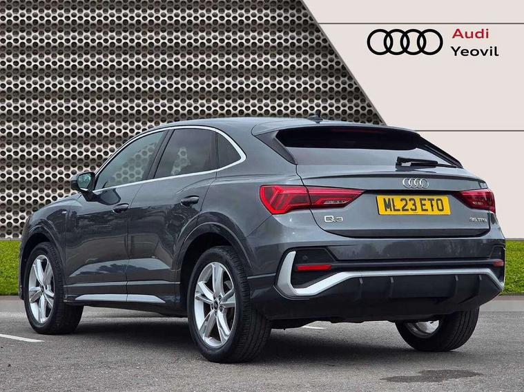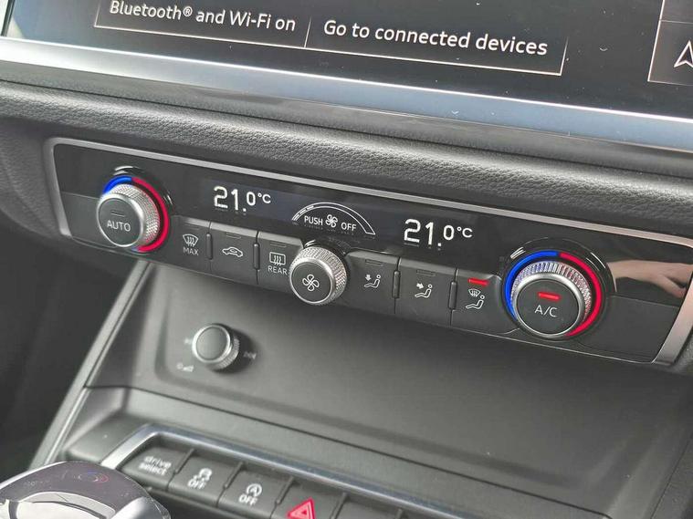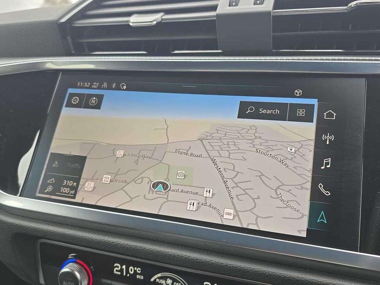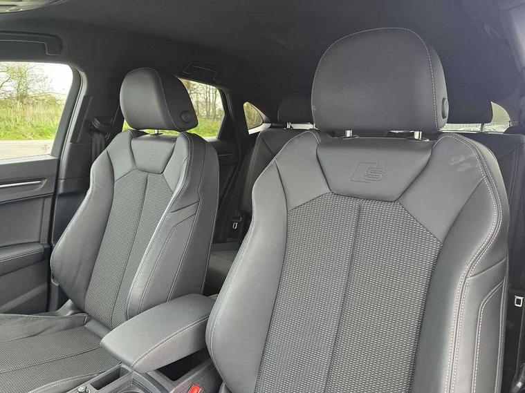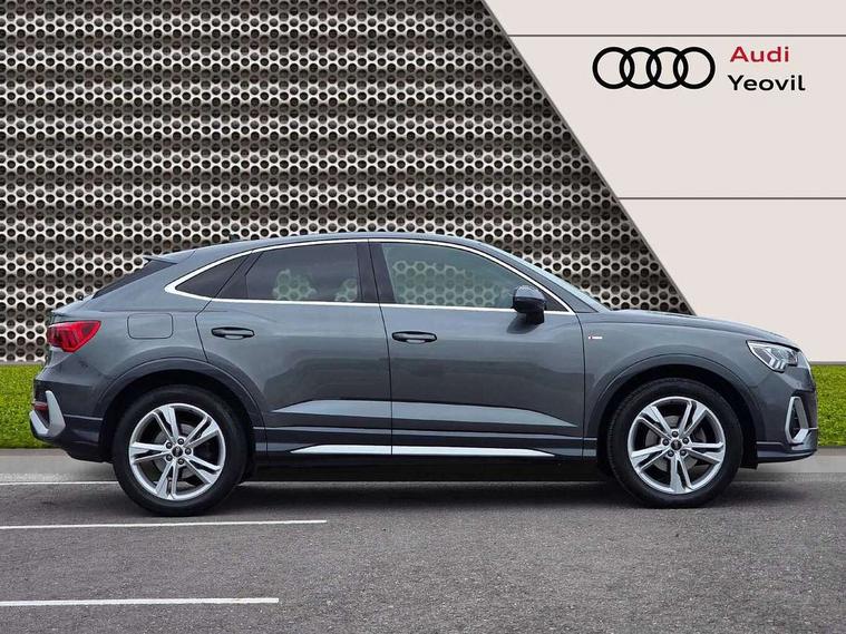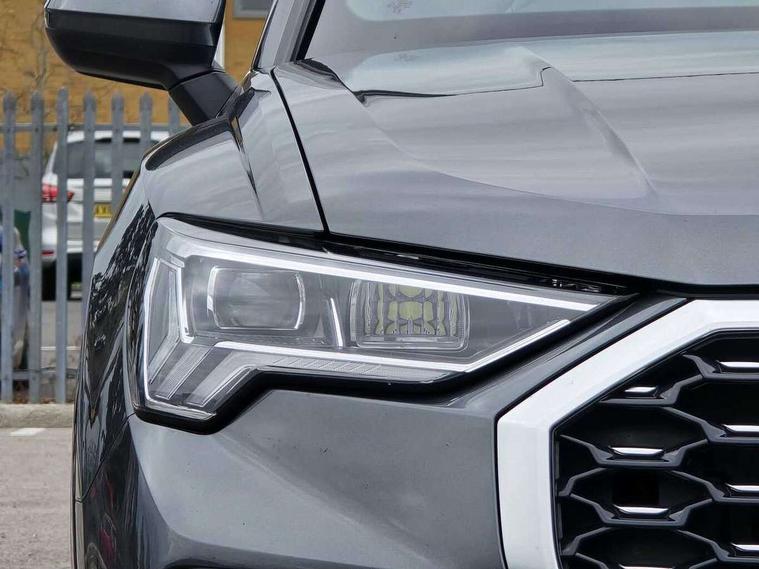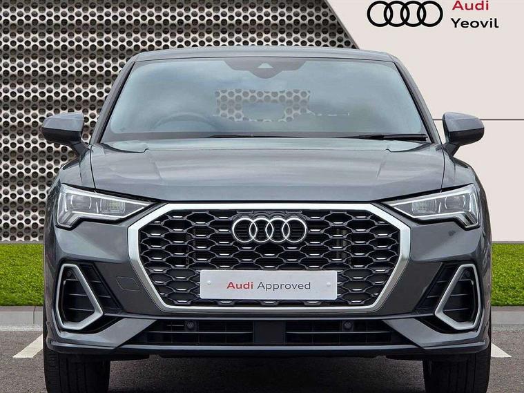 Audi drive select, Audi lane departure warning, Audi Virtual Cockpit - 10.25" display, Bluetooth interface, Camera based traffic sign recognition, Legal emergency call, MMI Navigation Plus with high resolution 10.1 inch touchscreen colour display, Power operated tailgate, Progressive steering, Service interval indicator, Smartphone interface includes wireless Apple carplay/Android Auto, Start stop system with recuperation, Voice control system with natural language interaction, Sports suspension, 2 USB-C ports with charge and data functions, 6 passive loudspeakers, DAB digital radio module, Acoustic windscreen, Aluminium window trim, Auto dimming frameless rear view mirror, Diffuser grille in grained matt black, Diffuser trim in selenite silver, Electrically folding, adjustable and heated door mirrors with integrated LED side indicators and kerb view function for passenger side, Front and rear electric windows, Front fog lights, Front side air inlets in selenite silver, Front underbody protection in manhattan grey paint finish, Grille surround in aluminium silver matt, High gloss black finish B and C pillars, LED Dynamic rear indicators, LED headlights with LED daytime running lights, LED rear lights, LED third brake light, Privacy glass dark tinted rear and rear-side windows (from B-pillar backwards), Radiator grille in anthracite black with inlay in matt aluminium silver, Rain and light sensors, Rear side wing doors, Rear underbody protection in matt black, Rear wiper, S line badges on front wings, S line front and rear bumpers and side skirts in contrasting Manhattan grey paint finish, Side skirt insert in matt Platinium grey, Variable front intermittent wipers, 12V socket in rear centre console, 3 seat bench in 2nd row, 3 spoke leather multifunction steering wheel features S badging and grips in perforated leather with contrast stitching, 40:20:40 folding with manual adjustment for 60:40 forwards/backwards position and backrest angle, Adjustable rear seat bench/backrest with centre armrest and cupholder, Black cloth headlining, Dual zone electronic climate control, Front and rear black floor mats with contrast stitching, Front and rear headrests, Front and rear roof module including reading lights, Front centre armrest, Glove compartment lighting, Height and reach adjustable steering wheel, Illuminated door sill trims with S logo, ISOFIX child seat mounting for front passenger with airbag deactivation and outer rear seat including top tether attachment point for outer rear seats, Luggage compartment light right in white, Luggage compartment sill protection in stainless steel, Manual front seats with height adjustment, Perforated leather gearknob, Single front passenger seat, Stainless steel pedals, Ambient lighting pack - Q3, Non smoking pack - Q3, 3x3 point rear seatbelts, 6 airbags - Driver, front passenger, curtain and side windows, Audi pre-sense front with pedestrain and cyclist recognition, Electrically operated child locks on rear doors, Electromechanical parking brake, Electronic stabilisation control including ABS, ASR and EDL, Front seatbelt reminder, Hill descent control, Hill hold assist, Pre sense basic, Seatbelt monitoring, Tyre pressure warning, Warning triangle and first aid kit, Anti theft alarm, Anti theft wheel bolts, Immobiliser, Remote central locking, Aluminium look interior elements, Black dashboard, Dark matt brushed aluminium inlay, Detail dashboard around MMI touch colour display in glass look, black with surround in aluminium look, Leatherette door armrest,