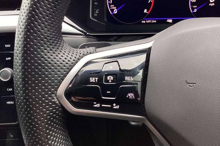 Adaptive cruise control (ACC) with speed limiter, front assist (reacting vehicles pedestrian and cyclists) and follow to stop, App connect including wireless Apple CarPlay, Camera for warning system, Digital cockpit with 10.25" high resolution TFT display screen with customisable menus and information, Driver alert system with fatigue detection, Driver profile selection including ECO function, Dynamic road sign display, eCall - Emergency call service for SOS calls to emergency response, Emergency assist, Hands free boot opening, Press and drive key, Progressive steering, Speedo and rev counter, electronic odometer, trip, service interval display and exterior temperature gauge, Tailgate, Travel assist - Lane keeping assist and traffic jam assist, Voice activation for telephone and navigation, Start/stop function with battery regeneration, External, USB type C data sockets with increased charging performance front (45 Watt), Premium USB cable in choice of either Apple or Android smartphone compatibility, Auto dimming interior rear view mirror, Automatic headlights, Body colour door handles, Body colour side skirt, Body coloured top and matt black lower door mirrors with integrated indicators, Chrome plated radiator grille inserts and light switch surrounds, Chrome side window surrounds, Dynamic headlight range control, Electric folding door mirror, adjustable, heated with front passenger exterior mirror lowering function, Front and rear electric windows, Front and rear stainless steel door sill protection, Front windscreen washers and wipers with 4x interval delay, Heat insulating side and rear windows, Heated rear windscreen, Heated windscreen washer jets, LED 3rd brake light, LED rear combination lamp with dynamic indicators, LED rear number plate lights, Panoramic sunroof with tilting and sliding including integrated roller blind, R Line design body coloured bumpers, Rain sensor, Rear fog lamp on one side and reversing lamp on both sides, Rear side wing doors, Rear tinted glass from B pillar backwards, approx 65% tinted, Rear windscreen washer and wiper with interval delay, Roof spoiler, Tailpipes behind rear bumper, 12V socket in front centre console, 12V socket on rear of front centre armrest, 3 rear head restraints, 3 seat bench in 2nd row, 30 colours options interior ambient lighting, 60:40 split folding rear seat backrests with centre armrest, Air care climatronic 3 Zone electronic air conditioning with automatic air recirculation, Black roof lining, Chrome trim on upper and lower air vents extending across cockpit, Driver and front passenger sunvisor with vanity mirror, Front + rear carpet mats, Front cupholders x 2, Front footwell illumination, Front sports comfort seats, Glovebox, Heated front seats, Height/reach adjust steering wheel, Isofix child seat preparation easy fit for two outer rear seats, Luggage compartment lighting, Removable luggage compartment cover, Single front passenger seat, Split folding front seat backrest with front centre armrest, Stainless steel pedals, Two LED front reading light, 3 rear three point seatbelts, ABS+EBD+Brake assist, Child locks on rear doors, Driver airbag and front passenger airbags with deactivation switch including driver knee airbags, Electronic parking brake, Electronic stability control (ESC) and Electromechanical brake booster, Front disc brakes, Front side airbags with curtain airbags, Hill start assist, Pro active occupant protection to detect critical situations with elevated accident potential from the front, Rear disc brakes, Three point height adjust front seatbelts + pretensioners, Two tone horn, Tyre pressure loss indicator, Warning buzzer for seatbelts if unfastened, Warning triangle, Alarm with interior protection with deactivation via infotainment system, Electronic engine immobiliser, Keyless entry system including start/stop button on centre console, Remote central locking, Aluminium decorative inserts, Chrome trim on lower doors in front and rear, Leatherette insert on door and side trim panel in foam film, Piano black decorative inserts in centre console,