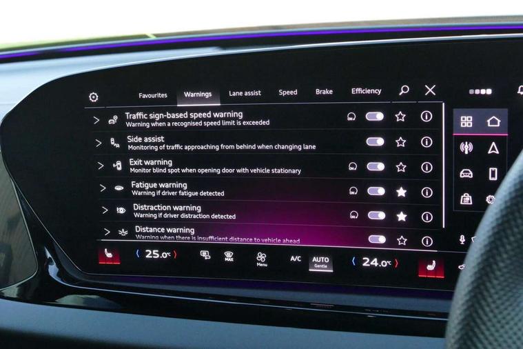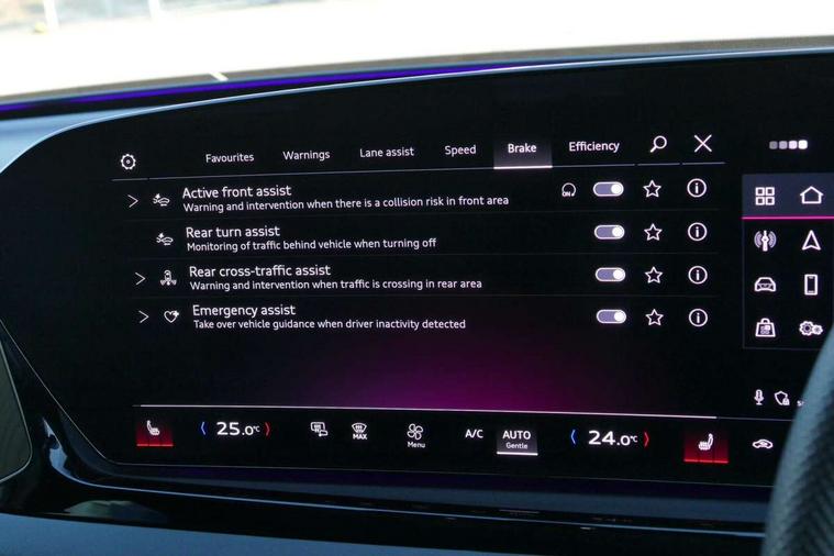 Adaptive cruise control, Advanced driver attention and fatigue montior, Audi application store, Audi assistant, Audi connect emergency call and service, Audi drive select, Audi smartphone interface, Audi virtual cockpit plus with 11.9" OLED colour display, Automatic start/stop system with coasting functionality, Camera based traffic sign recognition, Intersection assist, Lane change assistant with exit warning system, rear cross traffic alert and rear turn assist, Lane departure warning with emergency assist, MMI 10.9" front passenger touch display, MMI navigation plus with high resolution 14.5" OLED touchscreen colour display, Park assist plus, Parking system plus with 360 display, Progressive steering with servotronic, Swerve assist and turn assist, Top view camera, Traffic sign based speed limiter, Sports suspension lowered by 20mm, 2 USB-C ports in both the front and rear, Audi sound system impressive sound with 10 loudspeakers including centre speaker and subwoofer, 6-channel amplifier with a total output of 180 watts, DAB digital radio reception, Smartphone compartment with wireless charging, Aluminium window trims, Auto dimming rear view mirror, Black door handles, Dark chrome-plated tailpipe trims, Door mirrors - electrically adjustable, heated, folding and auto dimming on both sides, Front and rear electric windows, Front door sill trims with aluminium inlays, illuminated with 'S' logo, Headlight cleaning system, High beam assist, LED daytime running lights, LED rear lights pro incl. dynamic rear indicators and illuminated light strip with animated coming and leaving home function, LED third brake light, Matrix LED headlights with eight light signatures selectable via the MMI or the myAudi app, Privacy glass, Rear and side windows with heat insulating glass, Rear boot, Rear side wing doors, Red S line rhombus badging on rear, S line bumpers, radiator grille and diffuser in phantom black and diffuser insert in matt anthracite, White rhombus logo projection light in exterior mirrors, Windscreen with acoustic glazing, 3 rear headrests, 3 seat rear bench, 3 spoke leather steering wheel with multi-function buttons with touch control, flattened on top and bottom, with S badging and contrast stitching, 3-zone automatic climate control, 40:20:40 split folding rear seat bench with centre armrest and cup holders, Comfort front centre armrest, Electrically adjustable front seats, Front and rear floor mats, Front sport seats with integrated headrest and S embossed logo, Headlining in black cloth, Heated front seats, i-Size child seat mounting on the front passenger side and outer rear seats, i-Size and top tether on the outer rear seats, Luggage compartment lid, electrically opening and closing, Manual steering column height and depth adjustment, Memory function for driver seat, Single front passenger seat, Stainless steel pedals and footrest, Steering wheel grips in perforated leather and shift paddles, Ambient lighting package plus - A5, Black styling package plus - A5, 3x3 point rear seat belts, Acoustic vehicle alerting system, Convenience key with safelock, Driver airbag, Electric child safety locks, First aid kit with warning triangle and vests, Front emergency brake assist, Front passenger airbag, Front passenger airbag deactivation, Hill hold assist, Occupant detection in rear seat area, Proactive passenger protection system for front, sides and rear, Red brake calipers, Seat belt monitoring with rear seat occupant reminder, Side airbags in front and rear with head airbag system and front interaction airbag, Tyre pressure loss indicator, Anti theft alarm, Anti-theft wheel bolts, Keyless Go, Accent surfaces and control buttons in gloss black, Black dashboard with contrast stitching, Softwrap in Dinamica with contrast stitching, Upper and lower interior elements in dinamica microfiber, 20" 5 arm fold design Audi sport alloy wheels in silk matt grey and gloss turned finish, Tyre repair kit,