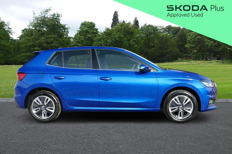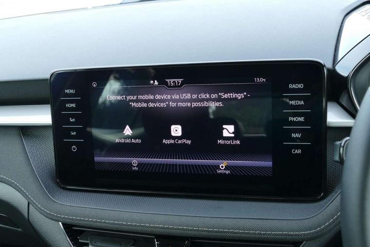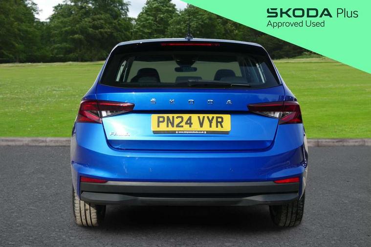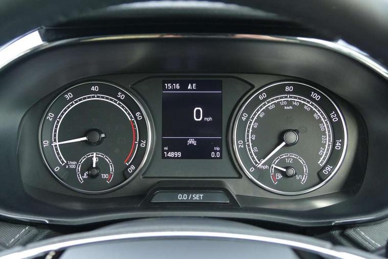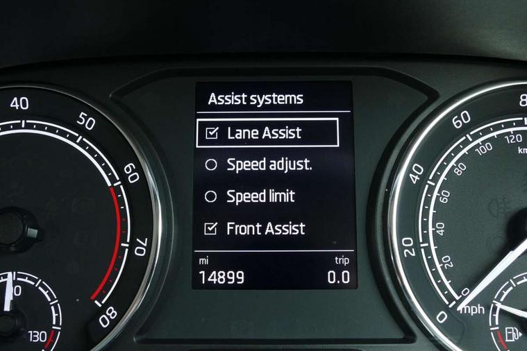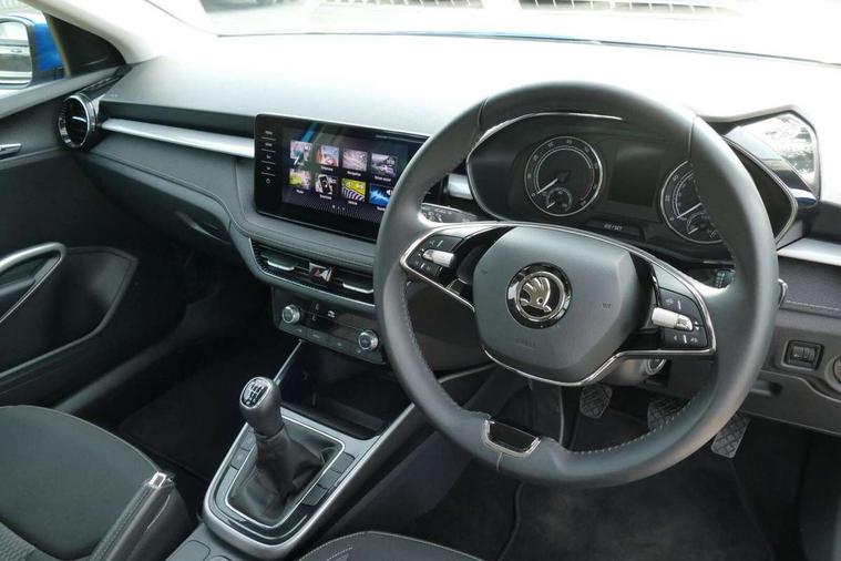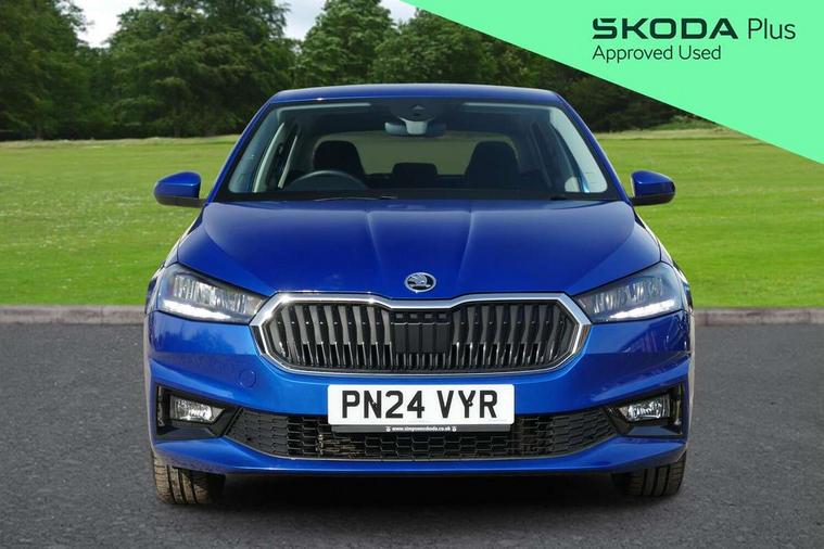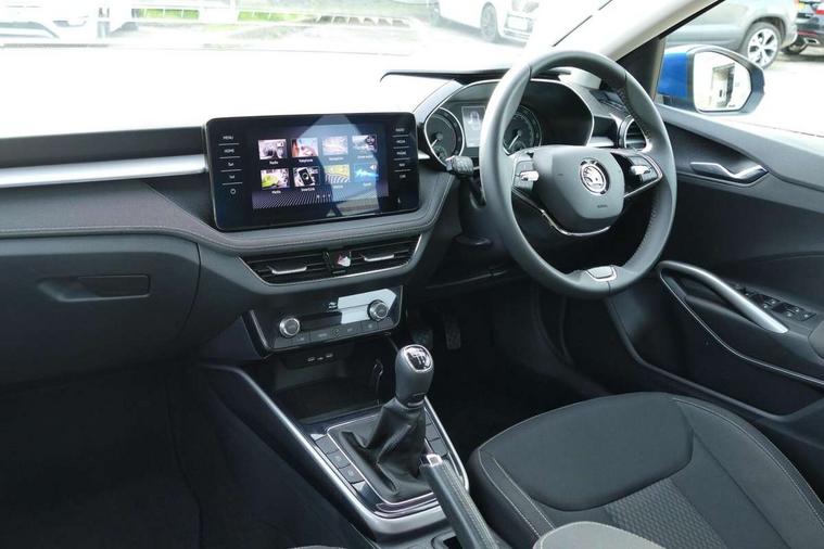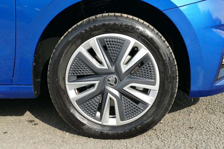 Bluetooth connection, Driver alert system - DAS, Electromechanical power steering, Exterior temperature gauge, Service interval indicator, 2x USB-C in the front (for data transmission and charging), 6 Speakers (4 in front and 2 in rear), Auxiliary socket for external MP3 player, DAB digital radio reception, Web radio, Auto dimming rear view mirror, Basic LED Headlights, Body colour door mirrors, Body coloured bumpers, Chrome window surround, Door mirror integrated indicators, Electrically adjustable and heated door mirrors, Front and rear electric windows, Front fog lights, Front window wiper intermittent control, Headlight range control - Automatic, Ice scraper in fuel cap, LED daytime running lights with coming and leaving home feature, Rain sensor, Rear LED fog light, Rear side wing doors, Rear window wiper with washing nozzles, Roof mounted spoiler, SKODA tailgate lettering in chrome, Third brake light, 3 rear headrests, Backrest split and folding, Central console with fixed cup holder and storage box, Chrome handbrake release button, Comfort seats, Fabric upholstery, Front centre armrest, Gearshift knob/handle in leather, Hand brake lever handle in leather, Height adjustable front headrests, Height adjustable front seats, Height adjustable steering wheel, ISOFIX and TopTether anchorage points to the outer rear seats, ISOFIX and TopTether on the front passenger seat, Luggage compartment lighting, Manually adjustable lumbar support in front seats, Pollen filter, Rear seat bench unsplit, Removable cup holder, Single front passenger seat, Storm grey headlining, Sun visors with mirror and airbag label on passenger side, Textile floor mats, Ticket holder, Umbrella in drivers door, 3-point height adjustable front seats belts with pretensioner and force limiter, Automatic warning lights in case of crash, Driver and passengers airbag with switch off function, e-Call+, ESC including ABS, MSR, ASR, EDS, HBA and XDS, Front and rear seat belt warning, FRONT ASSIST (AEB City and AEB Inter Urban), Front side airbags, Head airbags, One tone horn, Pedestrian protection, Three rear 3-points safety seat belts with pretensioner and force limiter including stop function for outer rear seat belts, Tyre pressure monitoring system, Anti-theft alarm system including immobiliser, interior monitoring, backup horn, and towing protection, Central locking with radio remote control, interior controls, SAFE function and 2 foldable keys, KESSY - Keyless engine start/stop, Chrome edged air vents, Satin black door and side trim panel in front, Anti-theft wheel bolts protection, Super-low rolling resistance tyres,