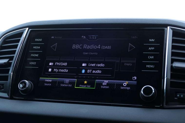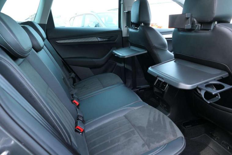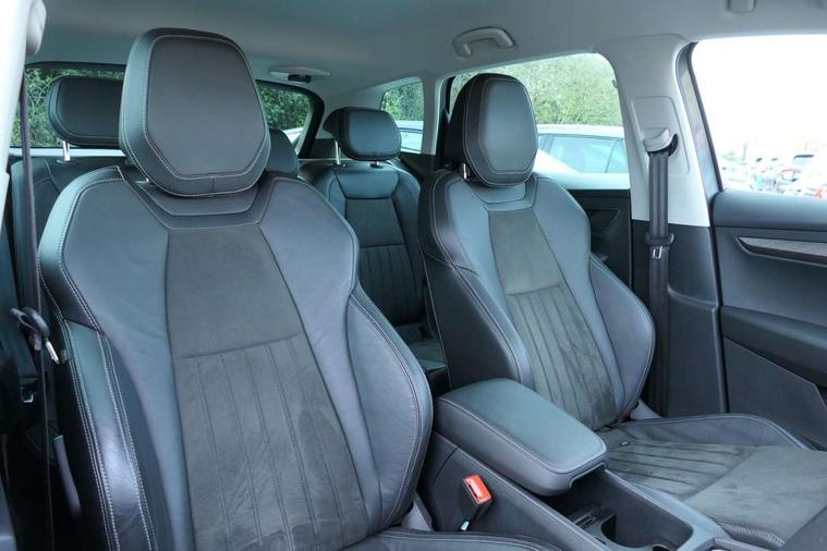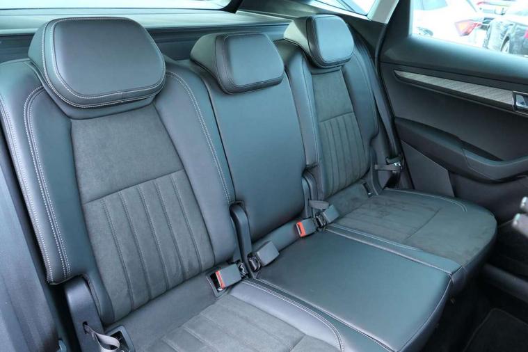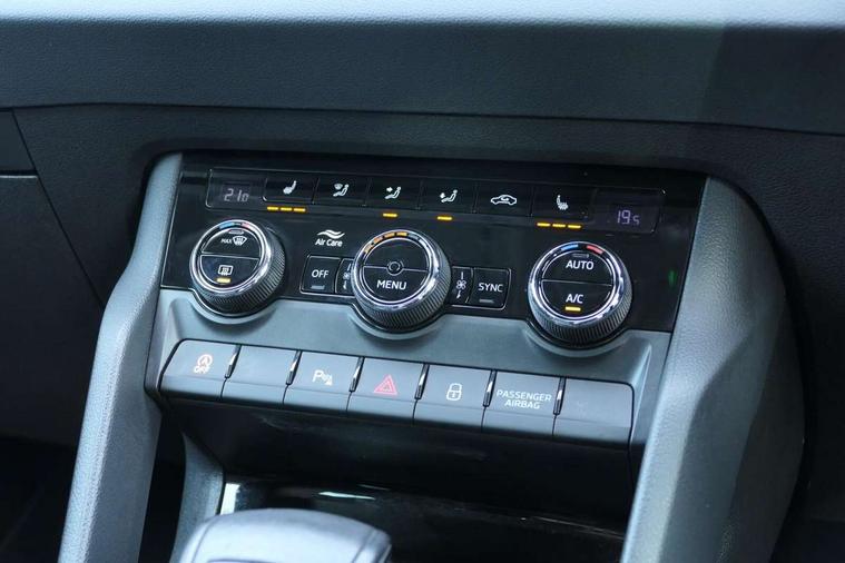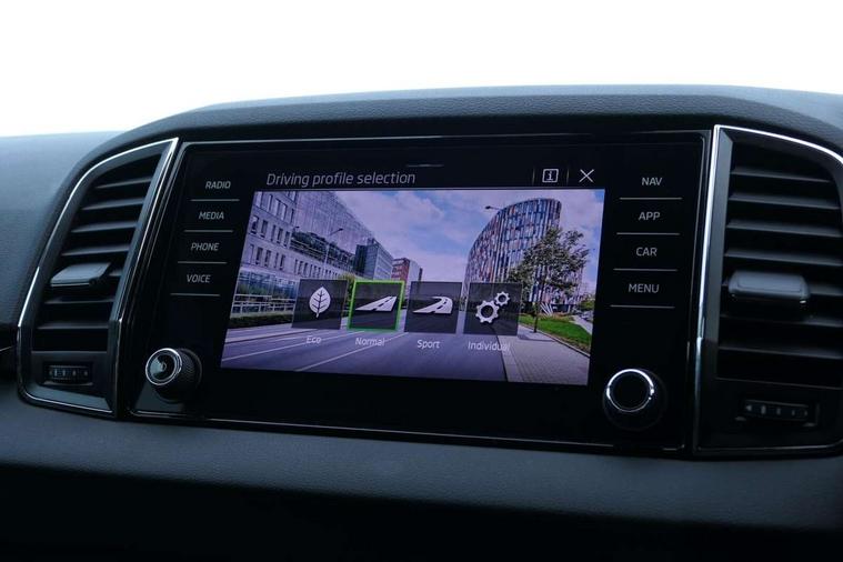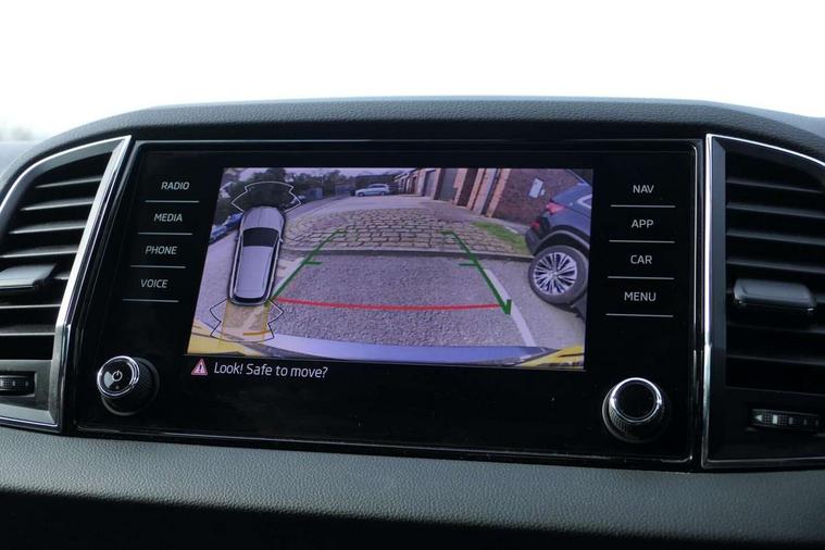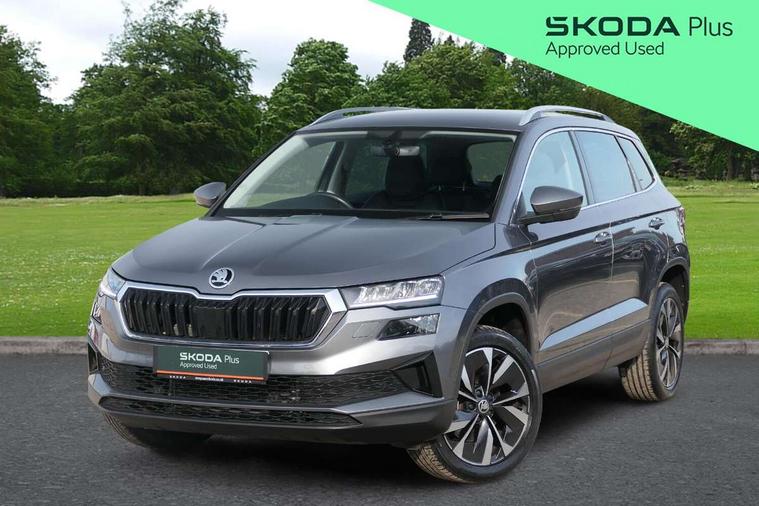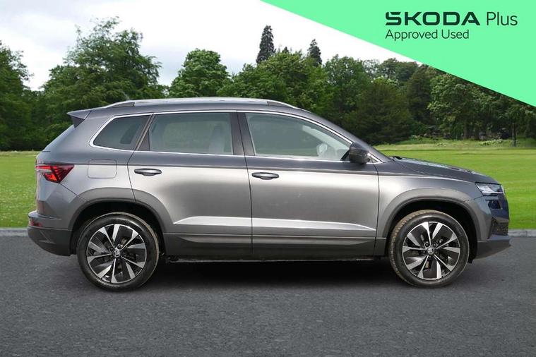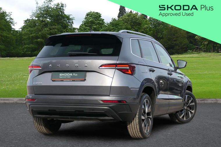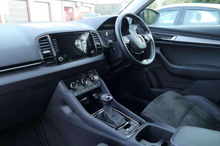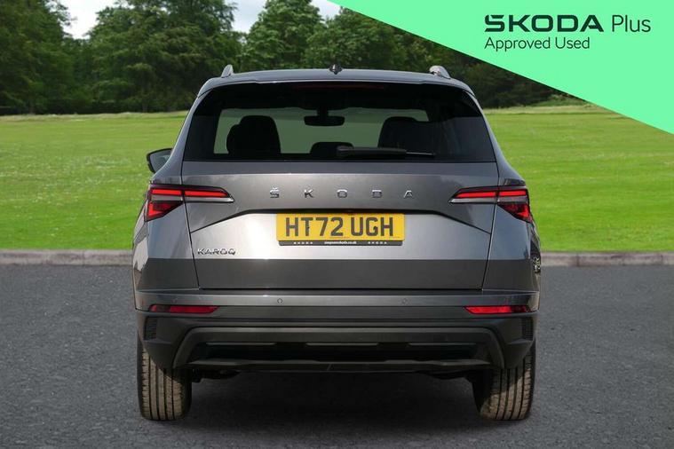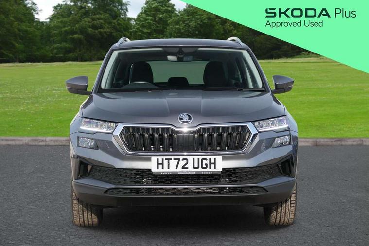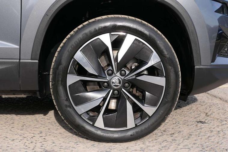 8" Digital display, Care connect, Driver fatigue sensor, Emergency services call system, Outside temperature gauge, Service interval indicator, SmartLink wireless for Apple and wired for Android, Start/stop system with regenerative braking, USB C Port x 2 in front centre console, 8 Speakers, DAB radio with Bluetooth, USB connection, Acoustic glass, Aero front windscreen wipers with intermittent function, Auto dimming rear view mirror with light and rain sensors, Black electric window control buttons, Body colour door mirrors and handles, Dynamic headlight range control with cornering light function, Electric front and rear windows with child proof lock, Heated rear windscreen, LED daytime running lights, LED rear lights with high functionality welcome effect and dynamic indicators, Light assistant (coming/leaving home/tunnel light), Plastic scuff plates, Privacy glass, Rear side wing doors, Rear spoiler, Rear window wiper with washer system and intermittent control, Safety reflectors on front doors, 1.5 litre bottle holders in driver and front passenger door panels, 12V socket in boot, 12v socket in front centre armrest with storage compartment and rear air vents, 2 Folding hooks and nets in boot, 2 spoke leather heated multifunction steering wheel with DSG paddles, 2 x Tablet holder, 3 rear height adjustable headrests, 3 seat bench in 2nd row, 4 foldable roof handles with rear coat hooks, Black floor carpet, Chrome inner door handles, Decorative door sills with KAROQ badging, Double sided boot floor, Foldable hooks in the boot, Front head restraints, Height adjustable front three point seats belts with tensioners, Height/reach adjust steering wheel, Ice scraper, Illuminated glovebox, Illuminated luggage compartment, Isofix child seat preparation for front passenger seat, Isofix child seat preparation outer rear, Manual lumbar support for front seats, Pen holder, Pollen filter, Rear boot cover, Rear reading lights, Rubbish bin door, Safety vest holder, Single front passenger seat, Storage box in upper central dashboard closed, Sunvisors with illuminated vanity mirrors, Textile floor mats, Ticket holder, VarioFlex seats with standard rear seat release, Chrome roof rails + chrome pack - Karoq, Parking pack - Karoq, Automatic door unlocking in case of crash, Automatic fuel cut off in case of crash, Child locks on rear doors, Driver airbag, Electronic parking brake with auto hold function, Emergency rear braking signal, ESC including ABS, MSR, ASR, EDS, HBA, DSR, RBS, MKB and traction control, Front side airbags, Hill hold control, Knee airbags, Passenger airbag with switch-off function, Pedestrian monitor, Seatbelt reminder signalisation and pretensioner for all seats, Three point seatbelts rear, Two tone horn, Tyre pressure display, Tyre pressure monitor, Alarm with interior monitoring, back up horn and tilt sensor with safe function, Electronic engine immobiliser, Keyless entry and start/stop, Remote central locking with 2 remote folding keys, Chrome framed air vents, 18" Procyon silver alloy wheels with anthracite aero inserts, Anti-theft wheel bolts protection, Storage on wheel cover, Tool kit,