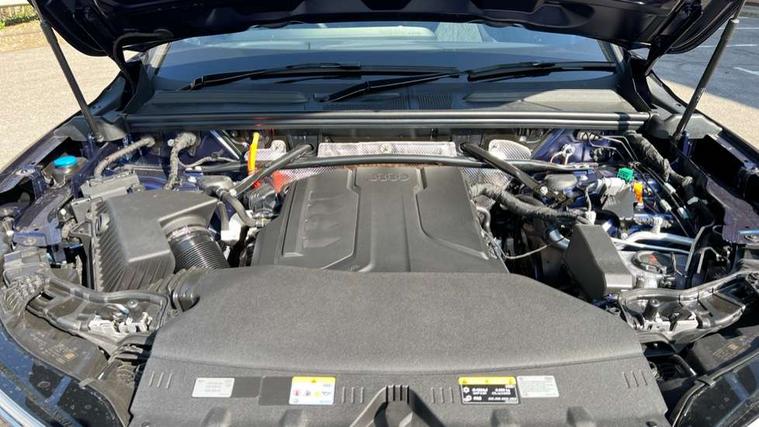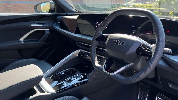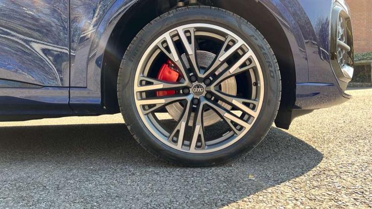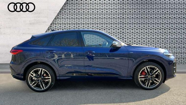 Adaptive cruise assist plus, Attention and drowsiness detection with driver observation, Audi application store, Audi connect emergency call and service, Audi digital key, Audi drive select, Audi smartphone interface, Audi virtual cockpit plus with 11.9" OLED colour display, Camera based traffic sign recognition, Front cross traffic intersection assist, Lane change assistant with exit warning system, rear cross traffic alert and rear turn assist, Lane departure warning with emergency assist, MMI 10.9" front passenger touch display, MMI navigation plus with high resolution 14.5" OLED touchscreen colour display, Park assist plus, PAS, Reversing camera, Swerve assist and front turn assist, Traffic sign based speed limiter, Compact e-tron charging system, Household plug type G for the e-tron charging system, Hybrid propulsion system, Industrial connector CEE 32A, 230V, long and straight for the e-tron charging system, Mode 3, Type 2 AC charging cable 22kW - capable of charging speeds up to 11kW for use at AC charging points including a home wallbox, Audi sound system impressive sound with 8 loudspeakers including centre speaker and subwoofer, 6-channel amplifier with a total output of 180 watts, DAB Digital radio, Smartphone compartment with wireless charging, Active digital light signatures - Six additional combinations of active daytime running light signature, All weather light, Auto dimming rear view mirror, Automatic dynamic headlight range control, Dynamic light scenarios of the coming home/leaving home function when stationary, Electrically adjustable heated and folding + automatically dimming exterior mirrors, Exhaust tailpipes in dark chrome, Front and rear electric windows, Front door sill trims with aluminium inlays, illuminated with 'S' logo, Full body paint finish, Grill frame, inlay and front air inlets in matt anthracite chrome, Headlight cleaning system, Heated rear window, High beam assist, High gloss window surrounds, LED daytime running light with 8 digital light signature, LED rear lights pro incl. dynamic rear indicators and illuminated light strip with animated coming and leaving home function, Logo projection light in exterior mirrors, Manoeuvring light, Matrix LED headlights, Memory function for door mirrors, Motorway light, Privacy glass, Projection third brake light for rear window in LED, Radiator grille in phantom black, Rear and side windows with heat insulating glass, Rear honeycombe grille in matt black with inlay in matt anthracite chrome, Rear side wing doors, Rear wash/wipe, S Line badge on the front wings, Static cornering light, Turning light, Windscreen with acoustic glazing, 3 rear head restraints, 3 seat bench in 2nd row, 3 spoke leather steering wheel with multi-function buttons with touch control, flattened on top and bottom, with S badging and contrast stitching, 4 way electric lumbar support for driver and front passenger, Auxiliary air conditioning, Black carpets, Comfort centre armrest front, Deluxe 3 zone electronic climate control, Dinamica microfiber/leather upholstery with diamond stitching, Electrically adjustable front seats with memory function for driver's side, Front and rear floor mats, Front sport seats with integrated head restraints, Headlining in black cloth, Heated front seats, i-Size child seat mounting on the front passenger side and outer rear seats, i-Size and top tether on the outer rear seats, Increased charging capacity for USB ports 2X100 Watts in rear, 2X60 Watts in front, Interior trim in aluminium look, Luggage compartment lid, electrically opening and closing, Manual steering column adjustment, S embossed logo on front sport seats, Single front passenger seat, Softwrap in black, Softwrap in Dinamica, Stainless steel pedals and footrest, Steering wheel grips in perforated leather and shift paddles, Ambient lighting package plus - Q5, Black styling package plus - Q5, Rear seat bench plus pack - Q5, Storage and luggage compartment pack with luggage net - Q5, 3x3 point rear seatbelts, ABS, Acoustic vehicle alerting system, Convenience key with safelock, Driver and front passenger airbag with passenger airbag deactivation, Electric child safety locks, First aid kit with warning triangle and high visibility vests, Front emergency brake assist, Hill hold assist, Proactive passenger protection system for front, sides and rear, Rear seat occupant reminder, Red brake calipers, Side airbags in front and rear with head airbag system and front interaction airbag, Tyre pressure loss indicator, Anti-theft wheel bolts, Thatcham approved category 1 anti theft alarm, Black dashboard with contrast stitching, Upper and lower interior elements in dinamica microfiber, Tyre repair kit,
