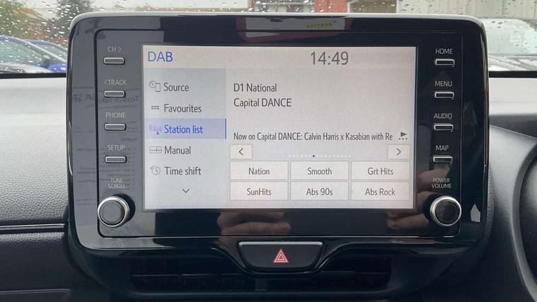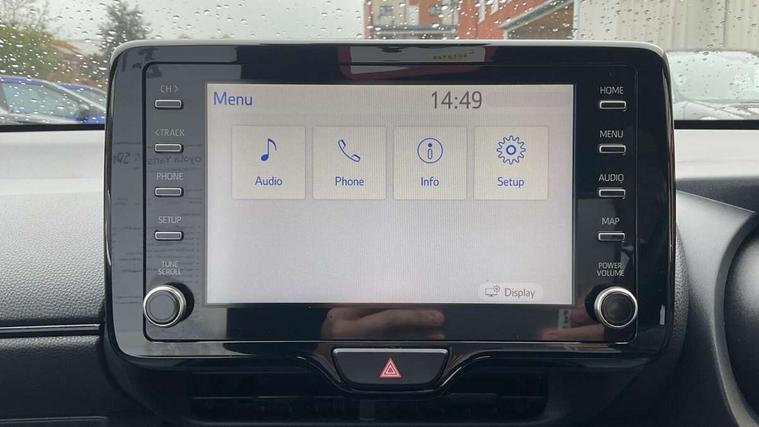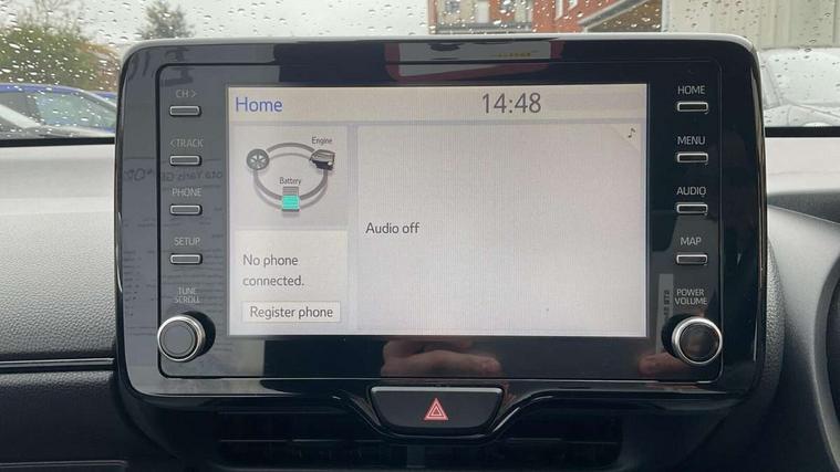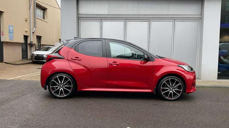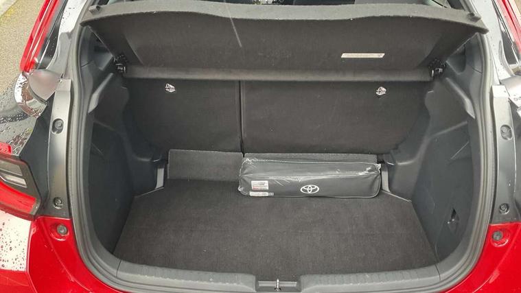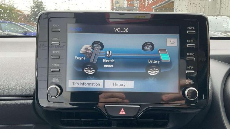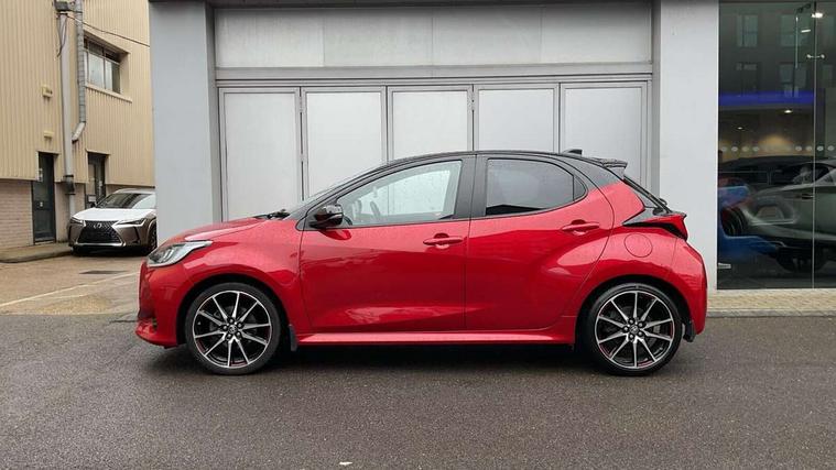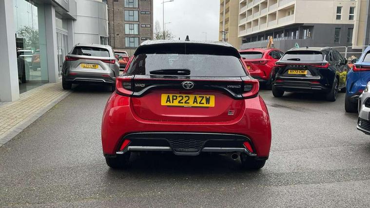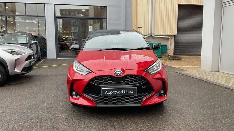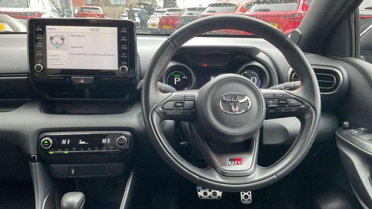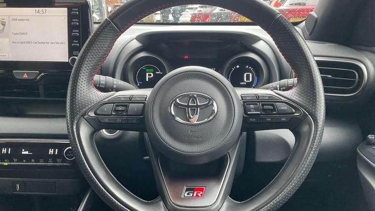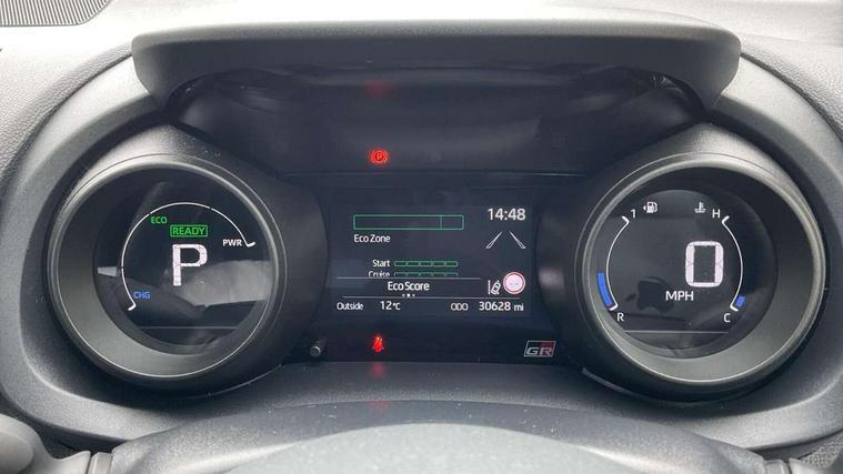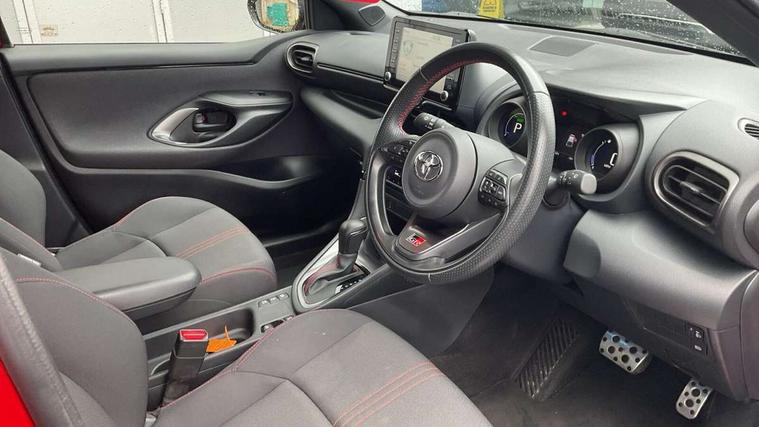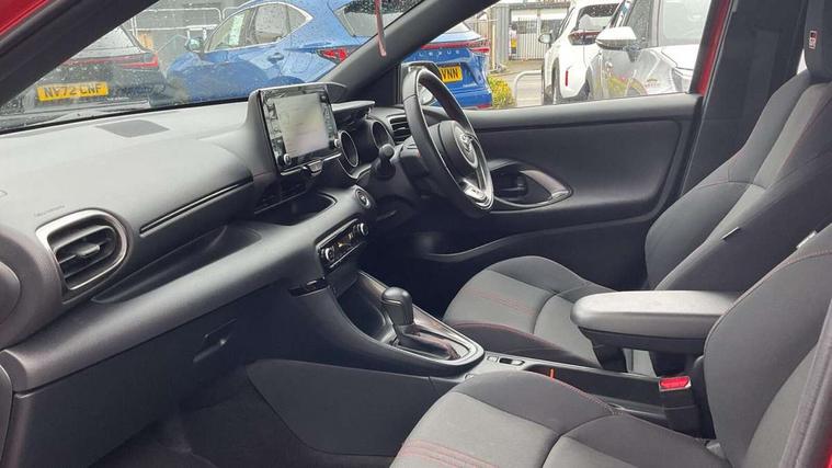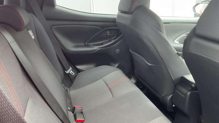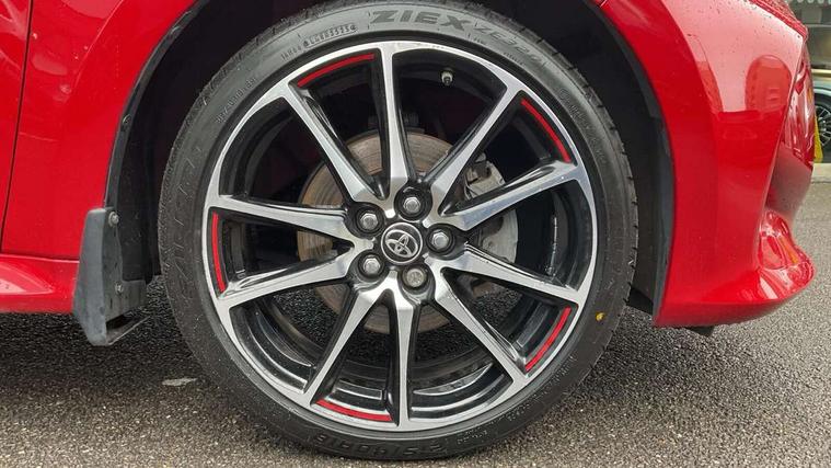 Adaptive cruise control, Adjustable speed limit with speed warning, Bluetooth connectivity, Colour binocular inspired displays with digital speedometer, E-call, Electric power steering, Hybrid energy display, Multi information display switches on steering wheel, Reversing camera, Smartphone integration with Apple CarPlay and Android auto, Voice recognition, Vehicle Stability Control (VSC), 6 speakers, 8" Multimedia display touch screen, Toyota Touch 2 with DAB, USB connection, Acoustic windscreen glass, Auto windscreen wipers, Automatic headlights, Body coloured door mirrors, Dark chrome lower front grille, Electric adjustable heated door mirrors, Follow me home headlights, Front auto power windows with anti jam protection, Full LED rear lights, LED daytime running lights, LED front fog lights, LED front light guide, LED Headlights, LED High mounted stop lamp, LED Indicators, LED rear light guide, Manual headlight levelling, Painted chequered front grille with hot stamp in mesh design, Rain sensor, Rear auto power windows with anti jam protection, Rear privacy glass, Rear side wing doors, Rear spoiler, Rear wiper, Shark fin antenna, Turning signal integrated indicators in door mirrors, 3 adjustable rear headrests, 3 spoke leather steering wheel, 60/40 split folding rear seat, Active headrests, Adjustable boot height, Black roof lining, Coat hooks in rear grab handles, Cup holders (2 front & door), Data Communication Module (DCM) connected services, Dual zone automatic air conditioning, Fabric upholstery with red stitching, Front armrest, Front sport seats, Glovebox, Height adjustable driver's seat, Height adjustable passenger seat, Isofix seat fixing, Leather gearshift, Map pockets on the backs of the front seats, Pollen filter, Shopping bag hooks, Single front passenger seat, Tilt/telescopic steering column, 3 point seatbelts on all rear seats, ABS+EBD+Brake assist, Electronic parking brake, Emergency brake light system (EBS), Front passenger airbag on/off switch, Front seatbelt reminder, Hill start assist control (HAC), Rear child proof door locks, Rear seat belt reminder, Supplemental Restraint System (SRS) 8 airbags: Driver & passenger's airbags, dual side curtain airbags, side impact airbags, front centre airbag, Toyota Safety Sense 2, Precollison + Night time Pedestrian & Cyclist Detection, Lane Trace Assist, Auto High Beam, Intelligent ACC & Road Sign Assist, Tyre pressure warning system, 2x Master key, Alarm/immobiliser, Keyless smart entry with push button start, Remote AC via MyT, Remote locking via MyT, Remote powered central double locking doors, GR Sport interior and exterior styling, Piano black interior trim, Soft touch instrument panel, Space saver spare wheel,