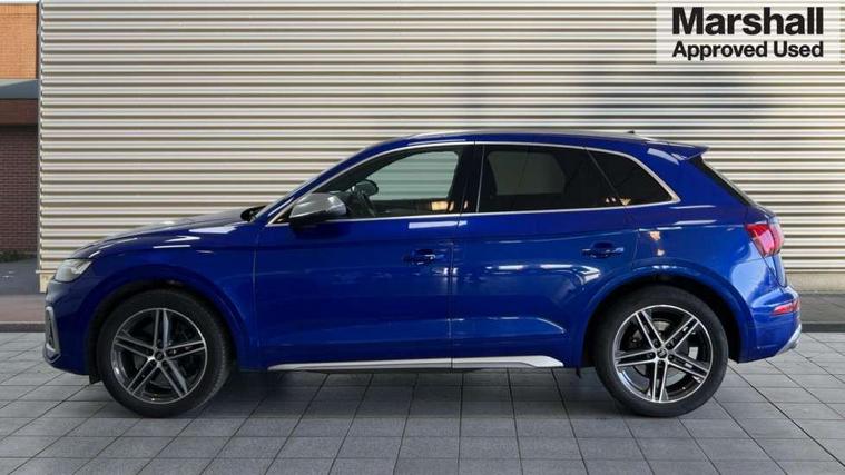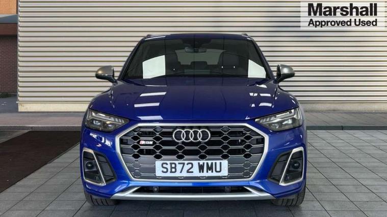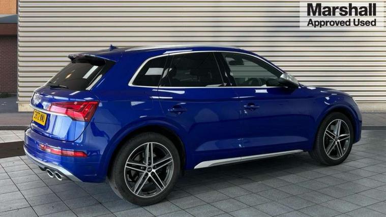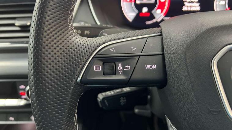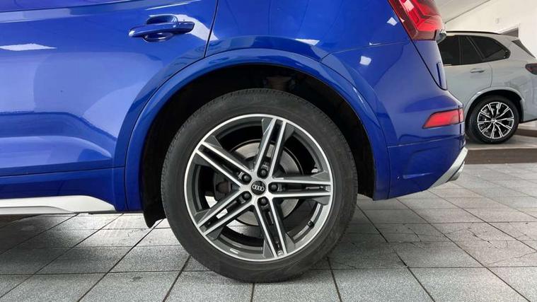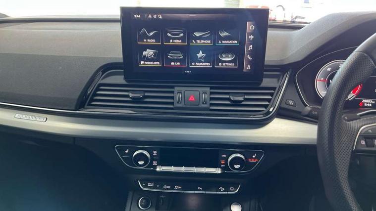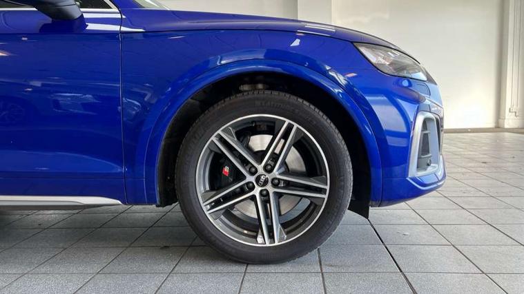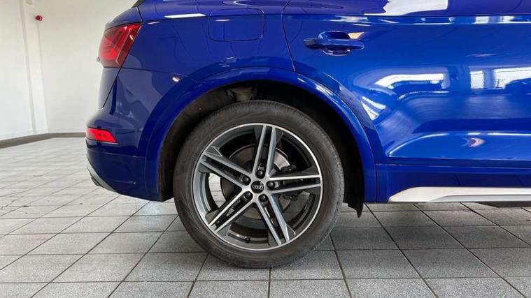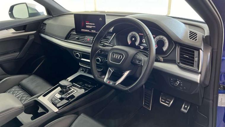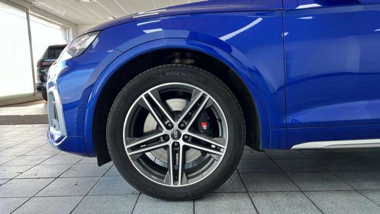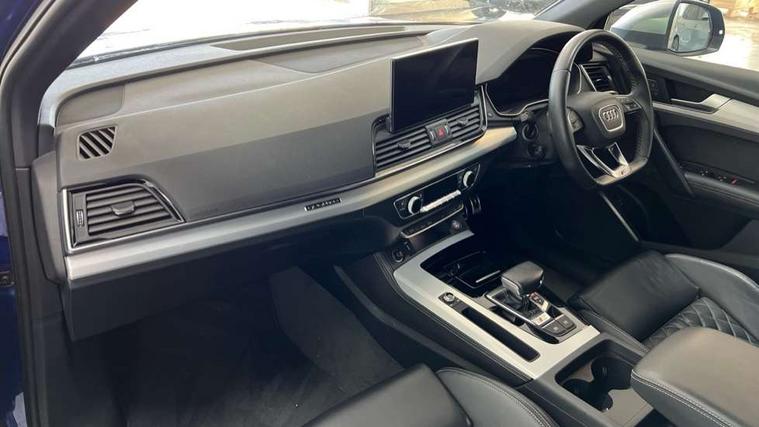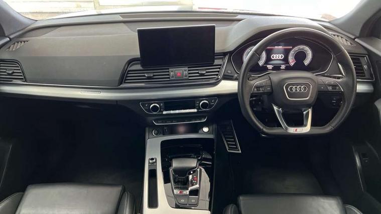 Acoustic front and rear parking sensor, Audi connect safety and service (e-call), Audi connect with Amazon Alexa Integration, Audi drive select, Audi virtual cockpit plus with 12.3" screen and three different layout designs, Audi wireless smartphone interface, Automatic start-stop system with coasting functionality and efficiency programme, Bluetooth interface, Electro - mechanical power assisted steering, MMI navigation plus with 10.1" touch screen, Power tailgate, Reversing camera, Service interval indicator, Voice control system with Audi hotword activation "Hey Audi", 70 litre fuel tank and 24 litre AdBlue tank, Diesel particulate filter, Quattro on demand, S sport suspension with damper control, 2 x USB charging port with aux input socket, Audi sound system, DAB Digital radio, Acoustic windscreen, Aluminium roof rails, Audi beam, Audi beam with Audi rings logo, Audi matrix LED headlights with dynamic front and rear indicators, Auto dimming door mirrors, Auto dimming frameless rear view mirror, Automatic headlight adjustment, Automatic headlights and windscreen wipers, Body colour bumpers, Body colour rear diffuser with matt aluminium silver surrounds, Body colour underbody protection, Chrome plated exhaust trims, Daytime running lights, Door sills in Selenite silver, Electric adjustable/heated/folding door mirrors, Front air inlet surrounds in aluminium, Front and rear electric windows, Front radiator grille in honeycomb design, Headlight washers, High gloss black B pillar trims and triangular rear door trim, High level LED brake light, Rear chrome trim strip below lights, Rear privacy glass and rear side windows, Rear side wing doors, Rear wiper, Roof bars, S front and rear bumpers, S Line rear spoiler, S Line side skirts, S specific rear diffuser, 3 rear headrests, 4 way electric lumbar support for driver and front passenger, 40:20:40 split folding 3 rear bench seat in 2nd row with rear centre armrest, Black cloth headlining, Comfort front centre armrest, Contrast stitching on seats, steering wheel and gear lever gaiter, Deluxe 3 zone electronic climate control, Fine Nappa leather upholstery with diamond pattern contrast stitching + front sport seats with S embossed logo, Front/rear floor mats, Fully electrically adjustable seats, Gear lever in black leather, Heated front seats, Height adjustable front head restraints, Height/reach adjustable steering column, Illuminated door sill trims with S logo, Luggage compartment cover, Massage function for front seats, Rear seat bench plus-adjust for forwards/backwards position/backrest angle, cupholders in the armrest, load through hatch and remote backrest release, Removable luggage compartment floor, Single front passenger seat, Stainless steel pedals, Sunvisors with vanity mirrors, Extended interior upholstery pack - Q5, High gloss pack - Q5, LED interior light pack - Q5, 3 point seatbelts on all seats, 6 airbags - Driver, front passenger, curtain and side airbags, Electrically operated child locks on rear doors, Electromechanical parking brake, Electronic stabilisation control including ABS, ASR and EDL, First aid kit with warning triangle and vests, Front passenger airbag deactivation, Hill descent control, Hill hold assist, ISOFIX child seat mounting for front passenger seat and ISOFIX child seat mounting with Top Tether for outer rear seats, Multi collision brake assist, Pop-up bonnet for pedestrian protection, Pre sense city, Seat belt force limiter, Seatbelt monitoring, Tyre pressure warning, Anti theft alarm, Anti-theft wheel bolts, Keyless Go access/ignition system, Remote central locking, Air vents inserts and centre console in gloss black, 20'' 5 twin star spoke design alloy wheels in gloss graphite grey,