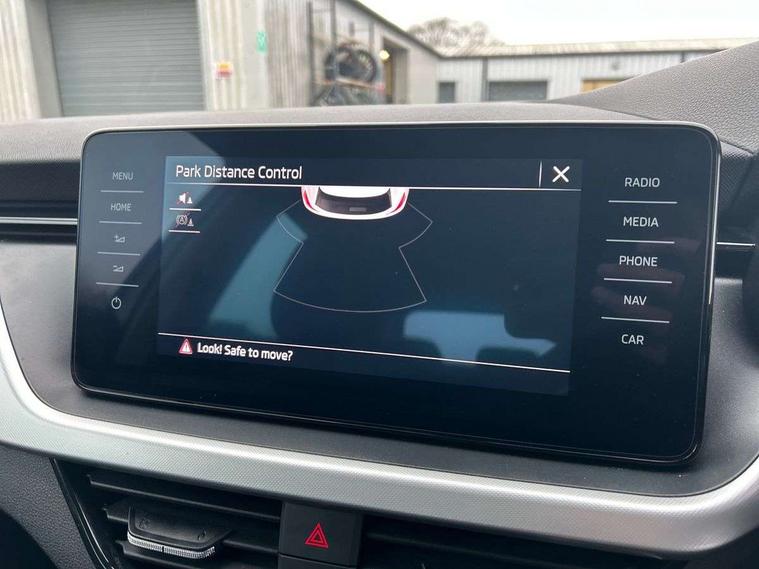 Amundsen satellite navigation with 9.2" glass colour touchscreen display, web radio, voice control and traffic sign recognition, Bluetooth system, E-call, Front assist system, Gesture control, PAS, Service indicator, Speed limiter, Wireless SmartLink for apple car play, android auto and mirrorlink, 8 Speakers, Auxiliary input socket, DAB Digital radio, Body colour bumpers, Body colour door mirrors and handles, Chrome grille surround, Dimming rear view mirror with black surround, Electrically adjustable and heated door mirrors, Front and rear electric windows, Headlight range control, Heated rear window, LED rear lights - low functionality, Light sensors, Privacy glass, Rear fog lights, Rear side wing doors, Rear wiper, 12V Accessory socket in centre console, 3 seat bench in 2nd row, Chrome inner door handles, Cloth upholstery, Front head restraints, Glove compartment with illumination, Height adjustable driver and front passenger seats - manual, Ice scraper, Isofix child seat fittings on outer rear seats, ISOFIX on front passenger seat, Manual lumbar support for front seats, Rake/reach adjustable steering wheel, Reading lights, Single front passenger seat, Sun visors with illumination on front passenger, Textile floor mats, Third rear headrest, Top tether for front passenger seat, Umbrella in driver's door, 3x3 point rear seatbelts, Airbags - driver and front passenger, ESP, Front passenger airbag deactivation switch, Front side airbags with curtain airbags, Hill hold control, Manual parking brake, Manual rear child locks, One tone horn, Rear disc brakes, Seatbelt reminder for driver an co-driver, Traction control, Tyre pressure monitor, Anti-theft alarm system with interior monitoring, backup horn, towing protection and remote central locking with SAFE system, Anti-theft wheel bolts, Electronic engine immobilizer, Silver haptic decorative insert on the dashboard with hot stamping in glossy black,