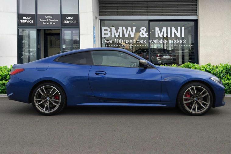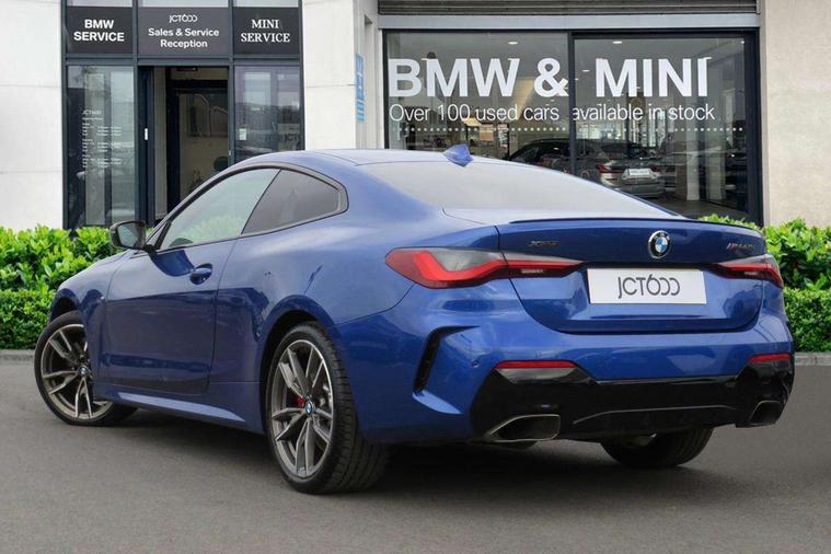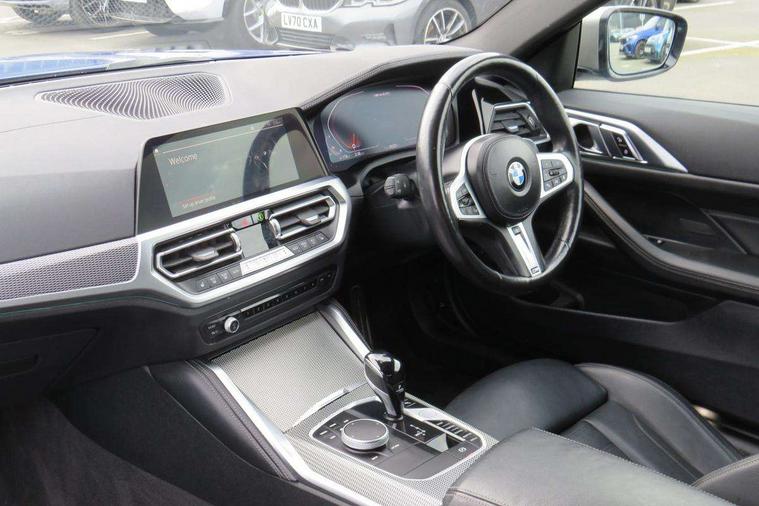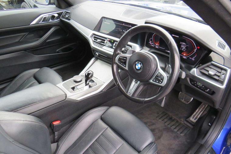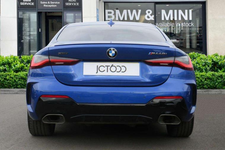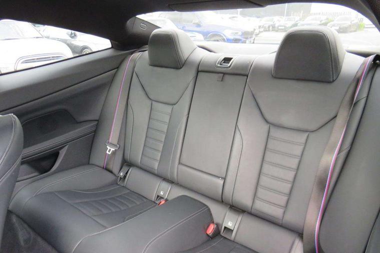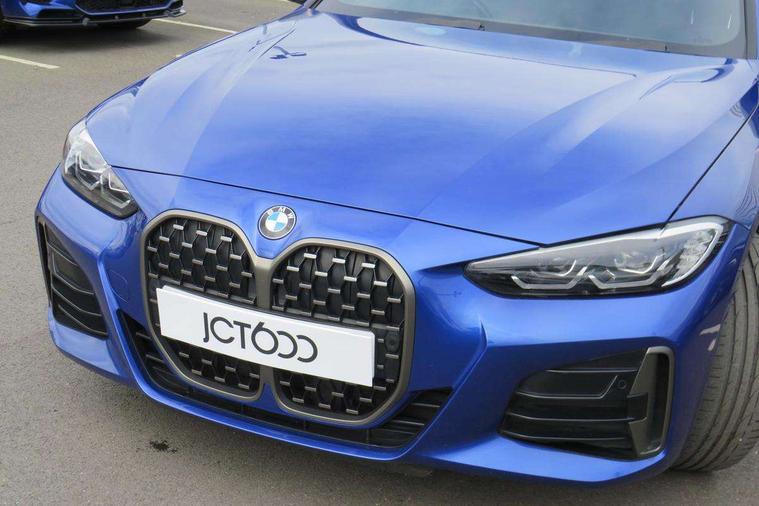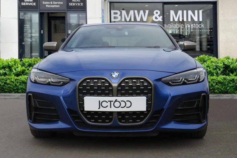 Active guard plus, Attentiveness assist, Auto start-stop, BMW ConnectedDrive online services, BMW iDrive controller on centre console, BMW Live Cockpit Professional Nav with 12.3" instrument display + 10.25" display, Intelligent Voice Assist, BMW OS 7, HDD, 2USB, 4G LTE connect, BMW service history, BMW Teleservices, Brake pad wear indicator in front and rear, Check Control warning system for monitoring of lights and door/luggage compartment open warning, Condition based service, Electric power steering with Servotronic steering optimised at all speed ranges, Gearshift time display in manual mode, Instrument cluster with speedometer with mph readout, tachometer, fuel gauge and oil temperature gauge, Integrated owners handbook, Oil sensor for level and grade, warning by check control system, On board computer - average speed, fuel consumption, outside temp display with acoustic warning, clock/date, service interval, odometer/trip meter, Optimum shift indicator, Variable sport steering, 48V Mild hybrid technology, 8 speed automatic steptronic transmission with gearshift paddles, Adaptive M suspension, Balanced 50/50 weight distribution, Driving experience modes - Comfort, ECO PRO, Sport and Sport+ mode, Electronic differential lock control (EDLC), Low centre of gravity, M Sport differential, Petrol Particulate Filter, Stroke dependent dampers, xDrive system permanent all-wheel drive variable torque distribution, DAB tuner, Electronic service booklet, Acoustic glazing, Automatic headlight beam throw control with load dependent regulating reaction, dynamic compensation of braking dive and acceleration squat, Automatic windscreen wipers and automatic headlight, Automatically dimming electrochromatic rear view mirror, BMW emblem on engine compartment lid and tailgate, Body colour fuel filler flap, Body colour roof fin, Brushed aluminium inserts in the front door sill finishers with BMW designation, Dynamic brake lights, Electric windows - front and rear, with open/close fingertip control, anti trap facility and comfort closing function all round, Exterior mirrors - electrically folding with anti-dazzle, Fading support, Front and rear bumper system, Front apron plastic in body colour, Green tinted heat protection glazing, Illuminated bow type door handles in body colour drivers side with door lock, Interior rear view electrochromatic mirror with automatic anti dazzle function, Licence plate panel integrated into front bumper and tailgate, Lightweight engineering, M designation on front side panels, left and right, M rear boot spoiler, One piece front bumper cover including towing eye cover in body colour, Preparation for high beam assistant, Side frame decorative moulding black matt, Sun protection glass, Twin exhaust tailpipes x2, Two part LED tailights in L-shape with components in smoked glass, brake light, LED turn indicator and rear fog light, Visible VIN plate, Welcome lights in interior and door handle area, Widened track and increased camber values for max transverse dynamics, agility and steering precision, Window recess cover black high gloss, Windscreen wipers with integrated washing jets, xDrive designation on left tailgate, 12V power socket in front centre console, 2 front cupholder in centre console with clamping elements and matt black inlay, 2 Rear seat headrests, 3 spoke M sport leather multifunction steering wheel, 3 zone automatic air conditioning, 4 pieces lashing eyelets in luggage compartment, 40:20:40 split folding rear seat and rear centre armrest with two cupholders, Ambient lighting with welcome carpet light, Anthracite headlining, Armrest integrated in front and rear door trim + front centre console armrest, Four grab handles integrated in roof lining, Front and rear door exit lighting (left / right), Front and rear door pockets, Front and rear footwell lights, Front and rear reading lights, Front headrests, Heated driver and front passenger seats, Height adjustable mechanically and infinitely variable steering column, Illuminated armrest storage compartment, Illuminated glove compartment with separate small compartment, Luggage compartment light, Make-up mirror lights, Storage compartment in rear centre console, Sunvisors with vanity mirrors and ticket pocket, Toolkit located in luggage compartment, Velour front floor mats, Connected professional package - 4 Series, M sport exterior styling pack - 4 Series M440i, 2 x 3-point rear seatbelts, Battery safety cut-off, BMW emergency call, Brake energy regeneration, Braking pre-tensioning, Child proof locking system in rear door, Child seat ISOFIX attachment for the two outer rear seats, Coasting in idle in ECO PRO mode, Cornering brake control (CBC), Crash sensor activating of airbags, Unlocking doors, hazard warning lights, interior light, safety battery terminal, Driver and front passenger side airbags, integrated in the door side seat backrest bolsters for all seat variants, Driver/Front Passenger airbags, Dry braking, Dynamic brake control, Dynamic stability control + (DSC+) - Anti-lock Braking System (ABS) with brake assist and cornering brake control + Automatic Stability Control (ASC), Dynamic Traction Control - DTC, Electric parking brake including automatic hold function and automatic release of the parking brake when driving off, Front and rear ventilated brake disc, Front passenger manual airbag deactivation, Head airbags for all 4 outer seats, Hill start assistant, M Sport seatbelts, Seat belt security check for driver and front passenger, Seat belt with belt stopper, pyrotechnic belt tensioners and belt force limiters, Side impact protection, Tyre pressure monitoring with three level warning strategy, Warning triangle and first aid kit, Alarm system (Thatcham 1) with remote control and electronic engine immobiliser, Central locking switch for all doors, fuel filler cap and luggage compartment, Remote control with integrated key one button open/close vehicle and windows, sole opening of the luggage compartment