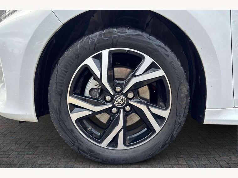 7" Digital Combimeter, Adaptive cruise control, Adjustable speed limit with speed warning, Bluetooth connectivity, Colour binocular inspired displays with digital speedometer, E-call, Electric power steering, Hybrid energy display, Multi information display switches on steering wheel, Reversing camera, Smartphone integration with Apple CarPlay and Android auto, Tailgate, Voice recognition, Vehicle Stability Control (VSC), 4 speakers, 9" Multimedia touch display, Toyota Touch 3 system with DAB radio, USB connection, Acoustic windscreen glass, Auto windscreen wipers, Automatic headlights, Body coloured door mirrors, Electric adjustable heated door mirrors, Follow me home headlights, Front auto power windows with anti jam protection, Full LED rear lights, LED daytime running lights, LED front fog lights, LED front light guide, LED Headlights, LED High mounted stop lamp, LED Indicators, LED rear light guide, Manual headlight levelling, Painted chequered front grille, Rain sensor, Rear auto power windows with anti jam protection, Rear privacy glass, Rear side wing doors, Rear spoiler, Rear wiper, Shark fin antenna, Turning signal integrated indicators in door mirrors, Variable front intermittent wipers, 3 adjustable rear headrests, 3 seat bench in 2nd row, 3 spoke leather steering wheel, 60/40 split folding rear seat, Active headrests, Adjustable boot height, Auto air conditioning, Coat hooks in rear grab handles, Cup holders (2 front & door), Data Communication Module (DCM) connected services, Fabric upholstery, Front armrest, Glovebox, Grey roof lining, Height adjustable driver's seat, Isofix seat fixing, Leather gearshift, Pollen filter, Shopping bag hooks, Single front passenger seat, Tilt/telescopic steering column, 3 point seatbelts on all rear seats, ABS+EBD+Brake assist, Electronic parking brake, Emergency brake light system (EBS), Front passenger airbag on/off switch, Front seatbelt reminder, Hill start assist control (HAC), Rear child proof door locks, Rear seat belt reminder, Supplemental Restraint System (SRS) 8 airbags: Driver & passenger's airbags, dual side curtain airbags, side impact airbags, front centre airbag, Toyota Safety Sense 3 with over the air updates, Tyre pressure warning system, 2x Master key, Alarm/immobiliser, Remote powered central double locking doors, Soft touch instrument panel, Space saver spare wheel,