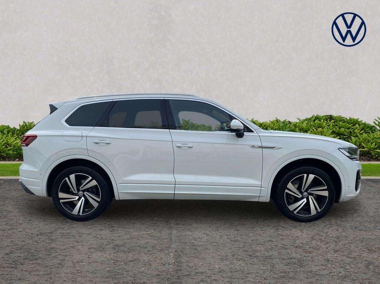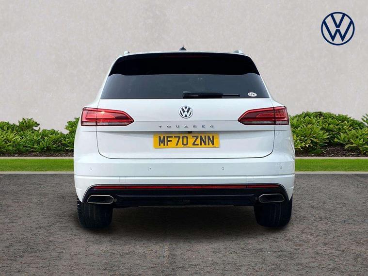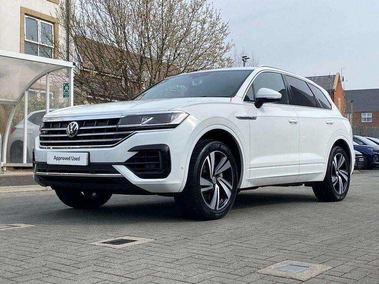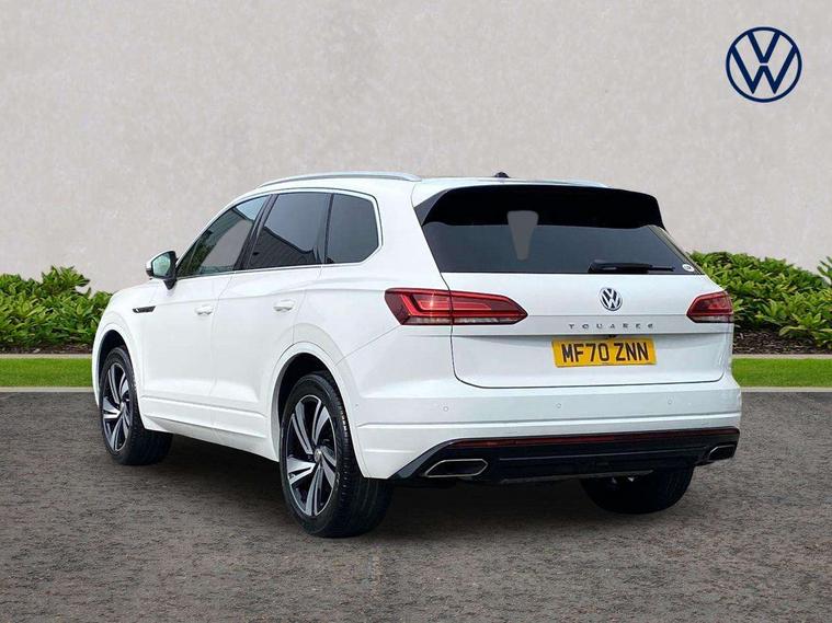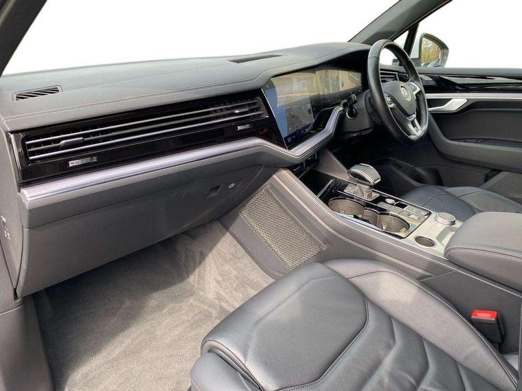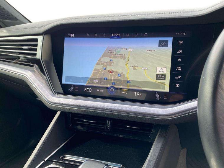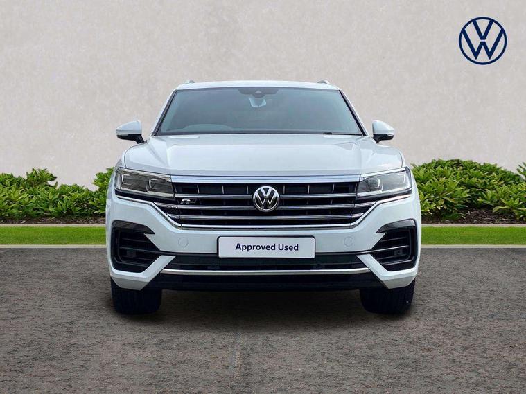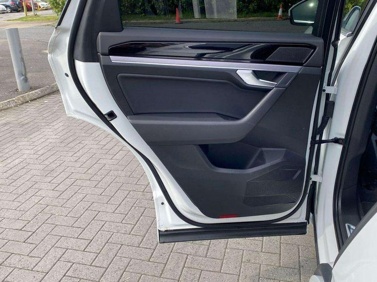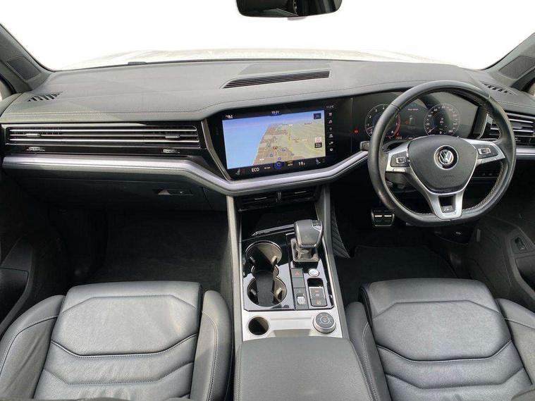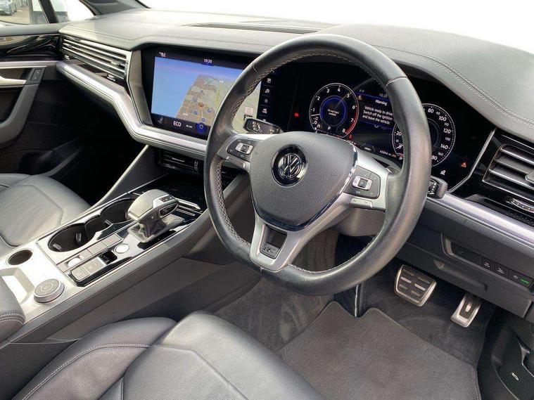 2D/3D map view, ACC - Adaptive cruise control with front assist, forward collision warning, distance monitoring, city emergency brake and speed limiter, Apple car play/Android Auto, Audible and visual fatigue detection system, Bluetooth hands free telephone connection, Car information display, Drive select with Damper control, Driver alert system, Dynamic road sign display camera controlled system with visual warning for traffic and road signs, eCall emergency system, Instrument cluster, MirrorLink, Multifunction camera with lane assist, Multifunction computer premium with 7" colour display, One touch indicators with repeat function, Service interval indicator, Speed sensitive power steering, Start/stop system with regenerative braking, Tailgate power latch, Think blue trainer driver tips and journey analysis, Traffic sign recognition, Voice control system, Wireless Smartphone charger, Torsen limited slip differential, DAB Digital radio, Dynamic navigation based on TMC+, Gesture control for infotainment system, Multi device interface (MDI) with illuminated USB-C connection, Music playback - MP3, WMA and AAC files, SD card slot, Simultaneous pairing of 2 compatible mobile devices, SMS functionality - read, compose and send SMS messages using touch-screen display, Title and cover art display, Volkswagen media control, Adaptive low beam for urban and motorway use, Auto dimming rear view mirror, Automatic coming/leaving home lighting function, Automatic headlights, Body colour door handles, Body colour door mirrors with integral indicators, Body coloured wheel arches, C signature gloss black front air intake, Chrome trimmed radiator grille and air intake, Chrome trimmed side windows, Chromed tailpipe on the left and right integrated in the bumper with trapezoid design, Dusk sensor, Dynamic headlight range control, Electrically power adjustable, heated, folding, auto dimming, front passenger exterior door mirror lowering function, Front and rear electric windows, Galvanised body, Gloss black finish B pillar, Gloss black rear diffuser, Heat insulating darkened glass in side and rear windows, Heated windscreen washer jets, LED rear fog light, LED rear number plate lights, Plastic scuff plates in door apertures, Poor weather light, Puddle lights, Rain sensor, Rear wiper, Silver anodised roof rails, Stainless steel door sill protectors with R-line logo, 12V socket in front and rear centre console and boot, 2 Coat hooks on B pillar, 3 rear head restraints, 3 spoke sport heated leather multi-function sports steering wheel with gear shift paddles - generation 2, 4 way adjustable front head restraints, 4 way electric lumbar support for driver and front passenger, 4 zone climate control, 40:20:40 split folding slide/recline rear seat, B pillar vents, Branded points of interest, Double sun visor for drivier and passenger with LED illuminated vanity mirrors, Electric luggage compartment cover, Folding rear centre armrest with 2 cupholders, Front + rear carpet mats, Front centre armrest with storage box, Front seats with R-line logo on seat backrest, Gear shift indicator, Height/reach adjust steering wheel, Illuminated air conditioned glovebox, Isofix preparation for 2 rear child seats, Jack and tool kit, Leather trimmed gear knob with gloss black inlay/aluminum trim, Leatherette door trim, LED luggage compartment lighting, Load through provision, Luggage compartment with load lashing rings, Plastic loading edge protection, R Line badge, Rear seat remote release levers, Soul black headlining, Stainless steel pedals, Innovision cockpit pack - Touareg, R line styling pack - Touareg, 3 point front seatbelts with pre-tensioners, ABS, Active bonnet, Automatic post collision braking system, Curtain airbags, Driver/Front Passenger airbags, EBD + Brake Assist, EDL, Electronic parking brake with auto hold, ESC with ASR, Front seat side impact airbags, Hill descent control, Hill start assist, Passenger airbag deactivate switch, Seatbelt warning lamp and buzzer, Three 3 point rear seatbelts, Two tone horn, Volkswagen roadside assistance, Warning triangle and first aid kit, Alarm with interior monitoring in cab, backup horn and towing protection, Child security locks for front and rear doors, Electronic engine immobiliser, Remote central locking, High gloss black centre console, Silver wave design aluminium decorative inlays, Tyre repair kit,